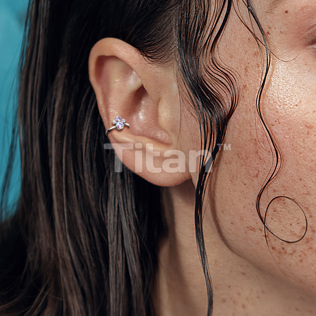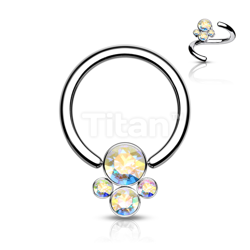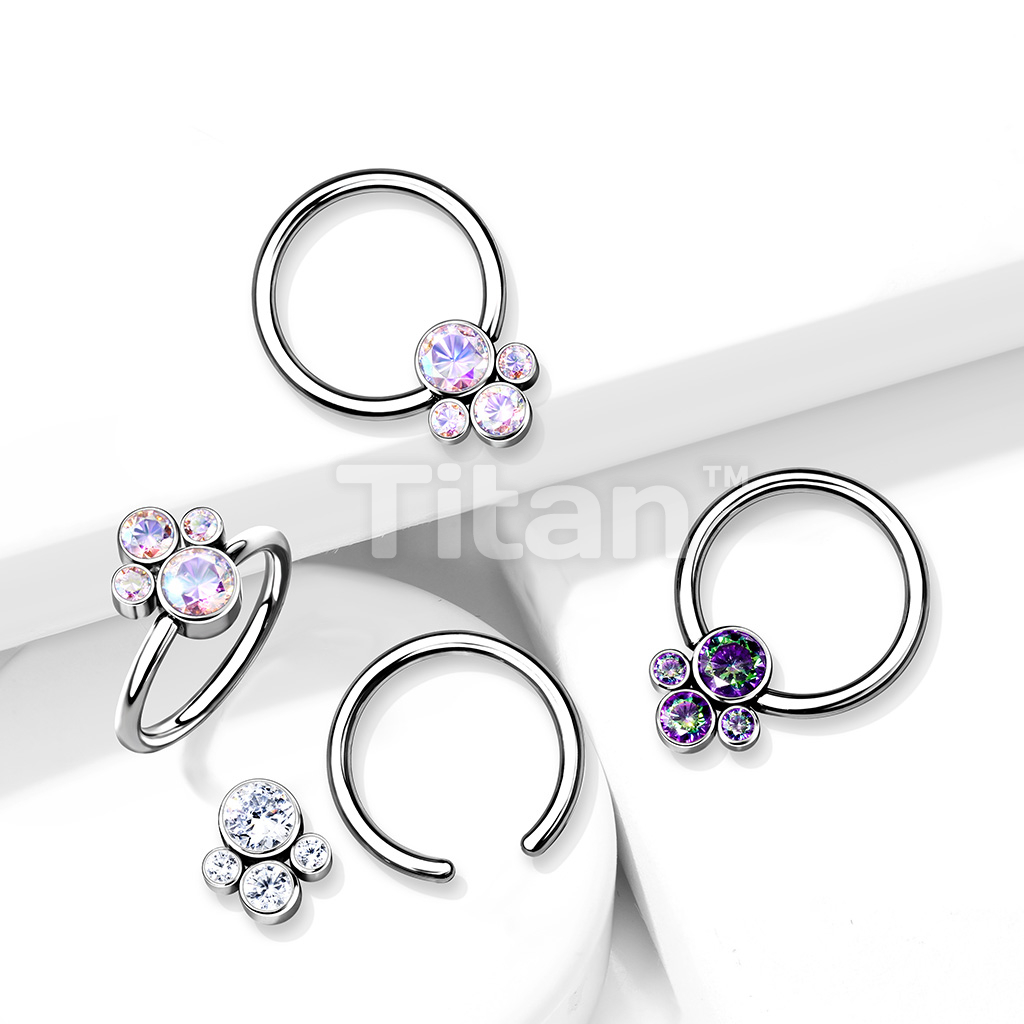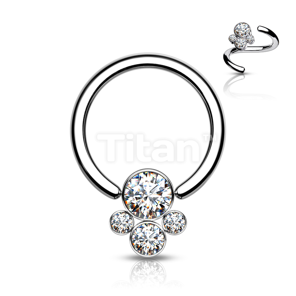 Implant Grade Titanium Captive Bead Rings With 4 Bezel Set CZ Cluster