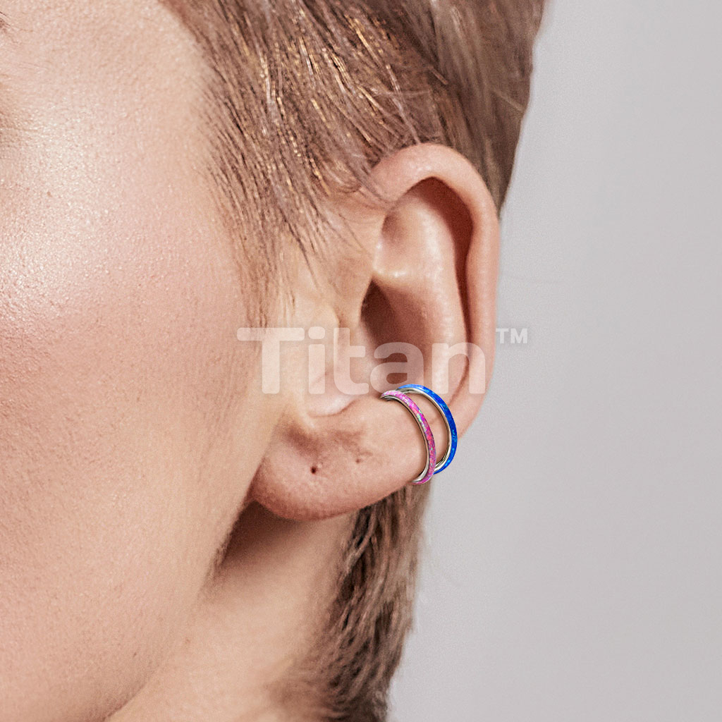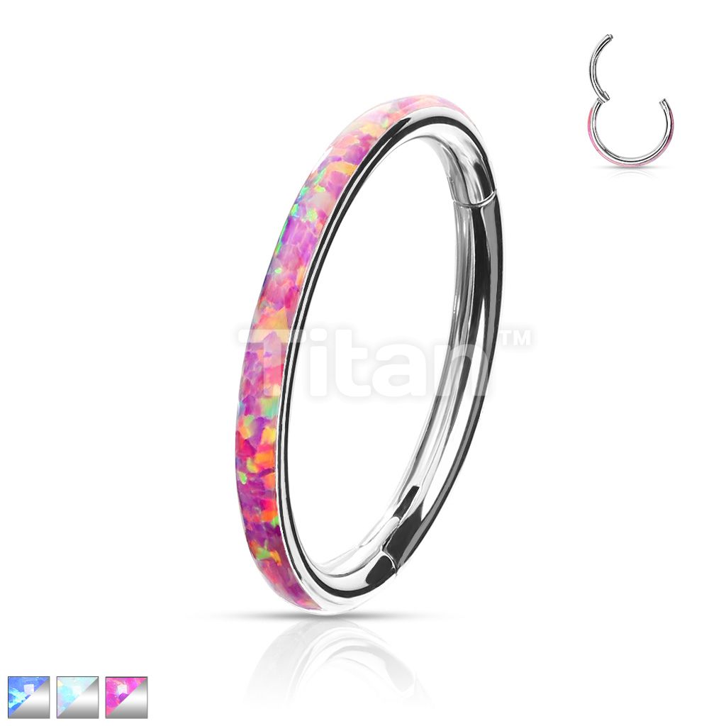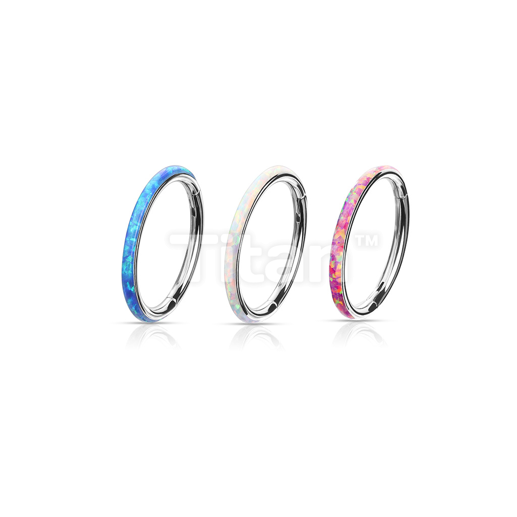 Implant Grade Titanium Hinged Segment Hoop Ring Lined With Outward Facing Opal