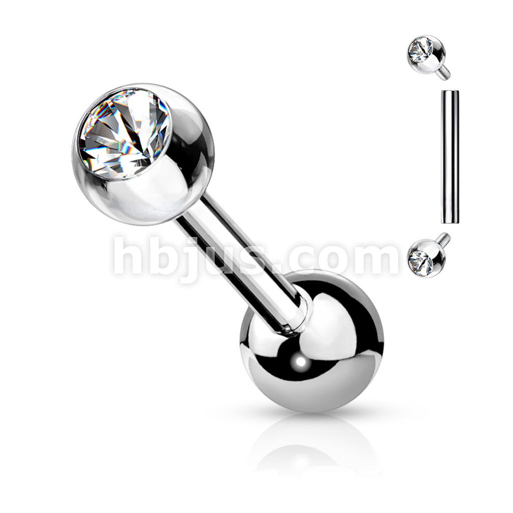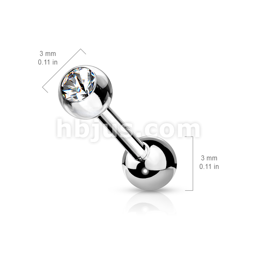 CZ Bezel Set Balls on Both Sides Internally Threaded 316L Surgical Steel Cartilage Barbells