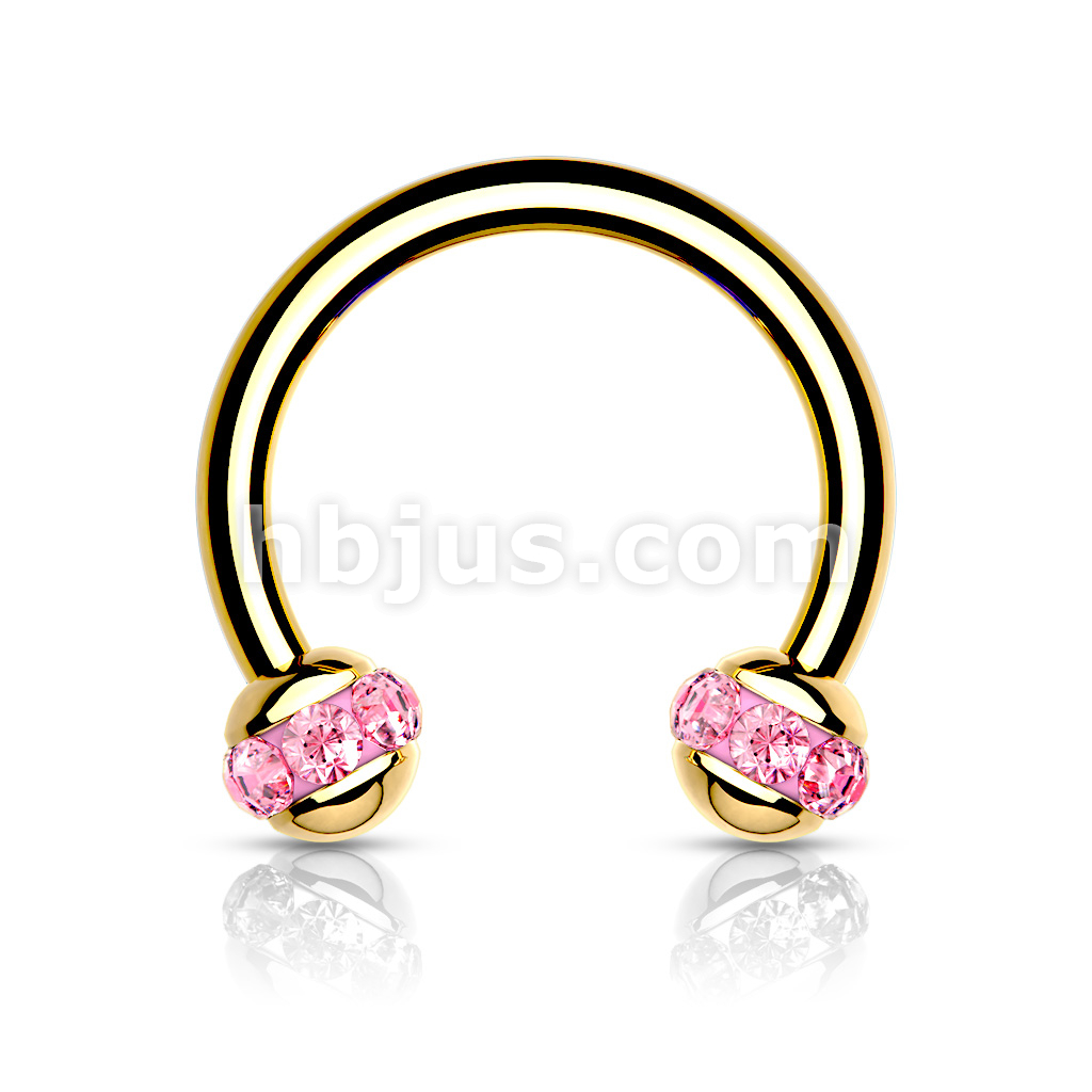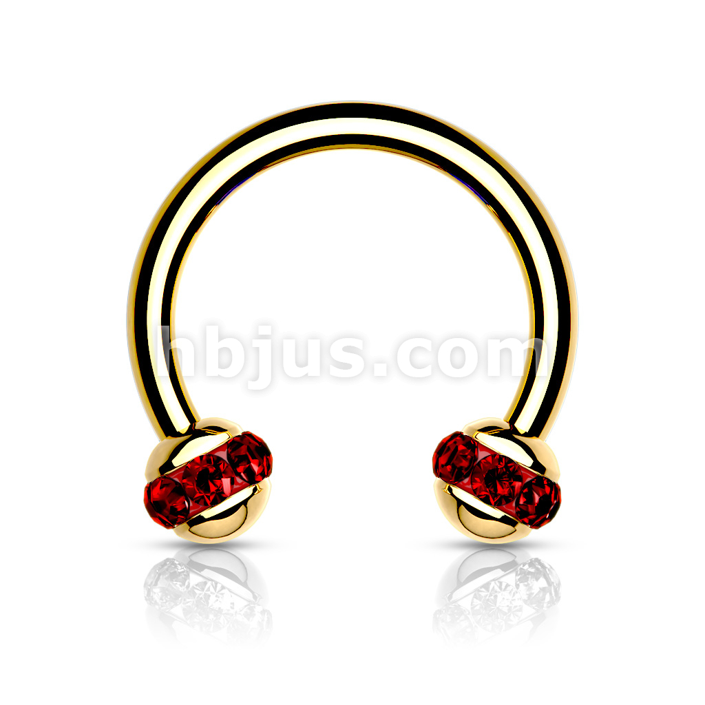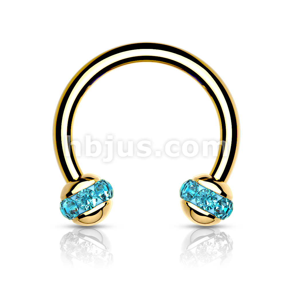 Crystals Paved Around ball Gold PVD Over 316L Surgical Steel Horseshoes for Ear Cartilage, Daith, Eyebrow, Nose Septum and More
