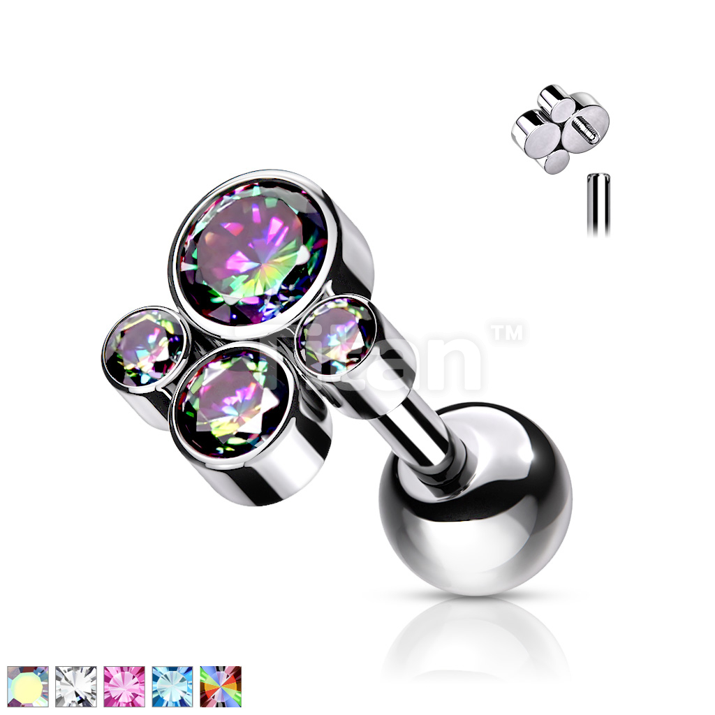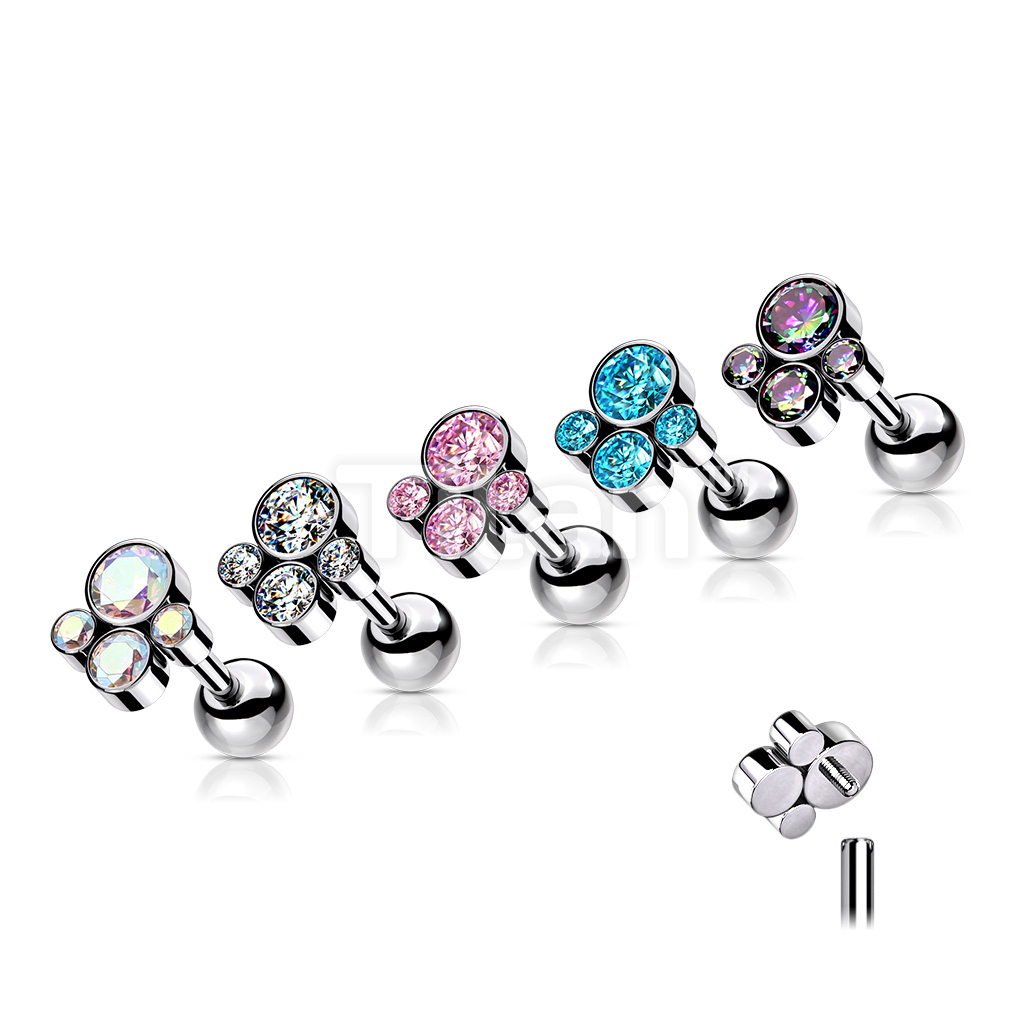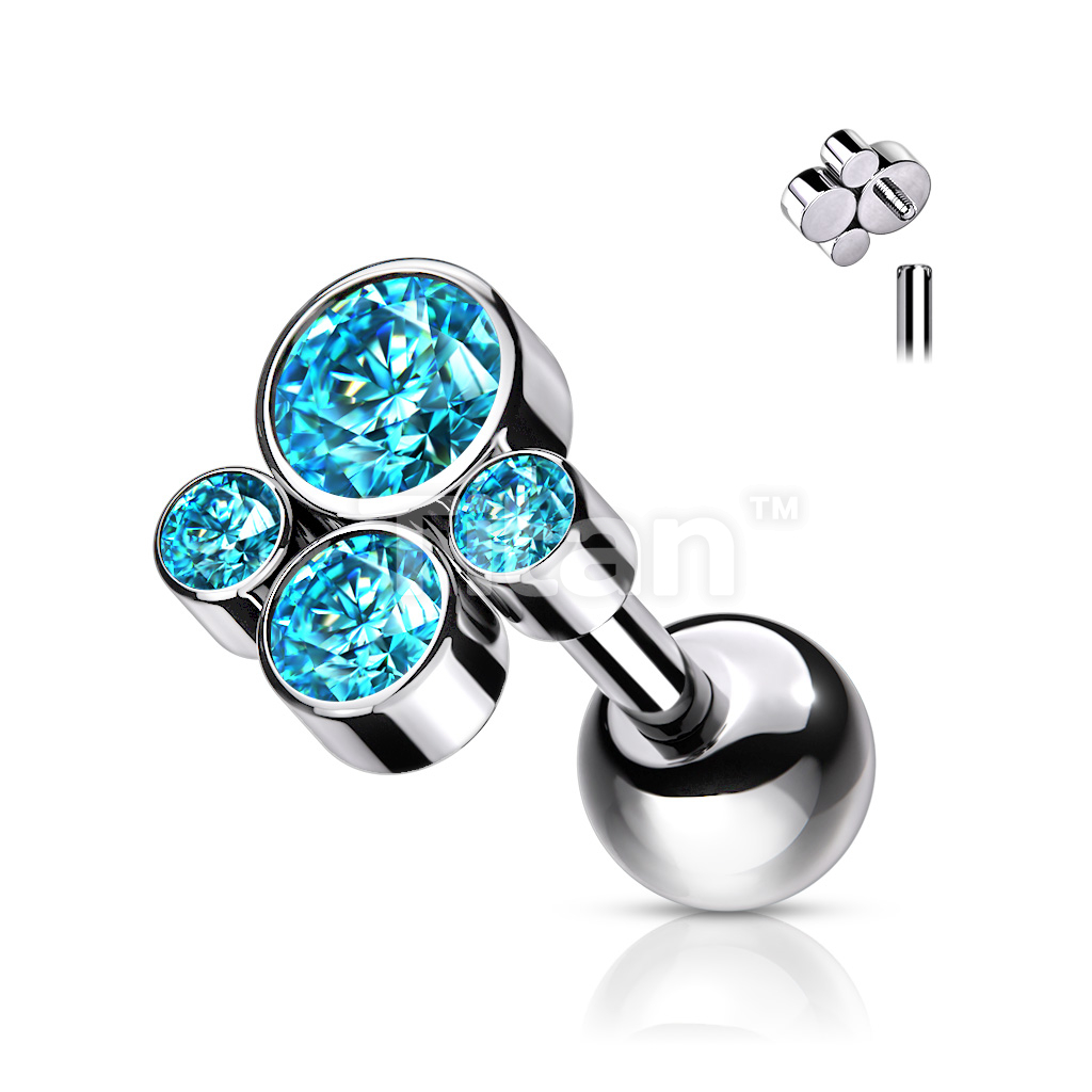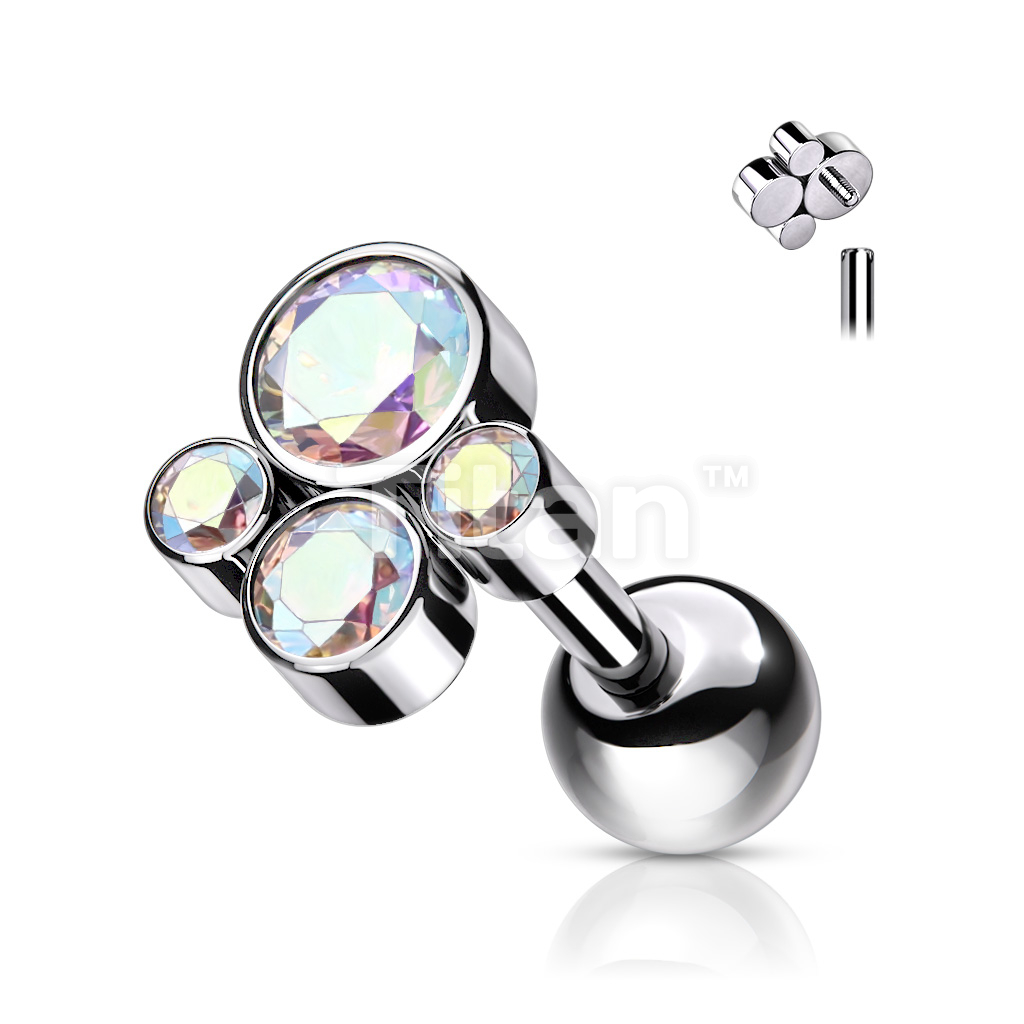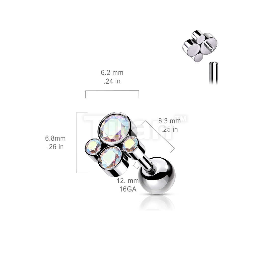 Implant Grade Titanium Internally Threaded Cartilage Barbells With Bezel Set CZ Cluster Top