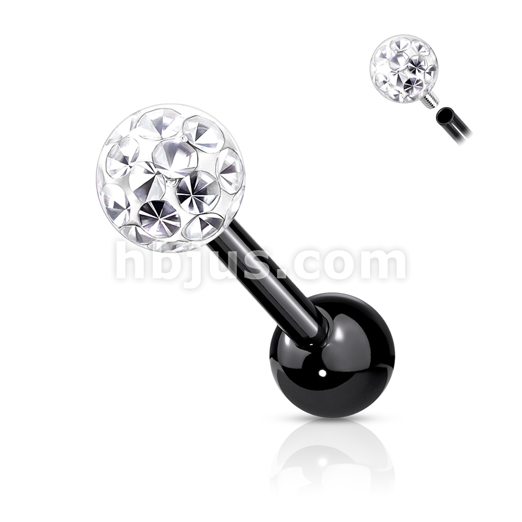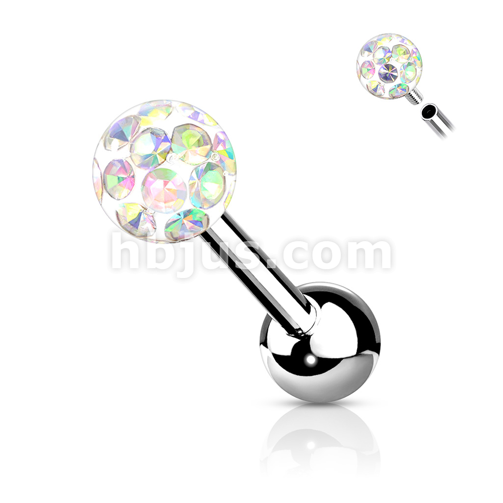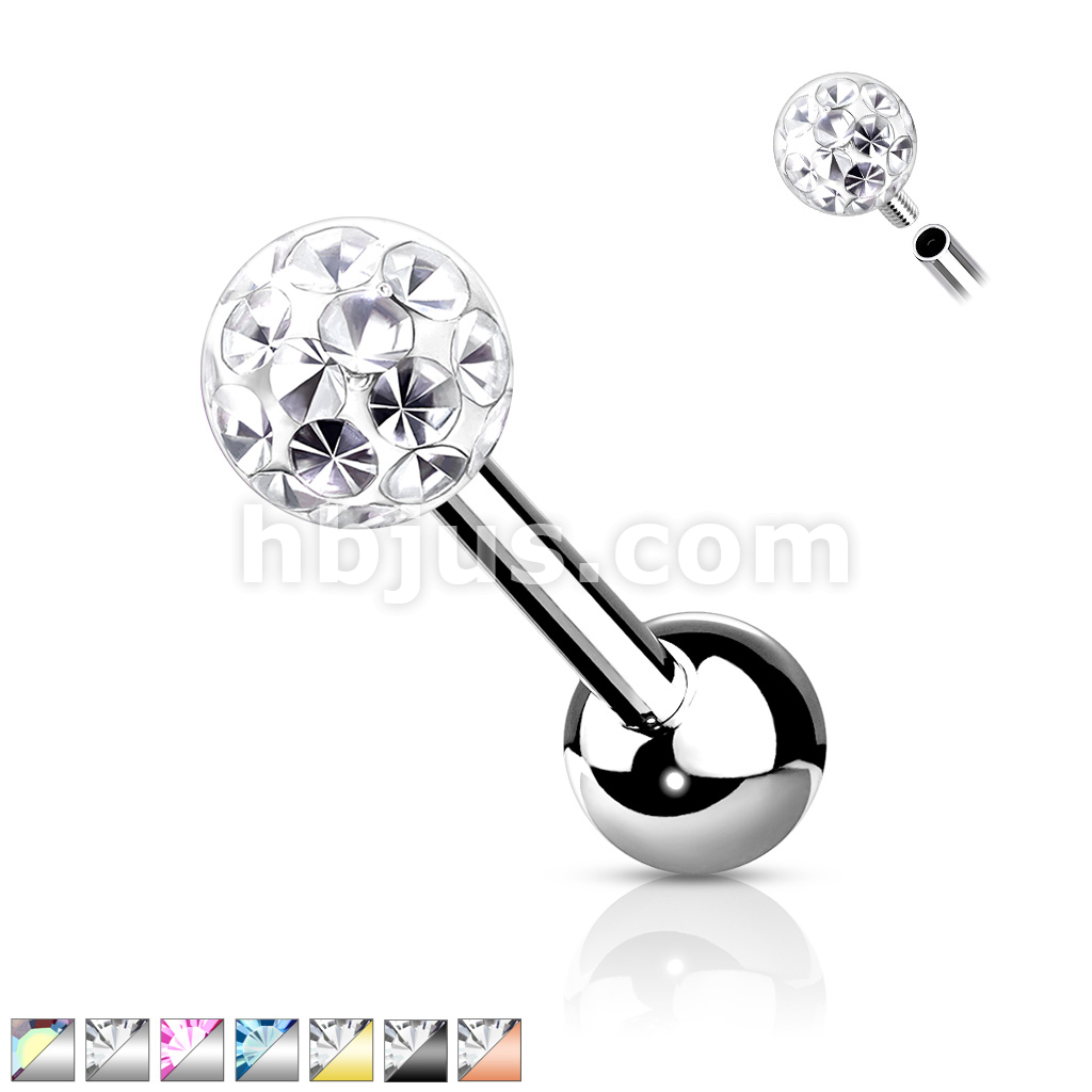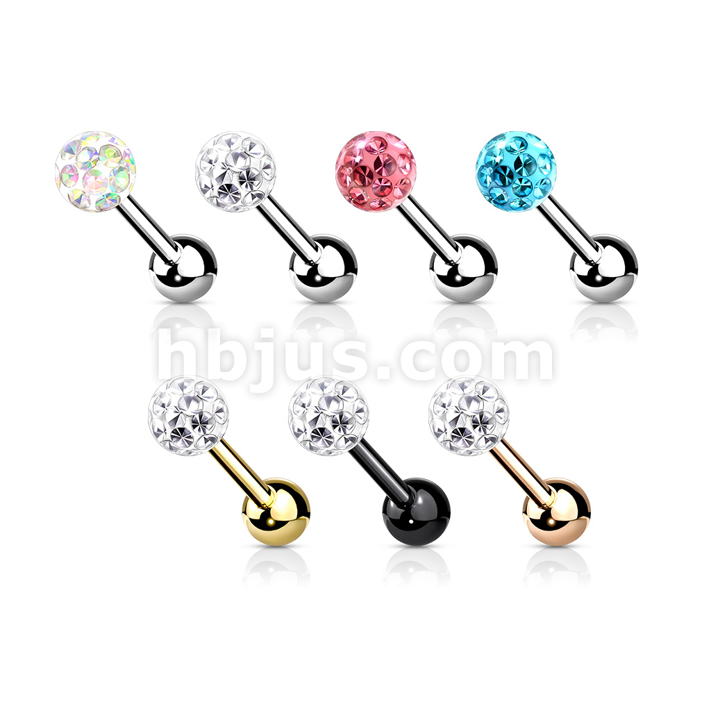 Internally Threaded 316L Surgical Steel Cartilage Barbells with Epoxy Covered Crystal Paved Ball Top