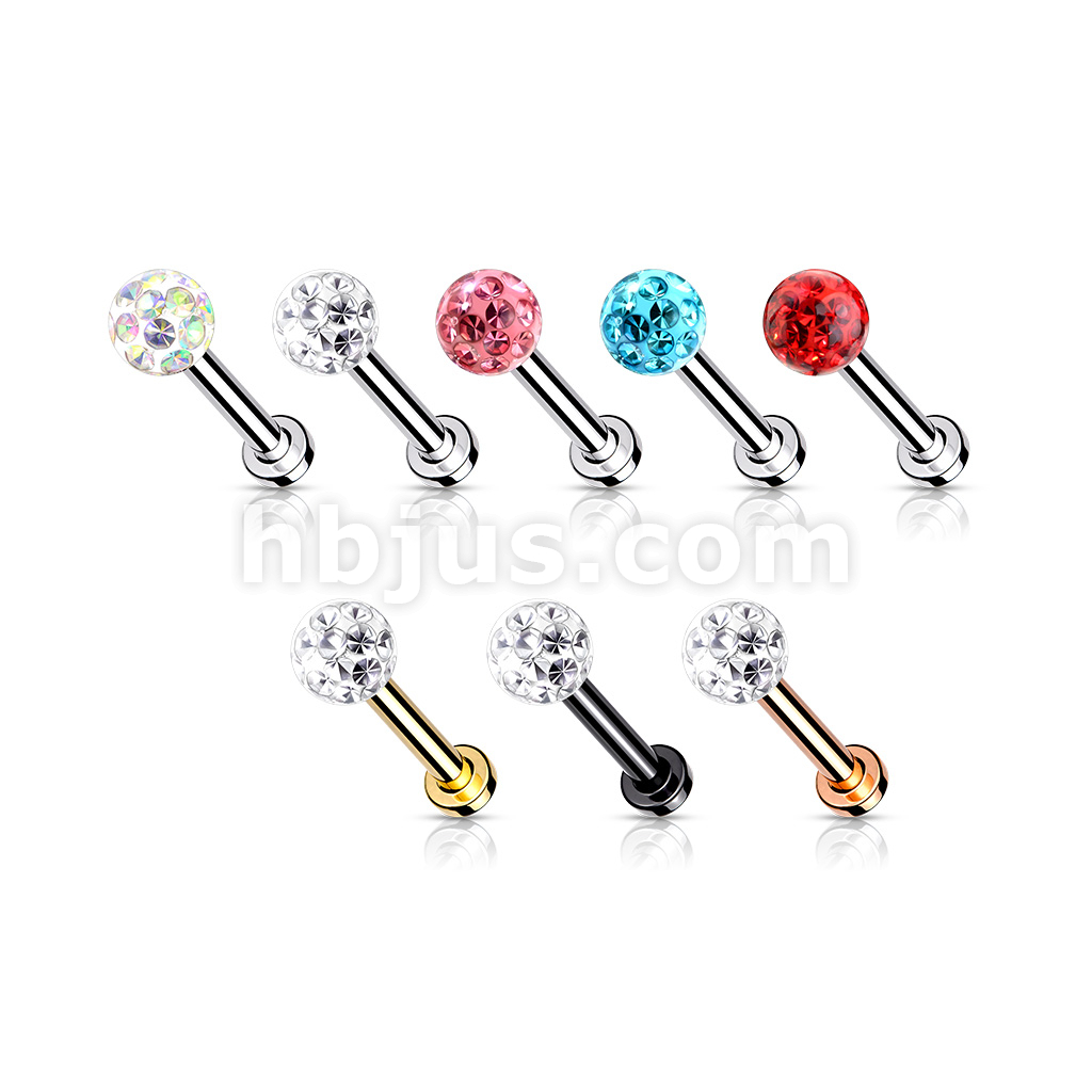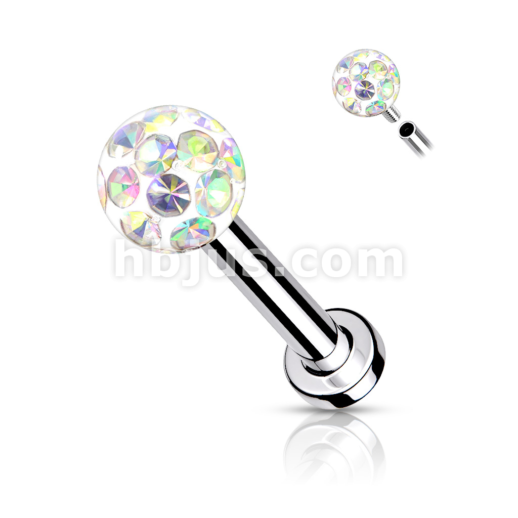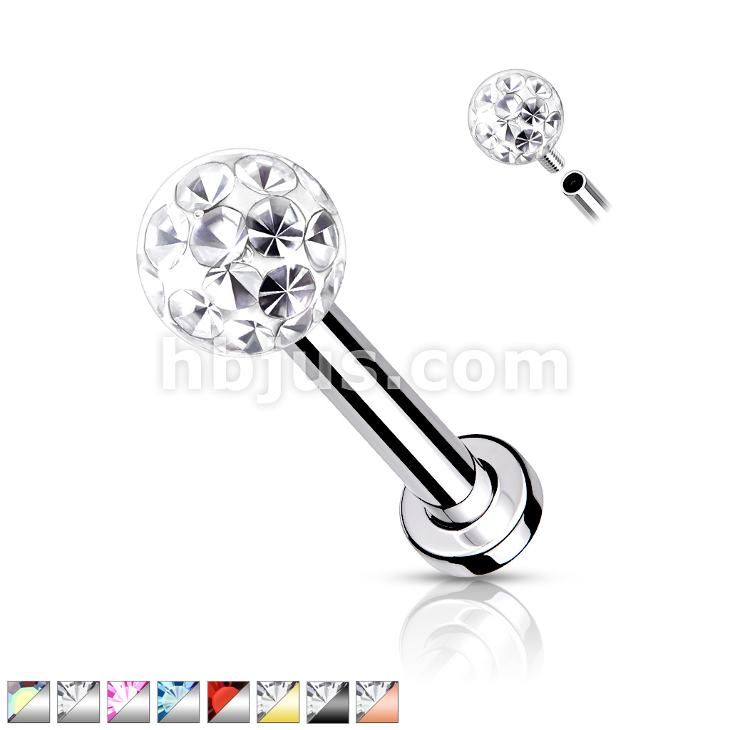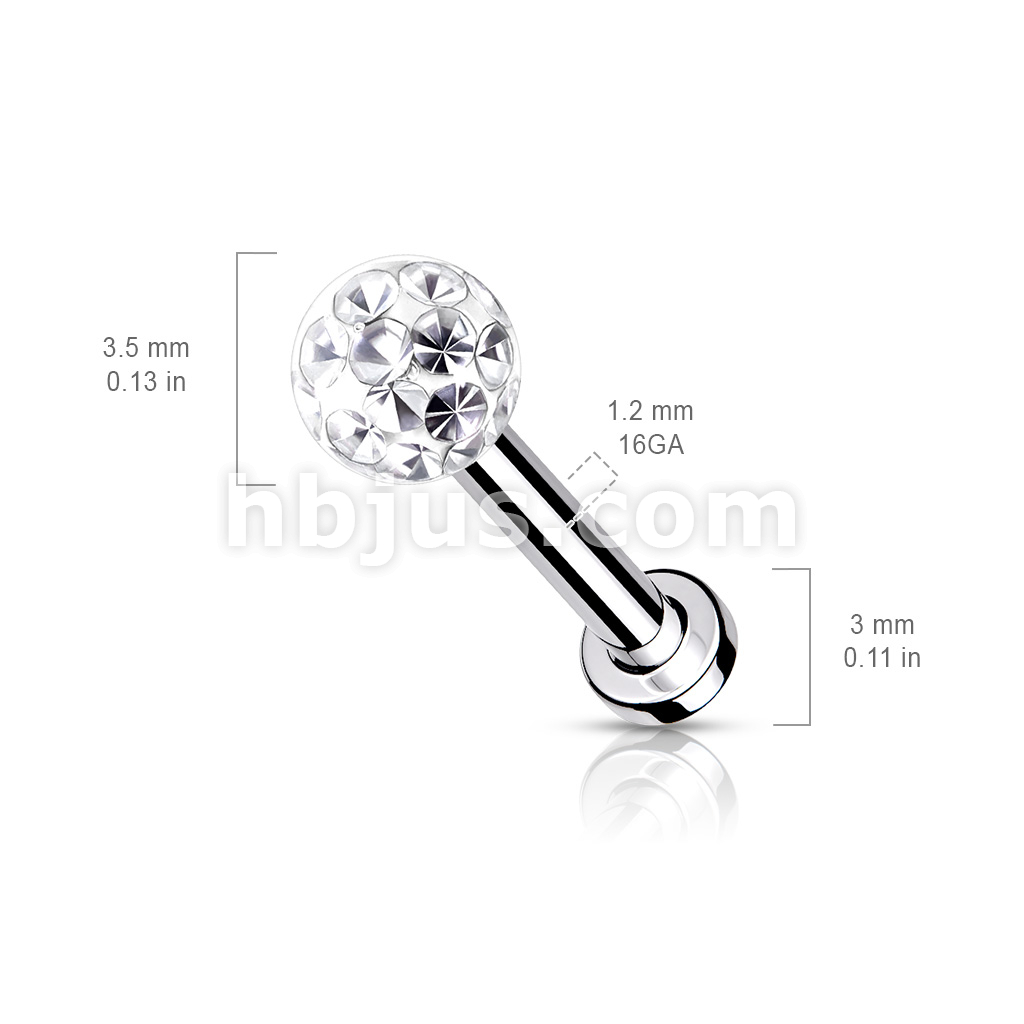 Internally Threaded 316L Surgical Steel With Epoxy Covered Crystal Paved Ball Top Flat Back Studs for Labret, Monroe, Cartilage and More