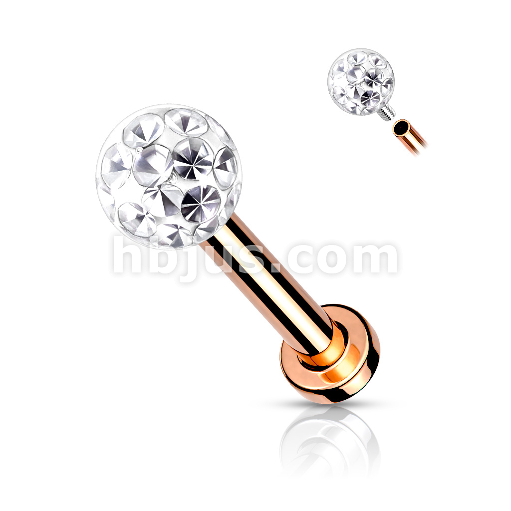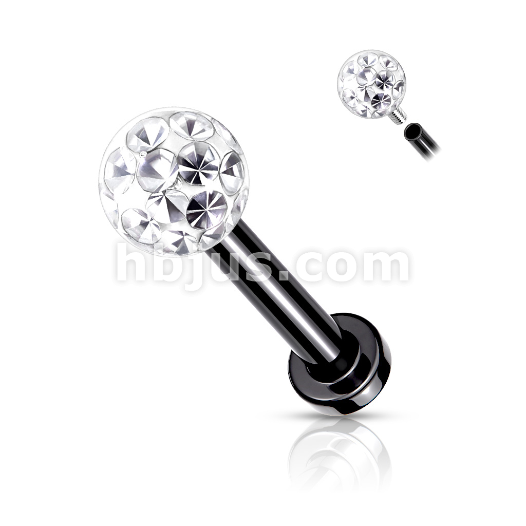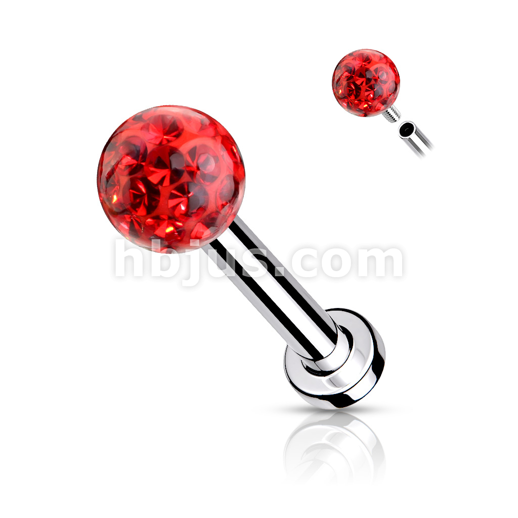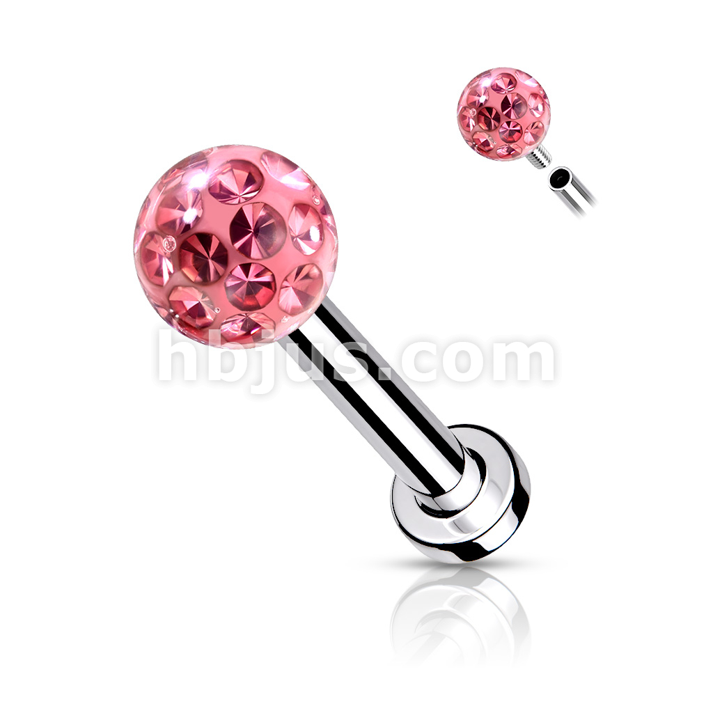 Internally Threaded 316L Surgical Steel With Epoxy Covered Crystal Paved Ball Top Flat Back Studs for Labret, Monroe, Cartilage and More