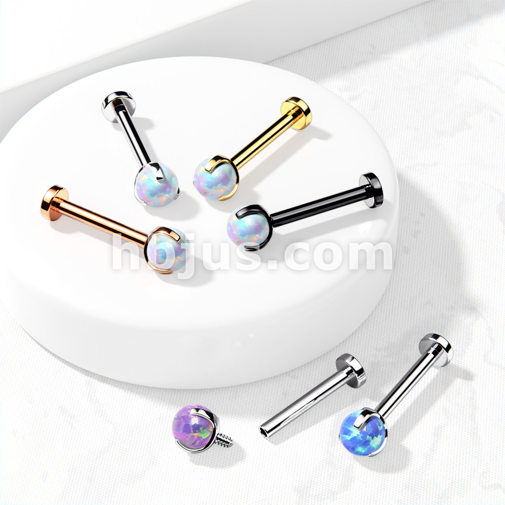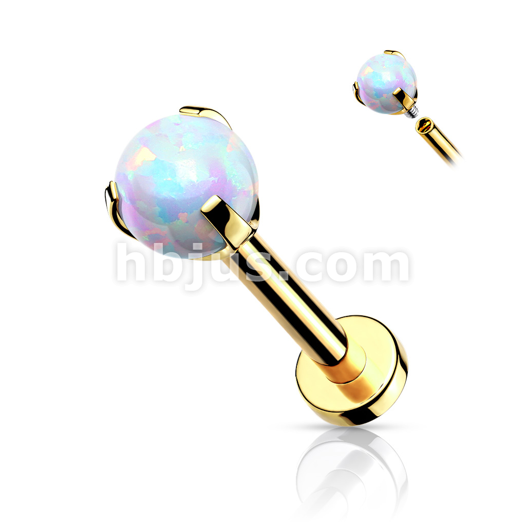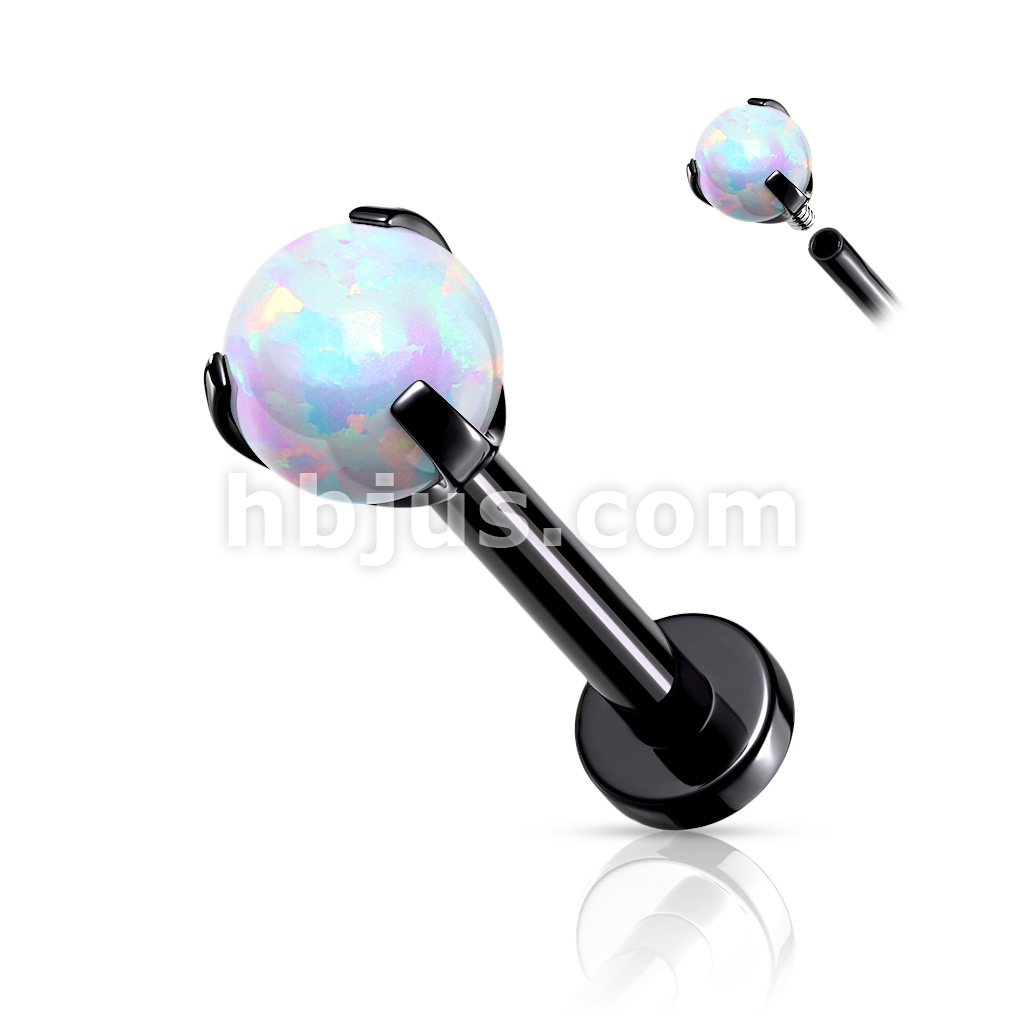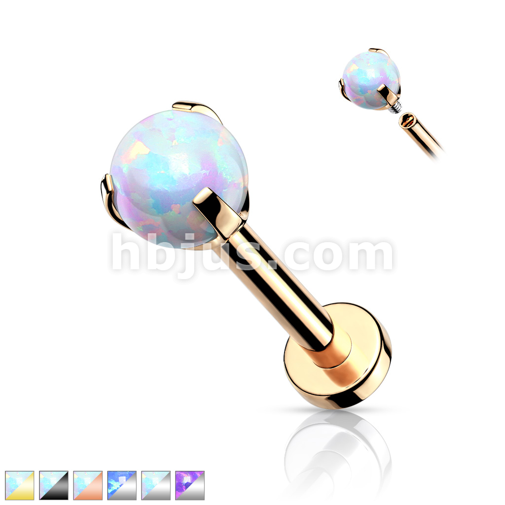 Claw Set Opal Ball Internally Threaded 316L Surgical Steel Labret, Flat Back Studs