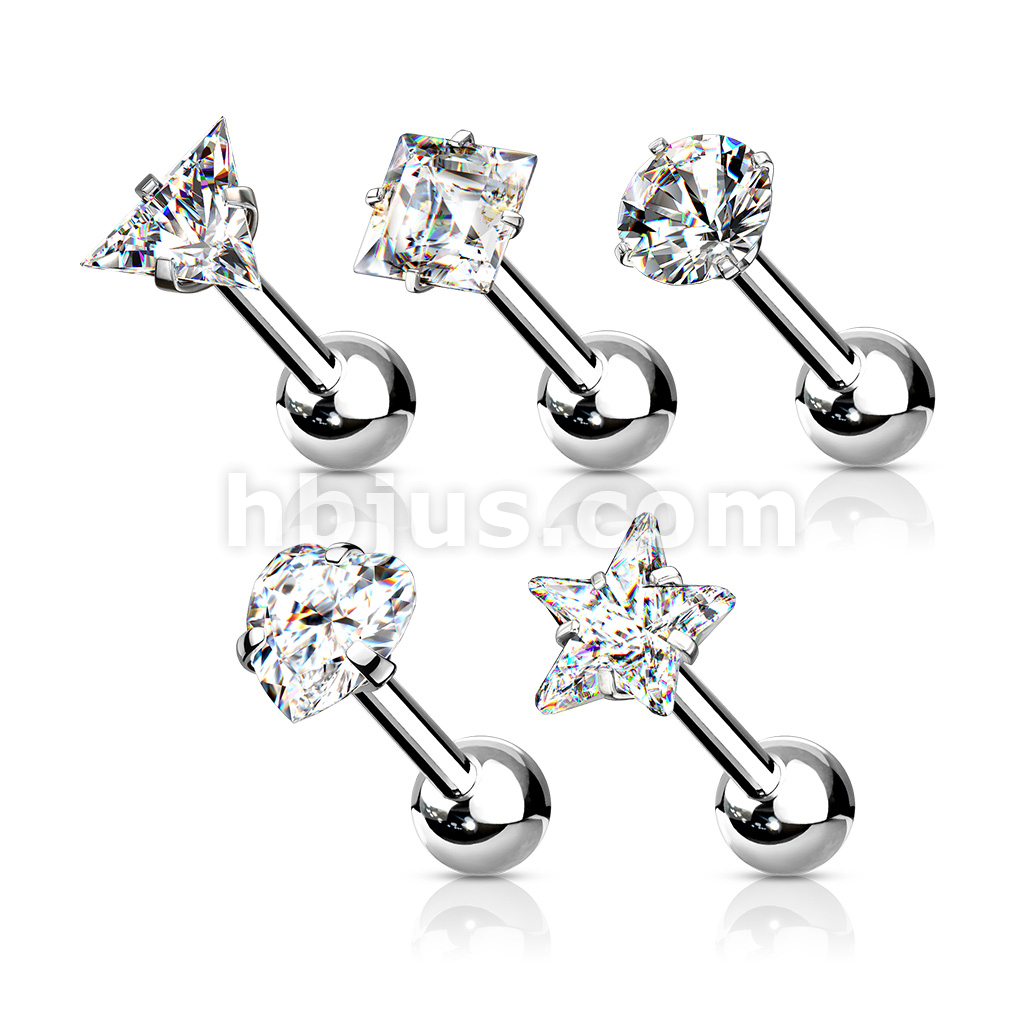 5 Pcs Value Pack of Assorted 316L Cartilage/Tragus Bar with Prong Set Mixed CZ Top