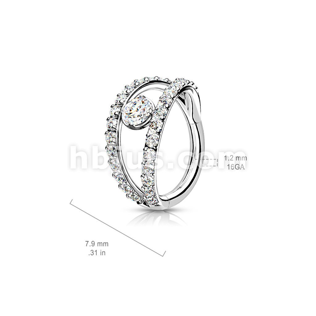 High Quality Precision All 316L Surgical Steel Hinged Segment Hoop Rings with Double Layer Paved CZ and Center CZ
