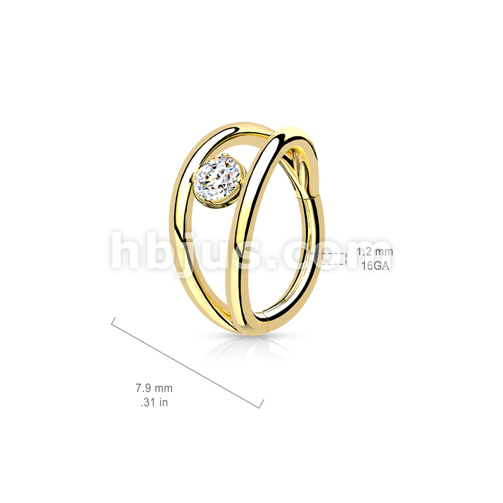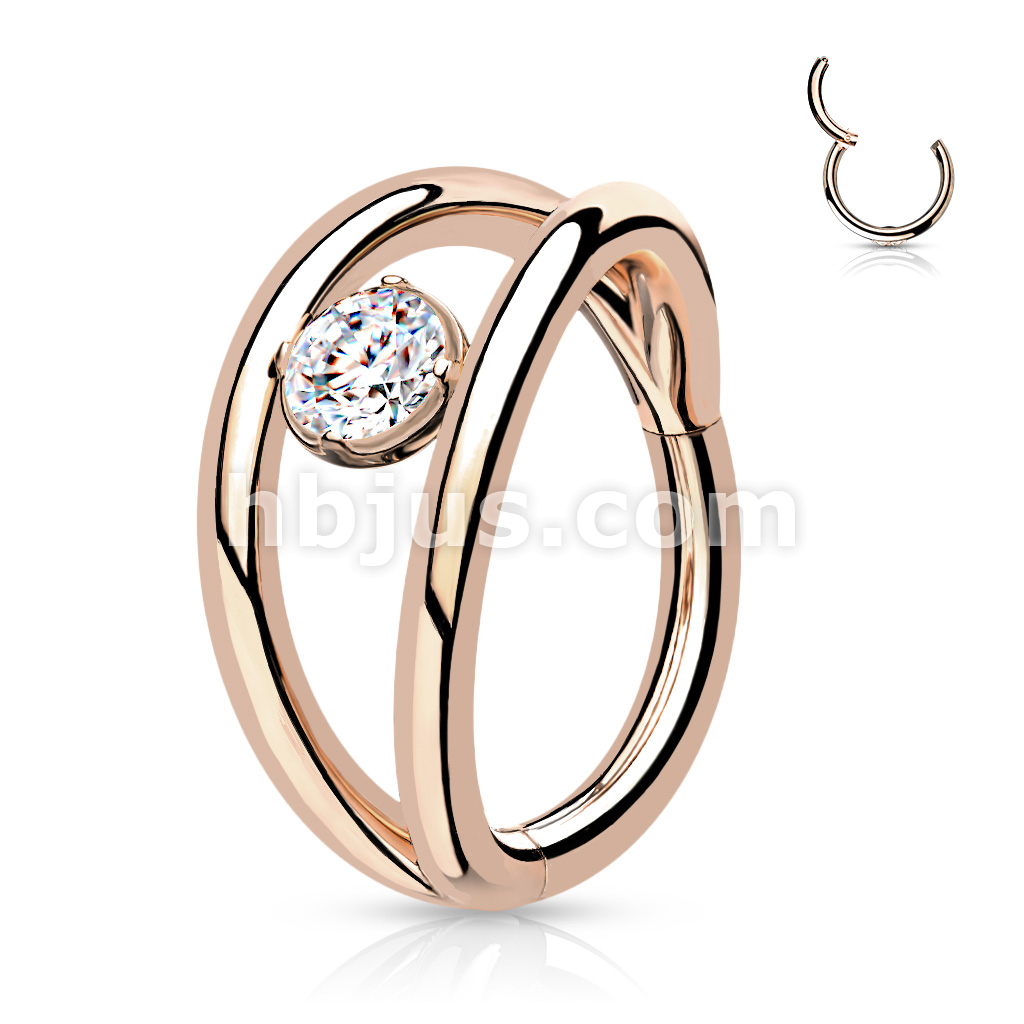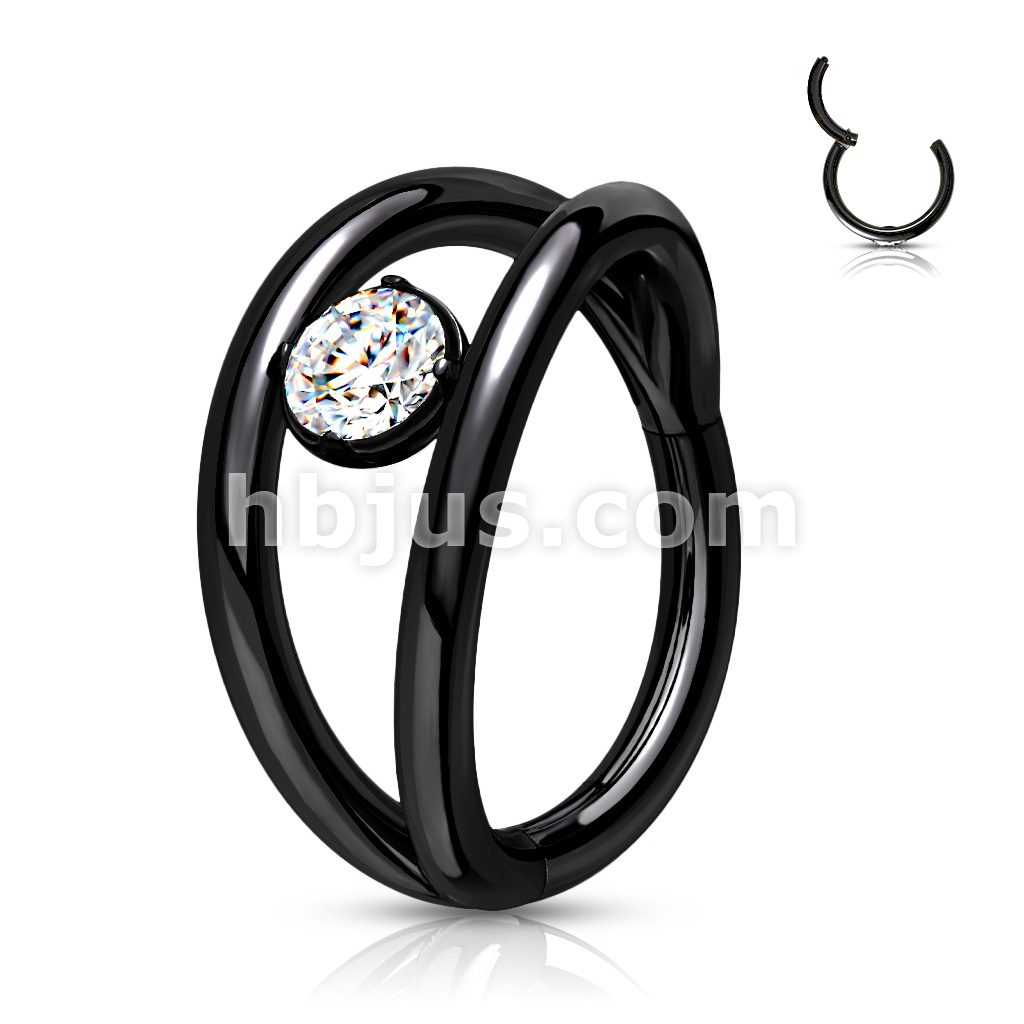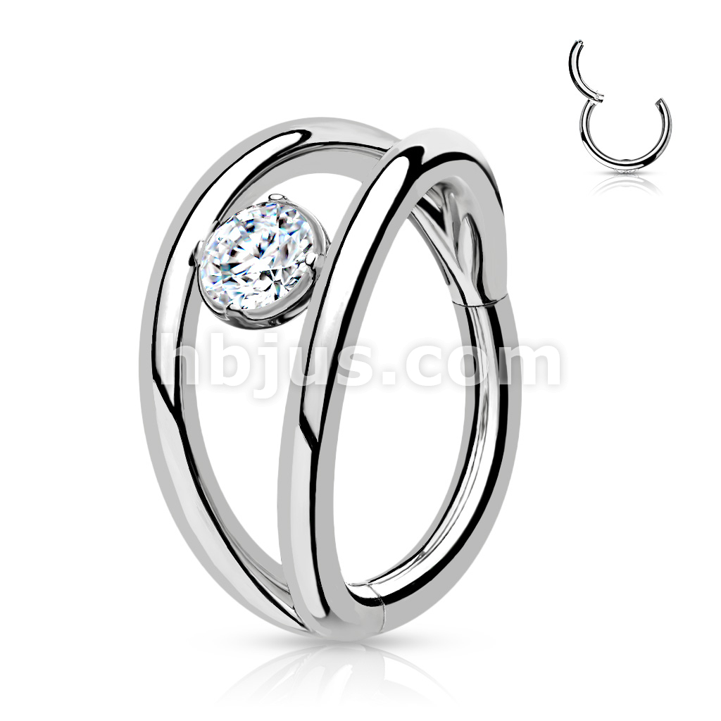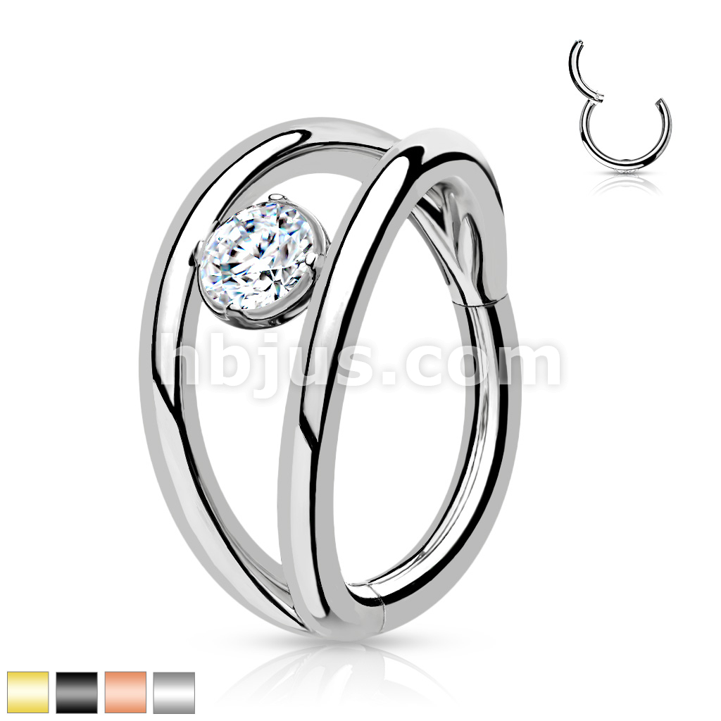High Quality Precision All 316L Surgical Steel Hinged Segment Hoop Rings with Double Layer Hoop and CZ Center