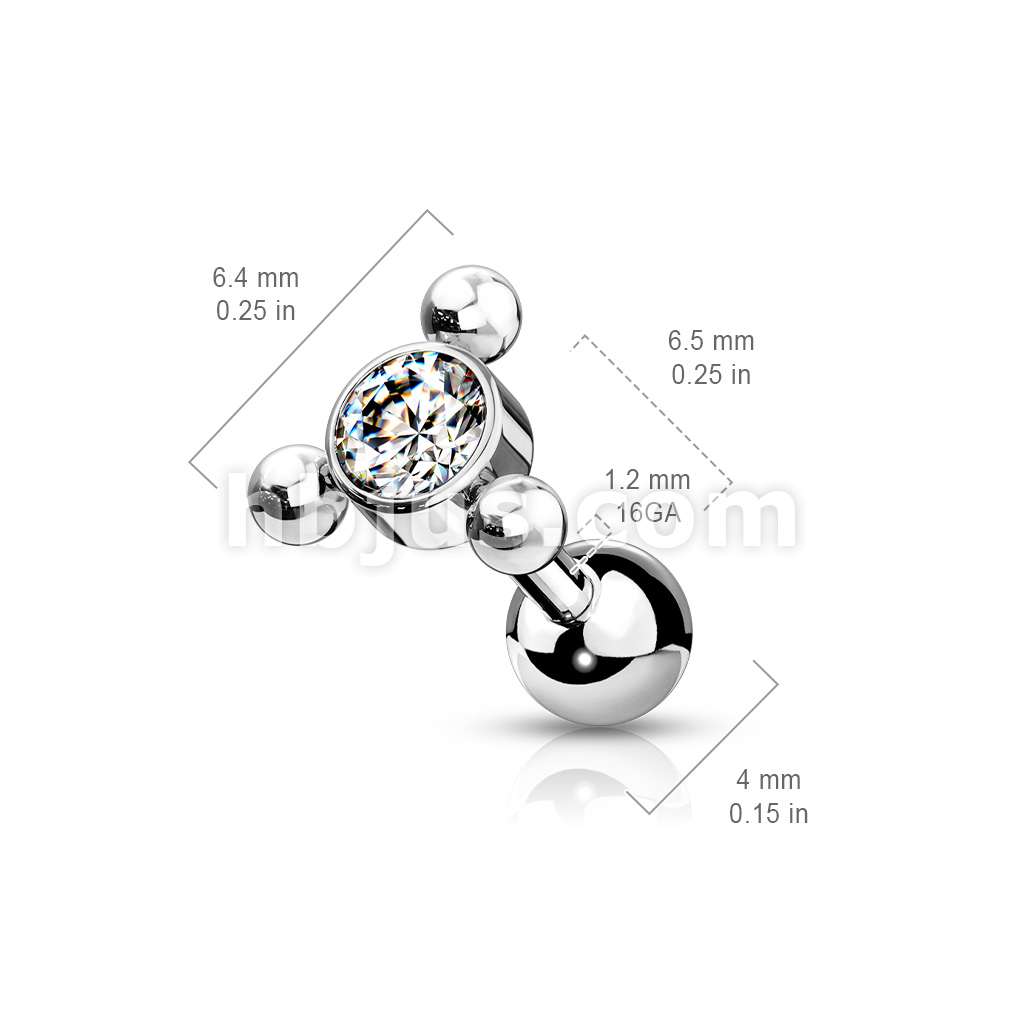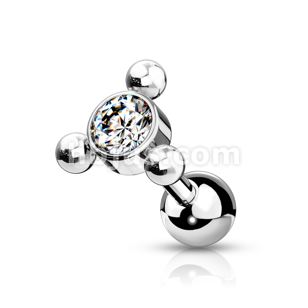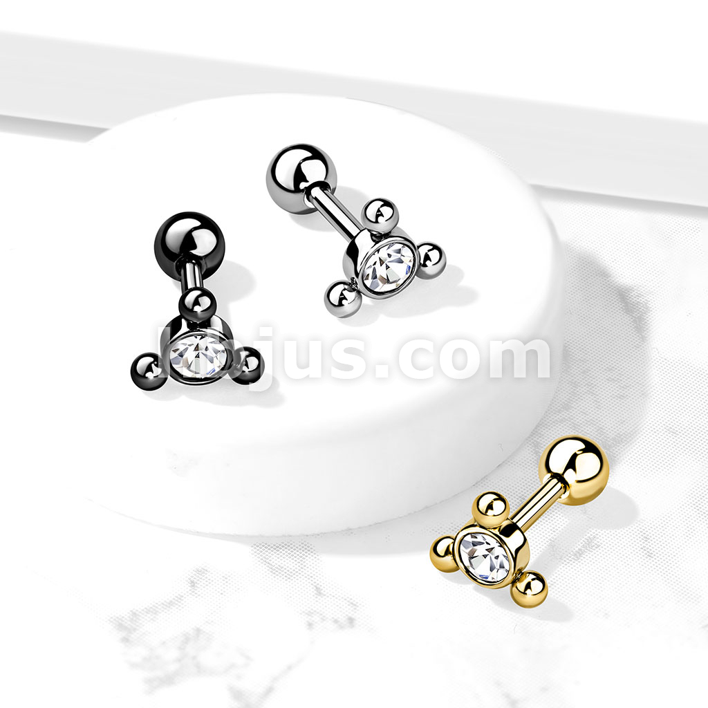 Clear Gem Set Center with 3-Ball Triangle Top 316L Surgical Steel Cartilage Barbell Studs