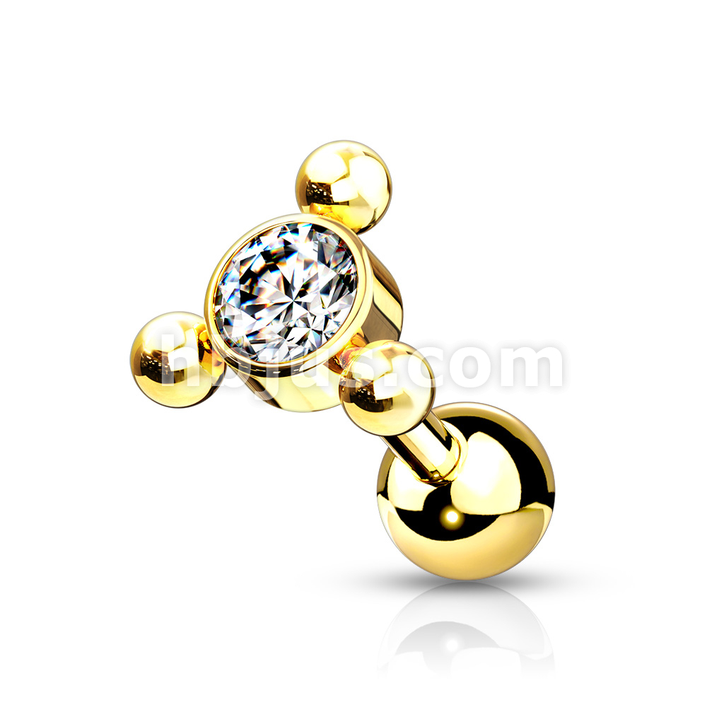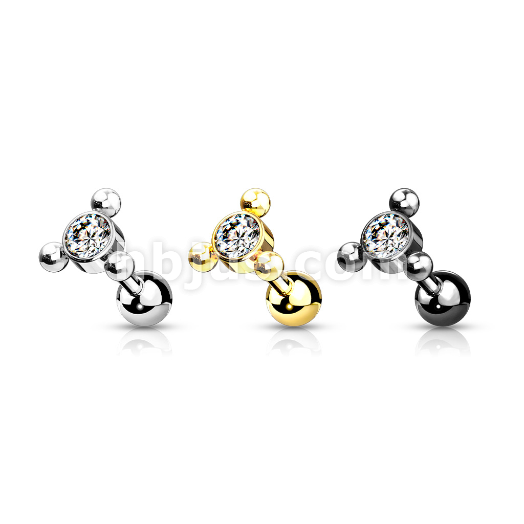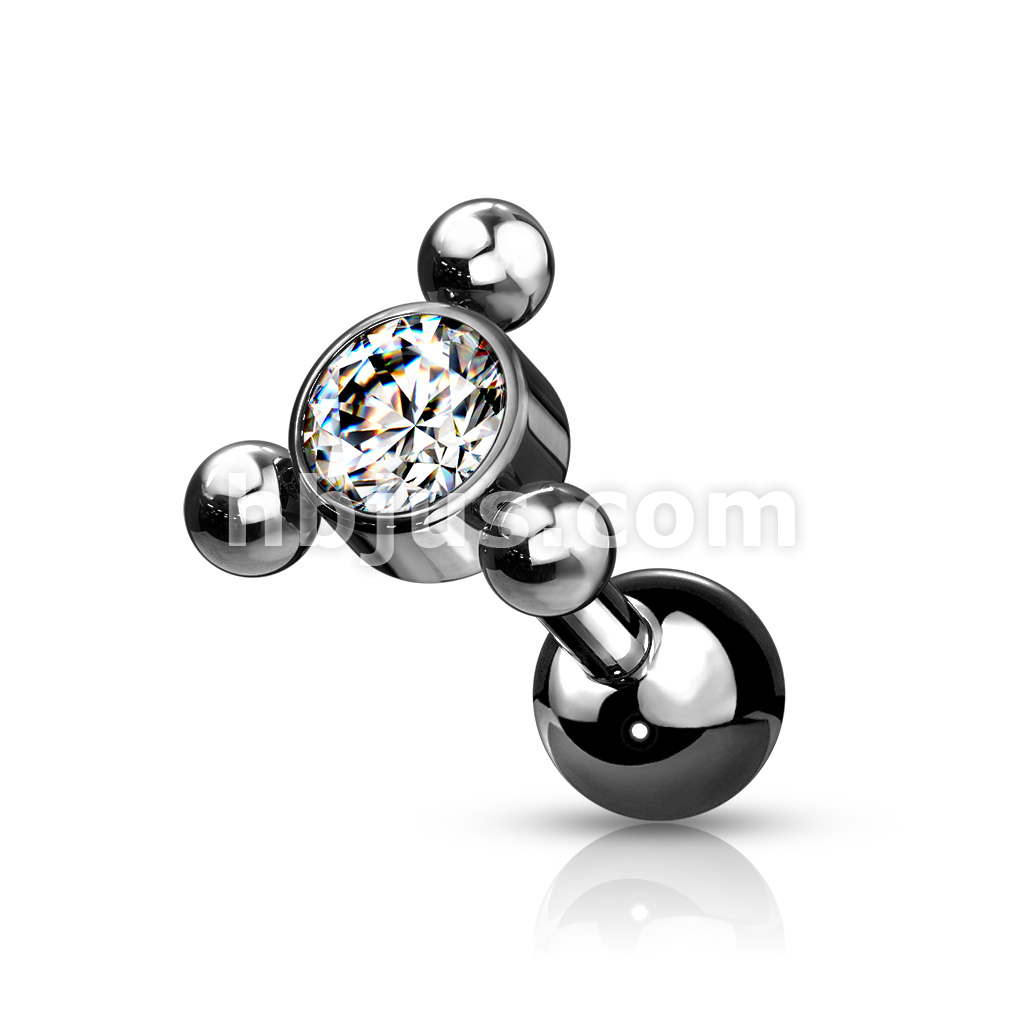 Clear Gem Set Center with 3-Ball Triangle Top 316L Surgical Steel Cartilage Barbell Studs