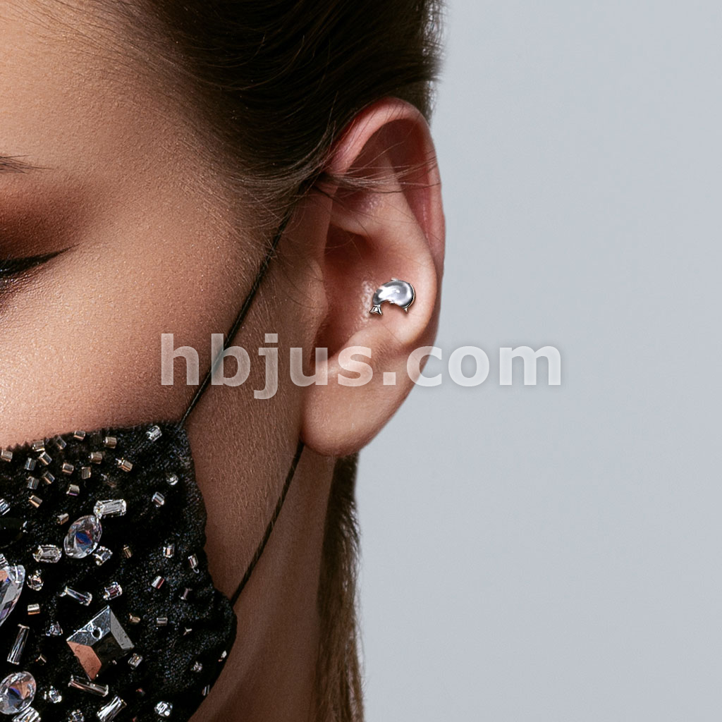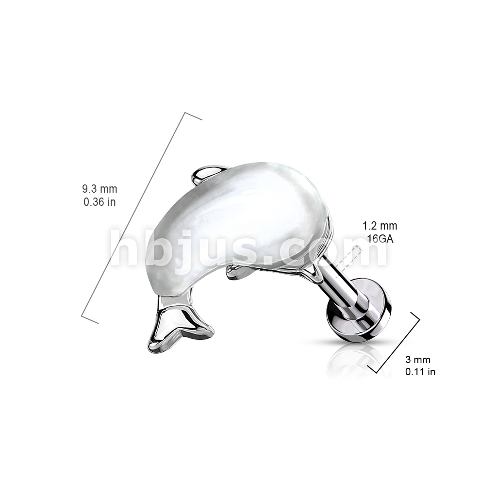 Shell Set Whale Top on Internally Threaded 316L Surgical Steel Flat Back Studs for Labret, Monroe, Cartilage and More
