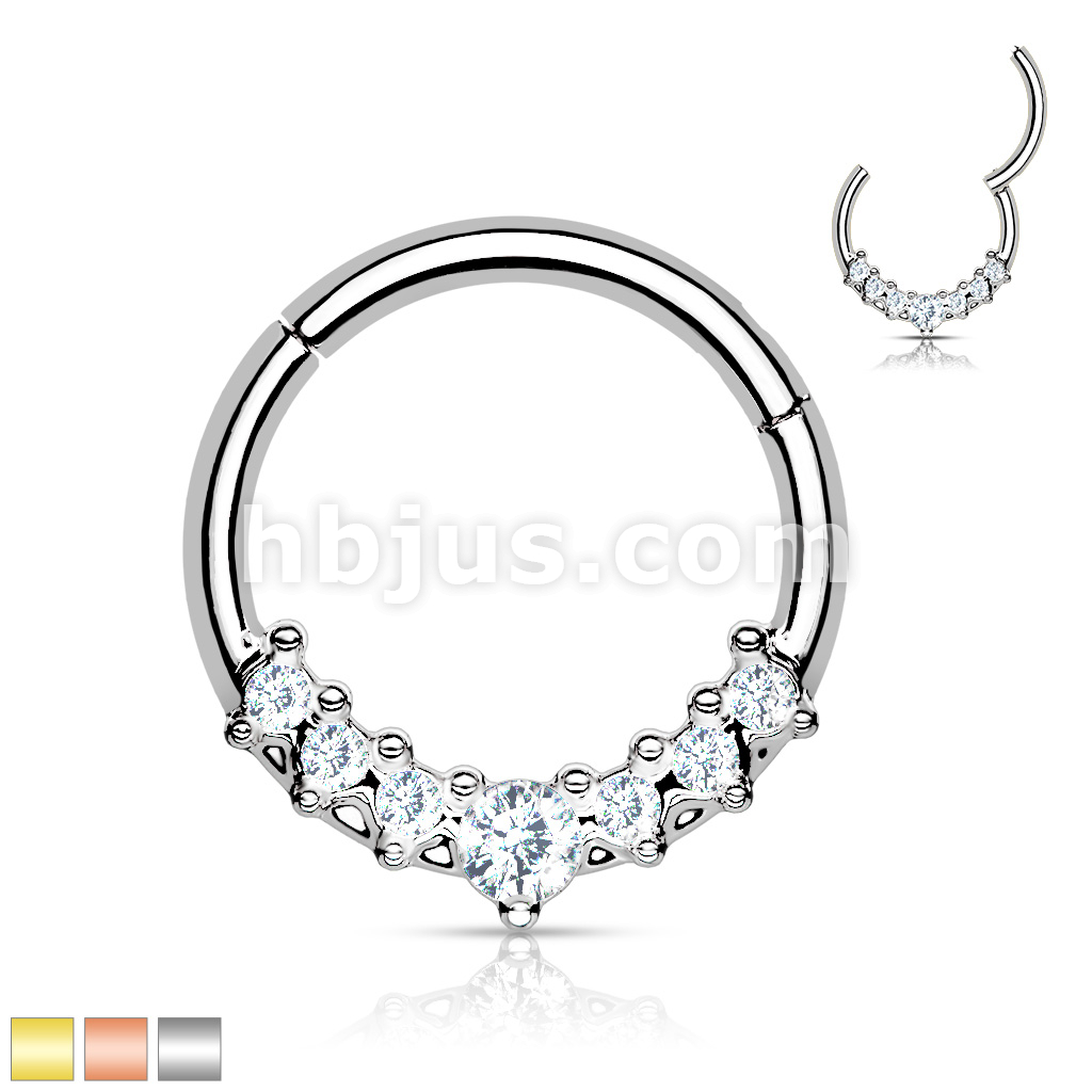 316L Surgical Steel Hinged Segment Hoop Ring With Lined CZ Fan