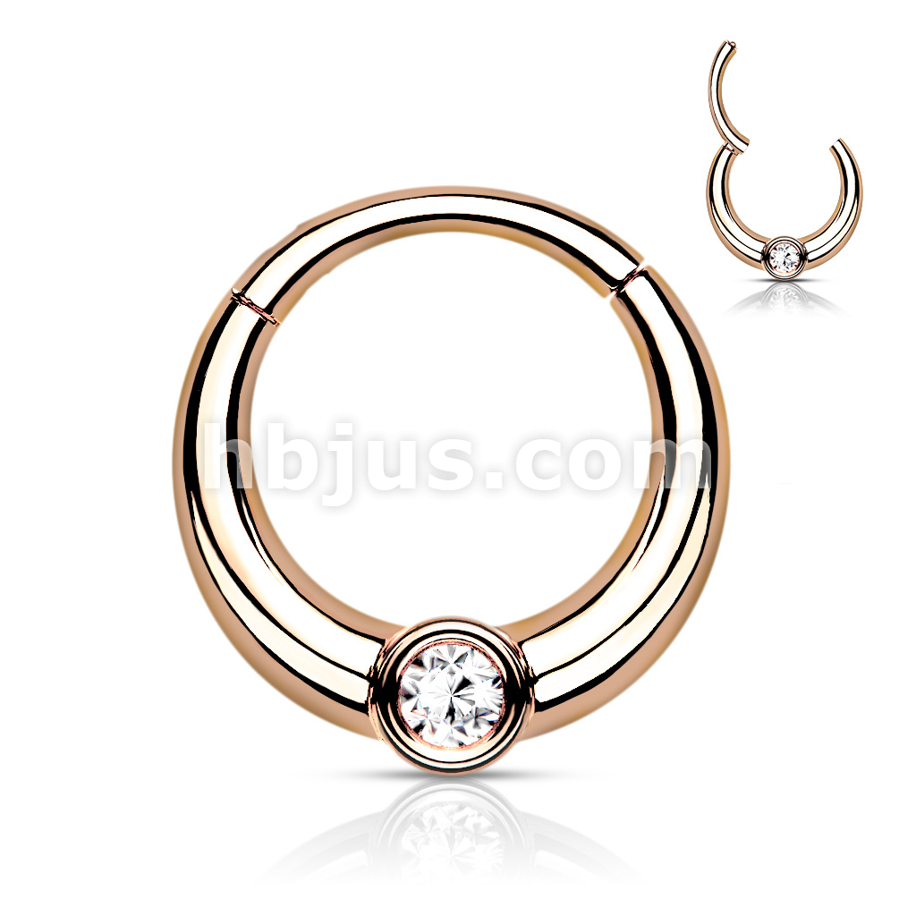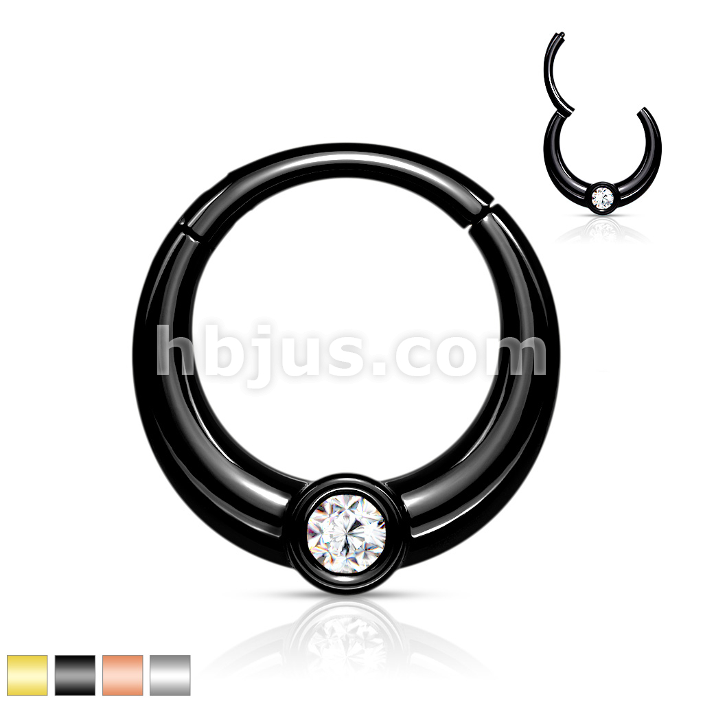 Centered Front Facing CZ 316L Surgical Steel Hinged Segment Hoop Rings