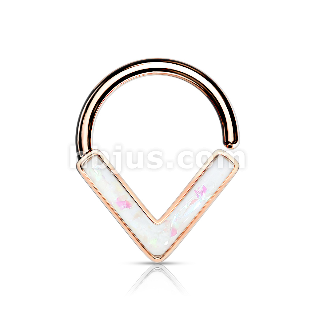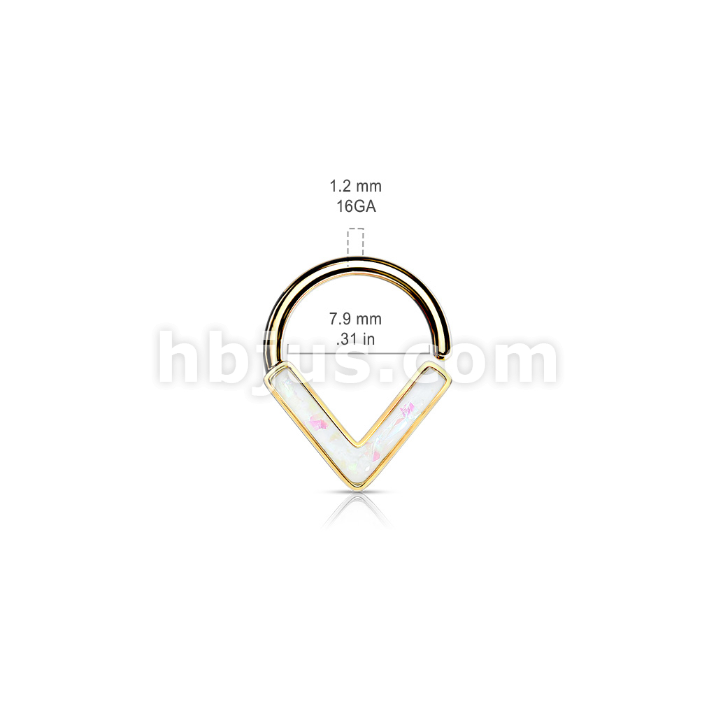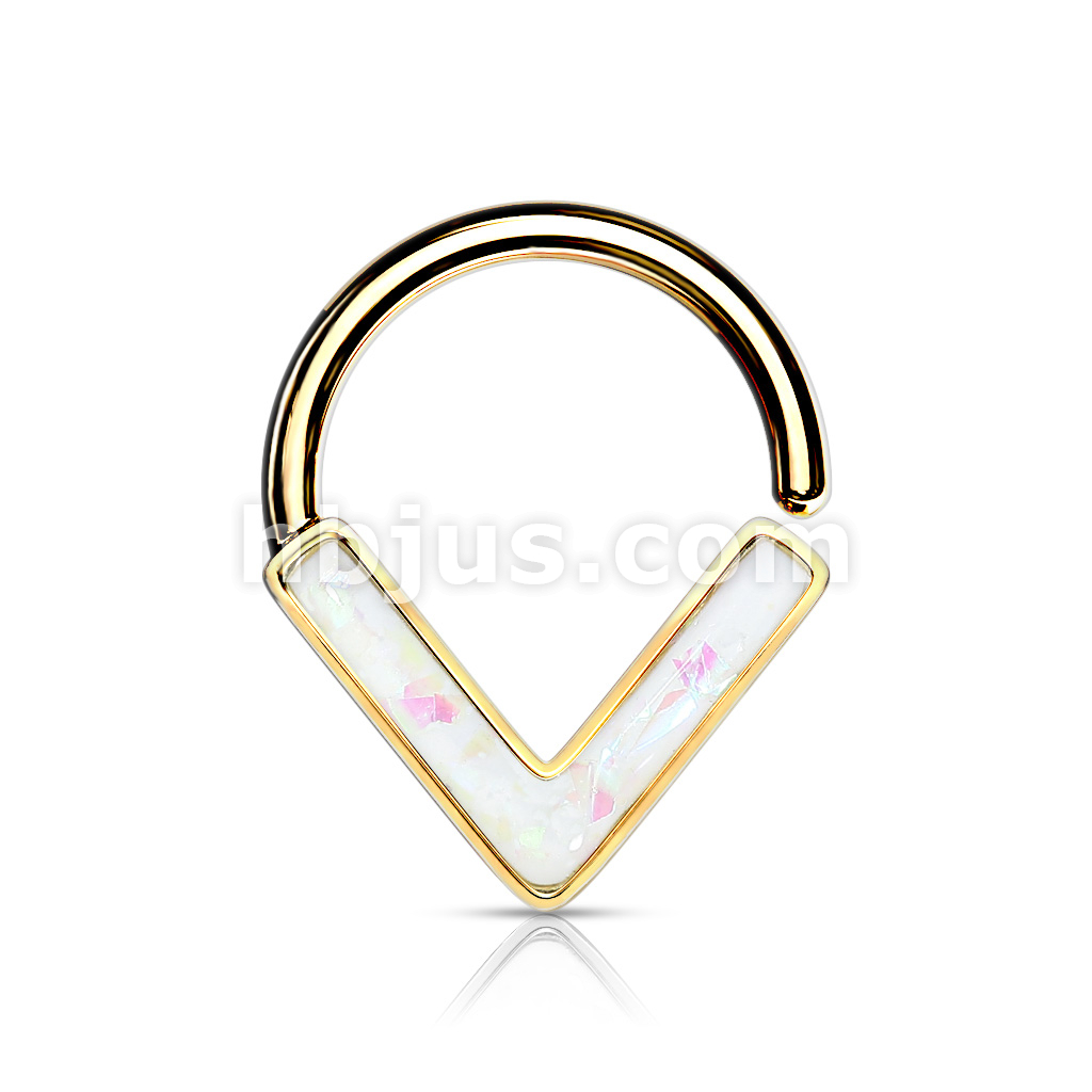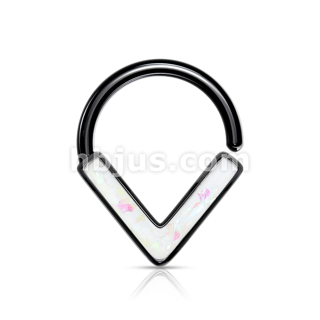 Opal Glitter Chevron Front Facing All 316L Surgical Steel Bendable Hoop Ring for Daith, Cartilage, Nose Septum and More