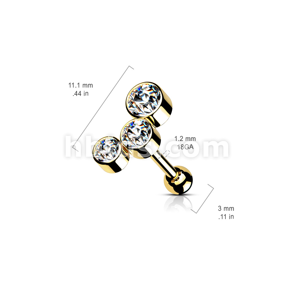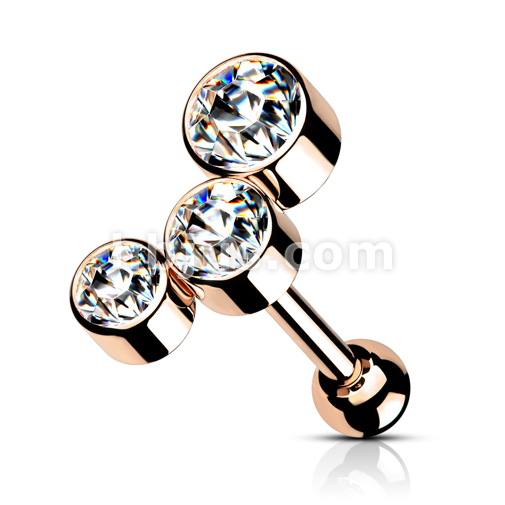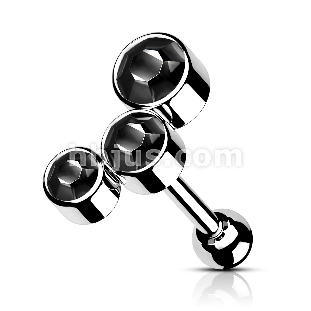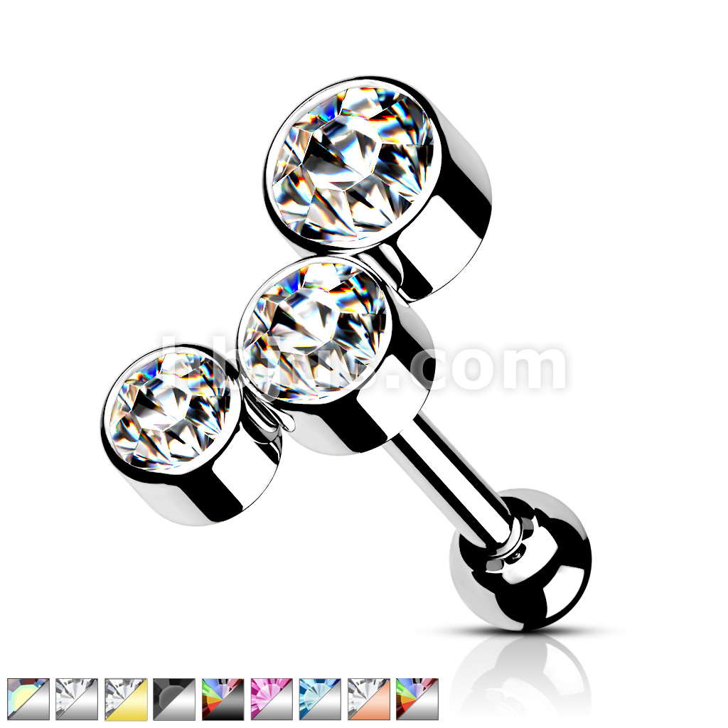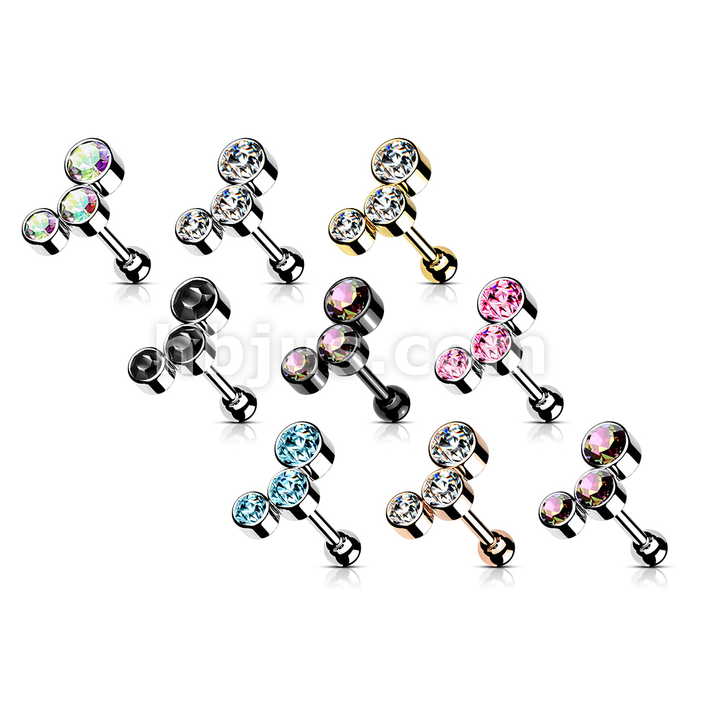 Round Gem Trio Top 316L Surgical Steel Cartilage Barbell Stud