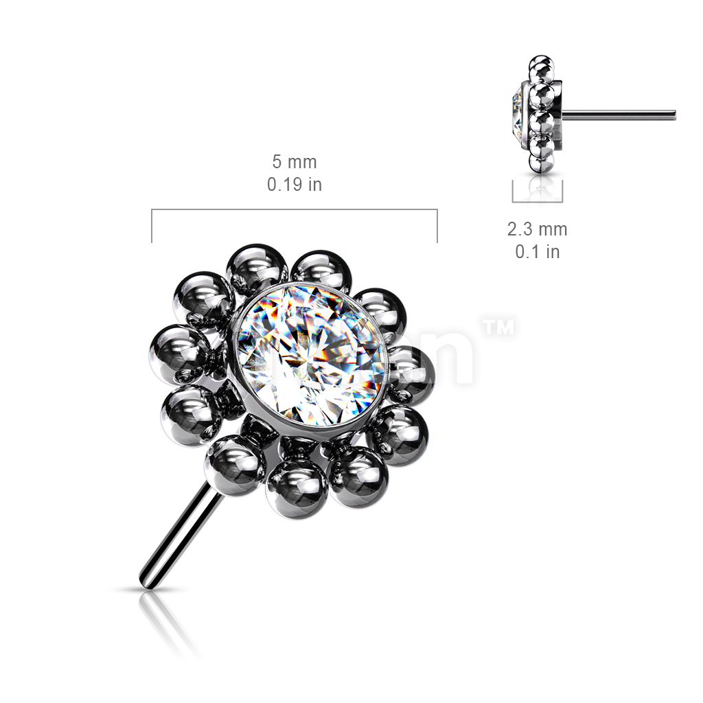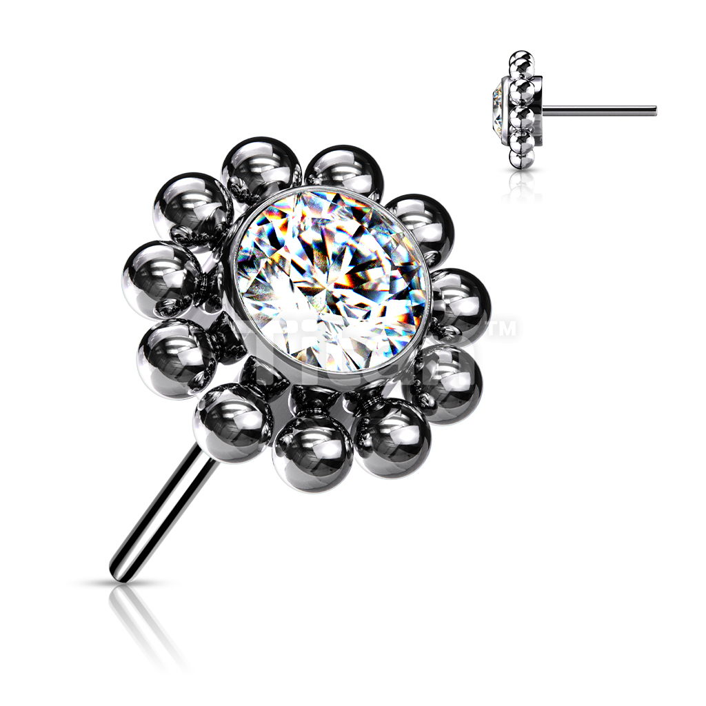 Implant Grade Titanium Threadless Push In Bezel Set CZ Center With Beaded Ball Edge