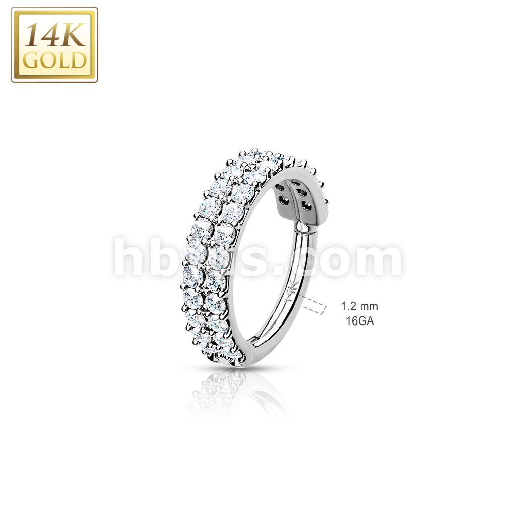14K Gold Hinged Segment Hoop Ring with Double Line Paved CZ
