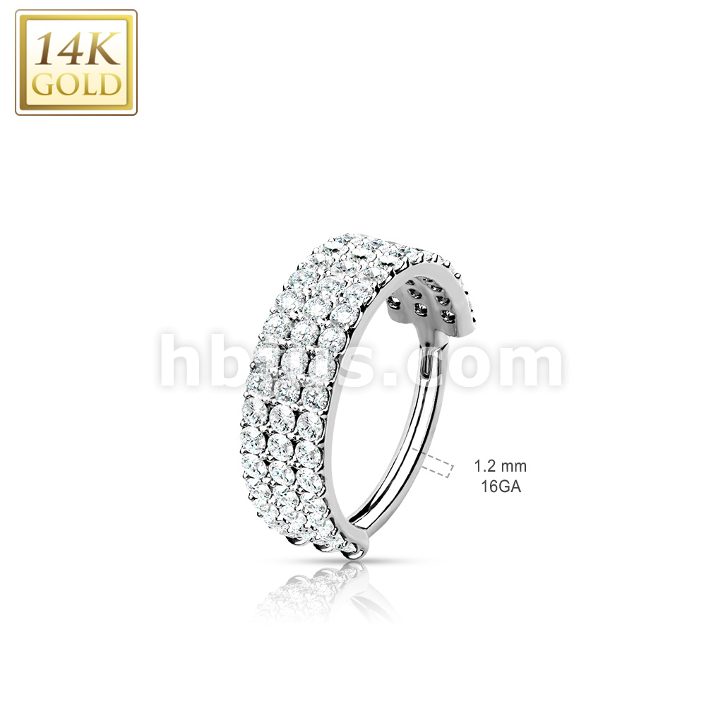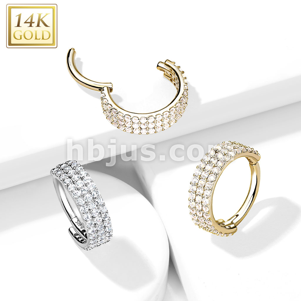 14K Gold Hinged Segment Hoop Ring with Triple Line Paved CZ