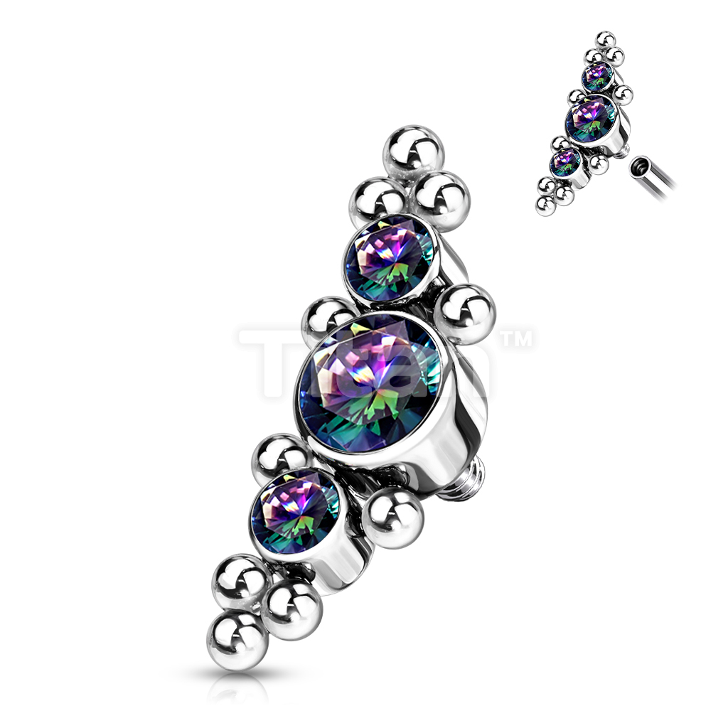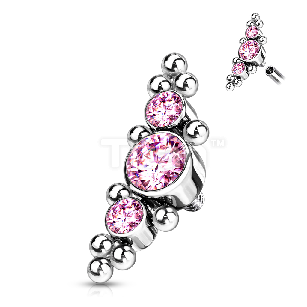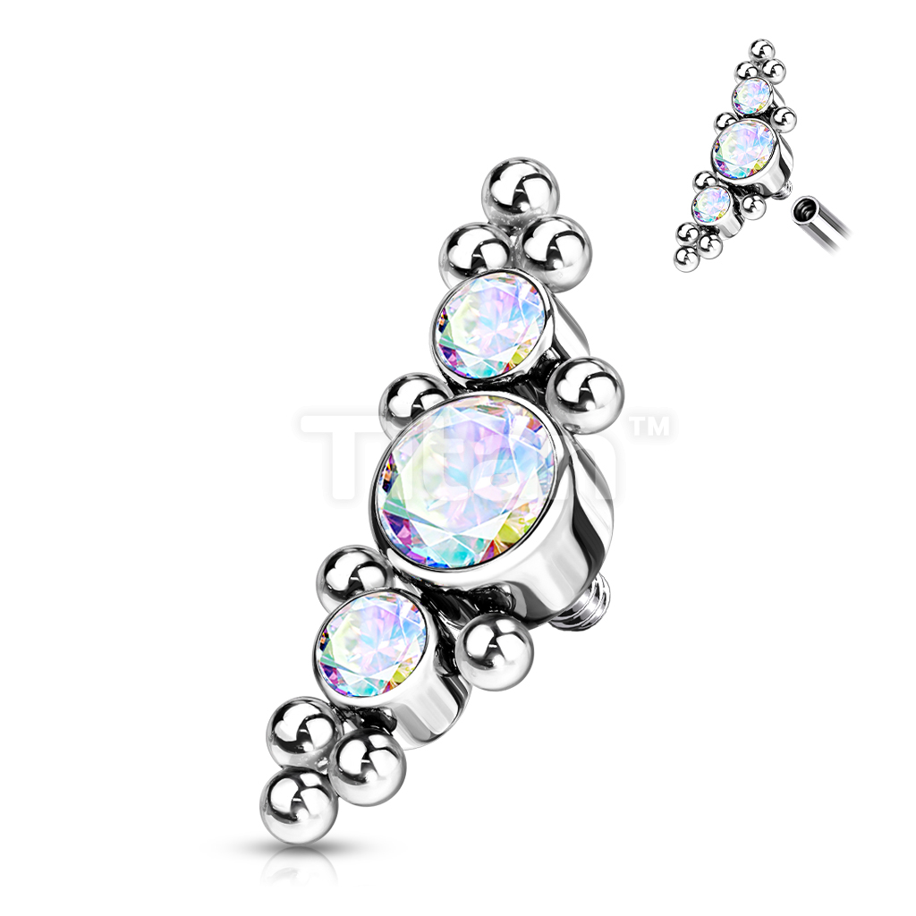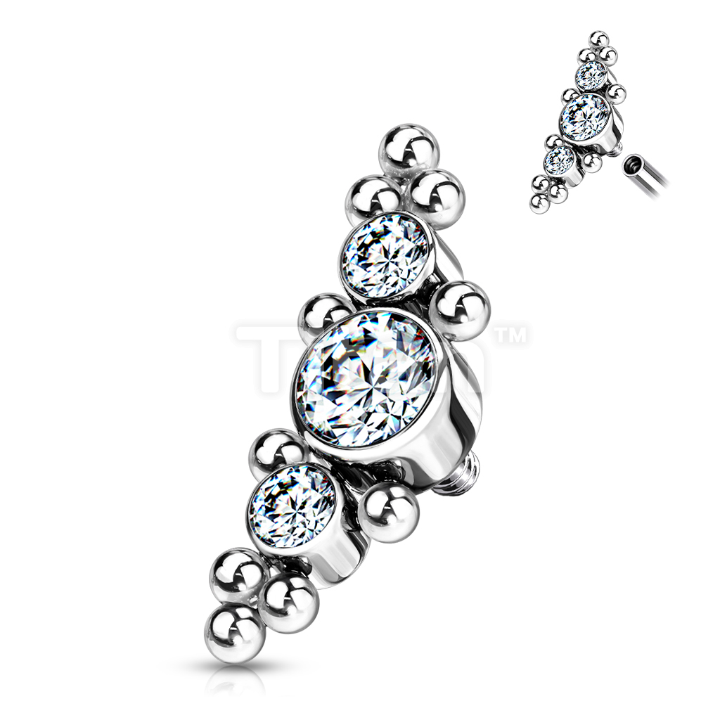 Implant Grade Titanium Internally Threaded Top With 3 Bezel Set CZs and Ball Clusters