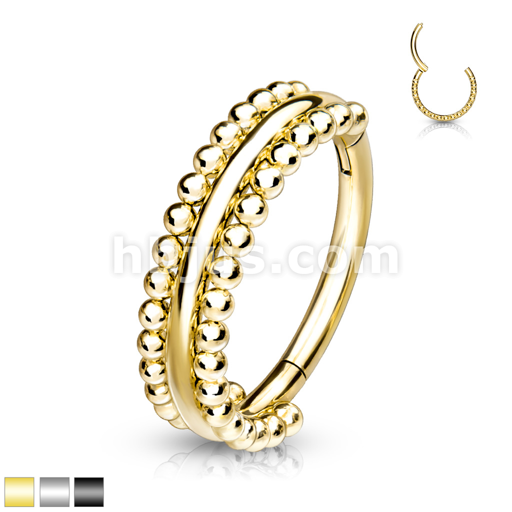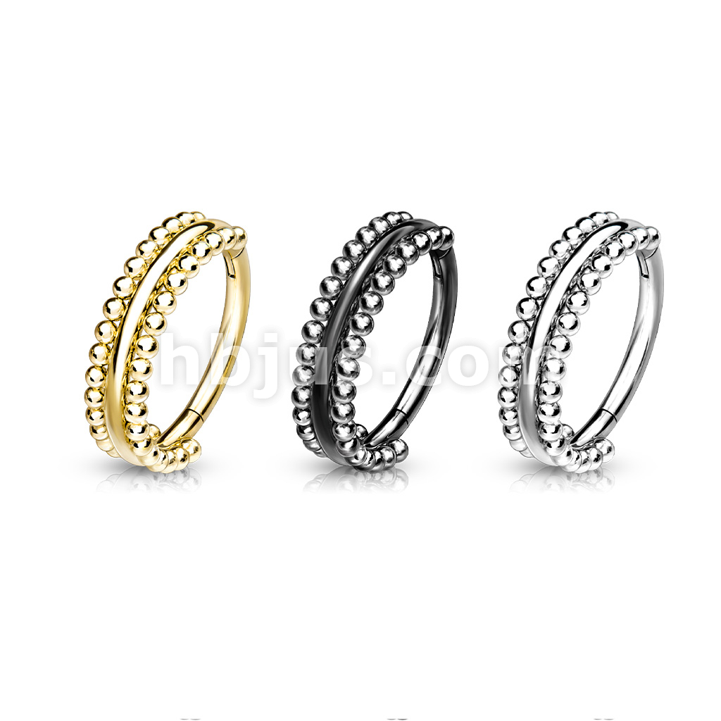 High Quality Precision All 316L Surgical Steel Hinged Segment Hoop Rings with Double-Sided Milgrain Beads