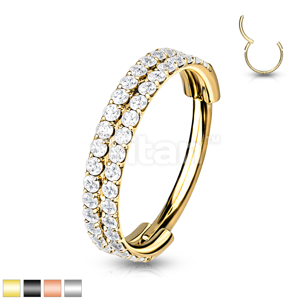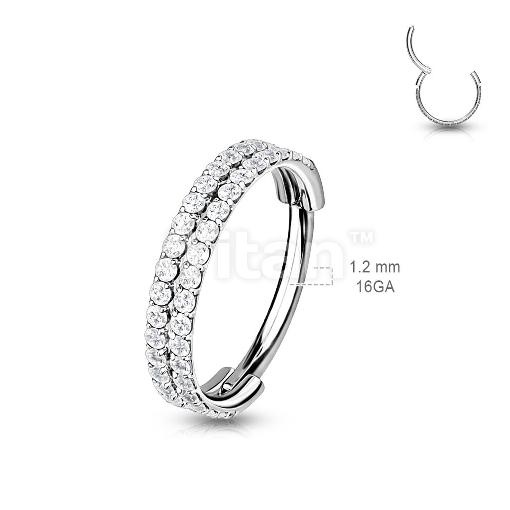 Implant Grade Titanium Hinged Segment Hoop Ring With Double Lined Outward Facing CZs