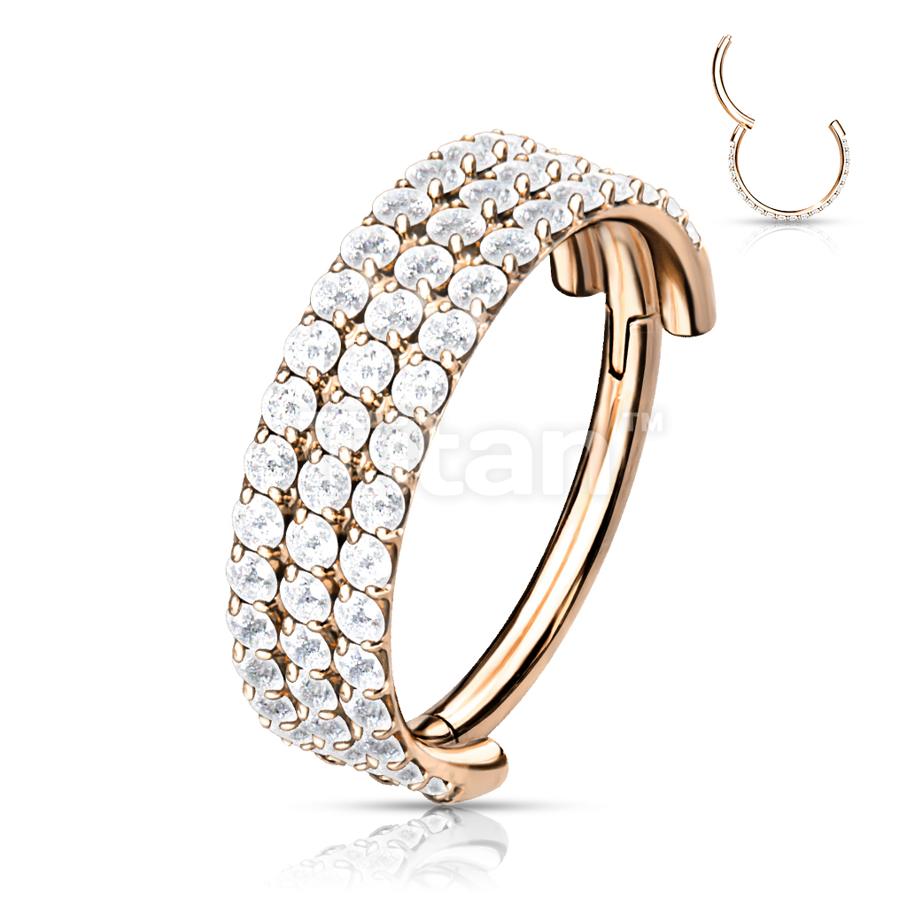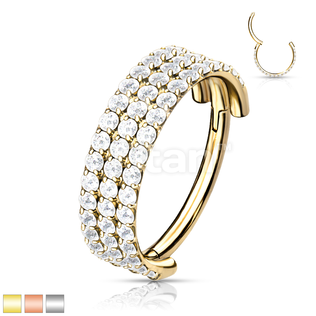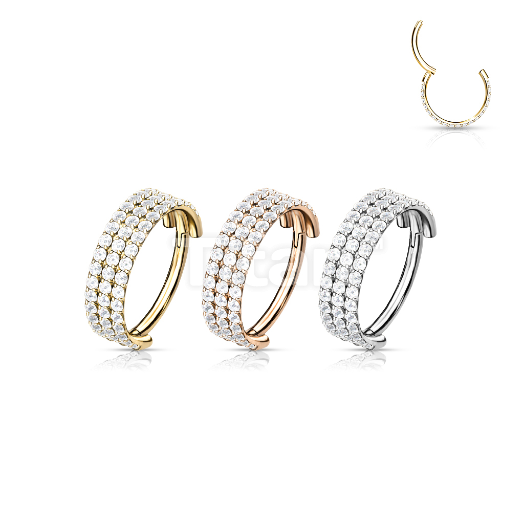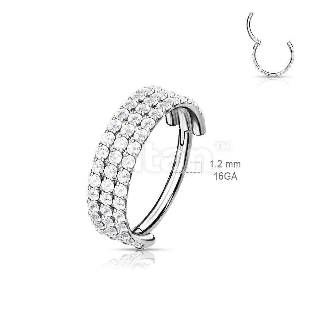 Implant Grade Titanium Hinged Segment Hoop Ring With Triple Lined Outward Facing CZs