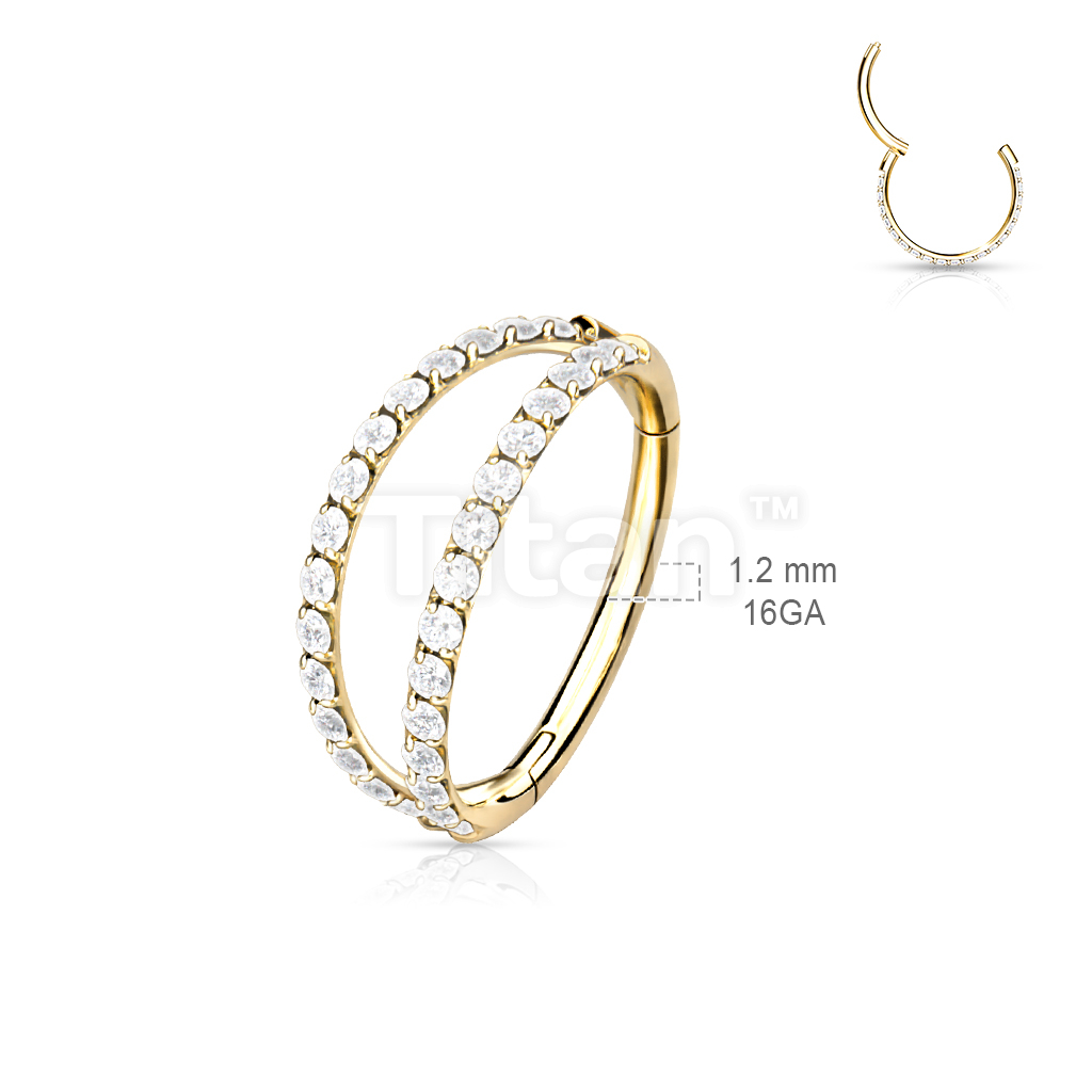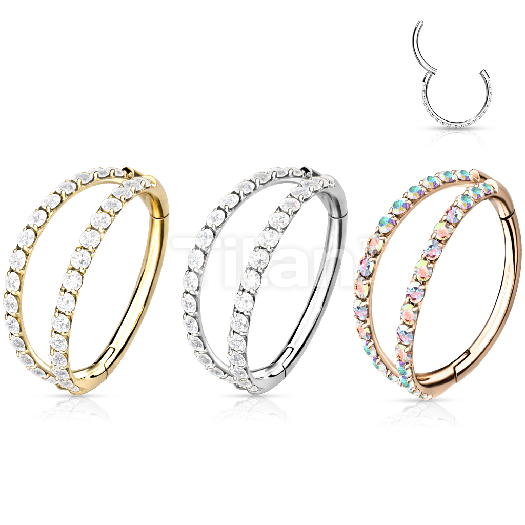 Implant Grade Titanium Hinged Segment Double Hoop Ring Lined With Outward Facing CZs