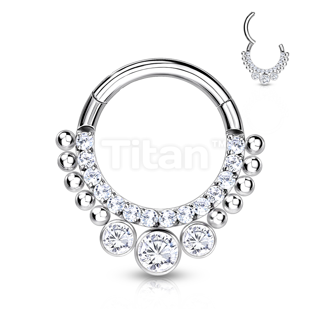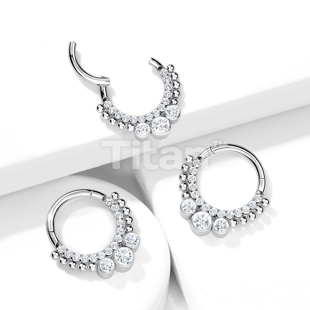 Implant Grade Titanium Hinged Segment Hoop Ring With CNC Set Pave CZ Lined Front and 3 Bezel Set CZs