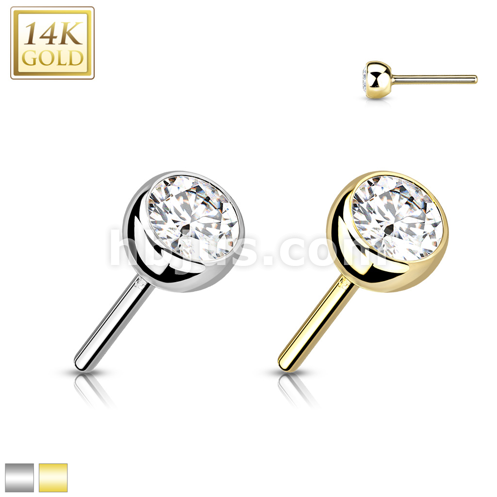 14K Gold CZ Bezel Set Threadless Push In Top