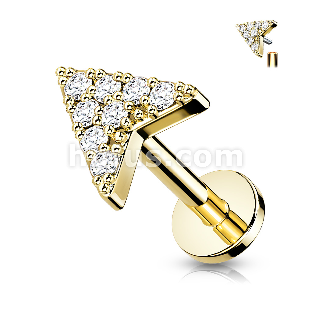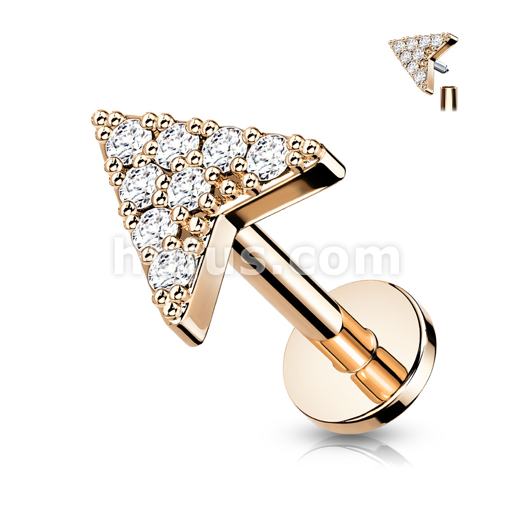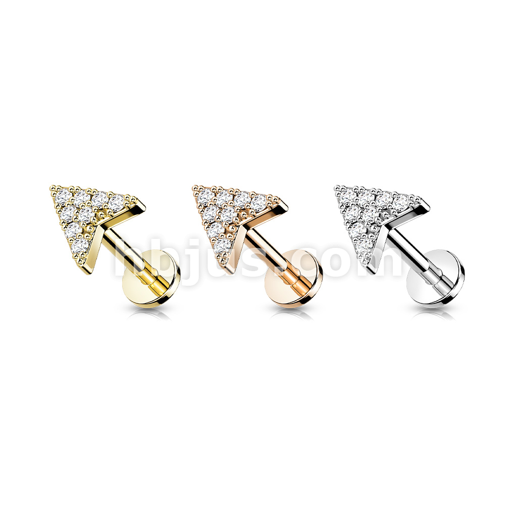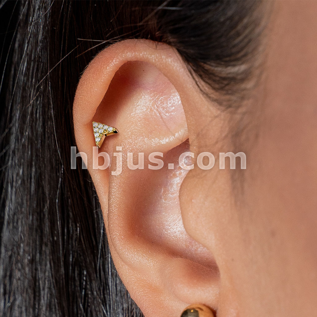 Round CZ Paved Chevron Arrow Top on Internally Threaded 316L Surgical Steel Flat Back Studs for Cartilage, Labret, and More