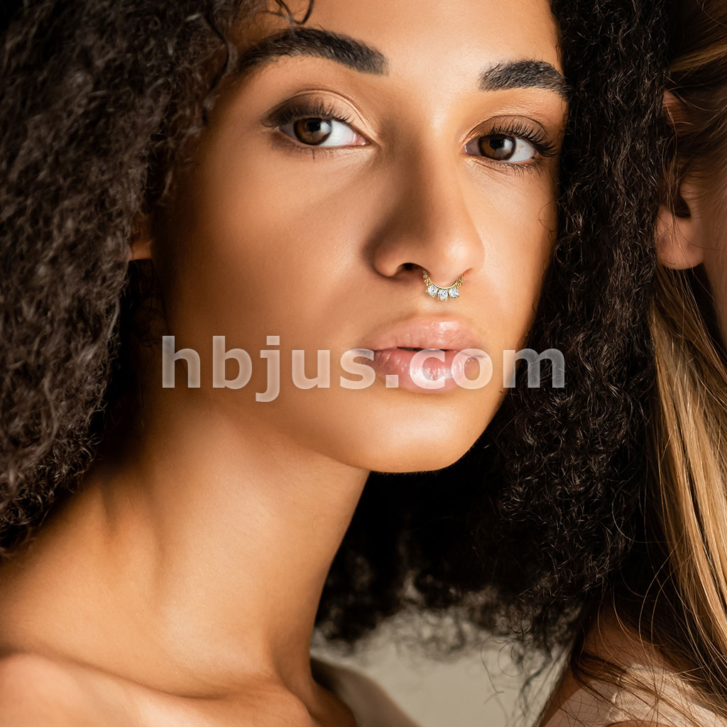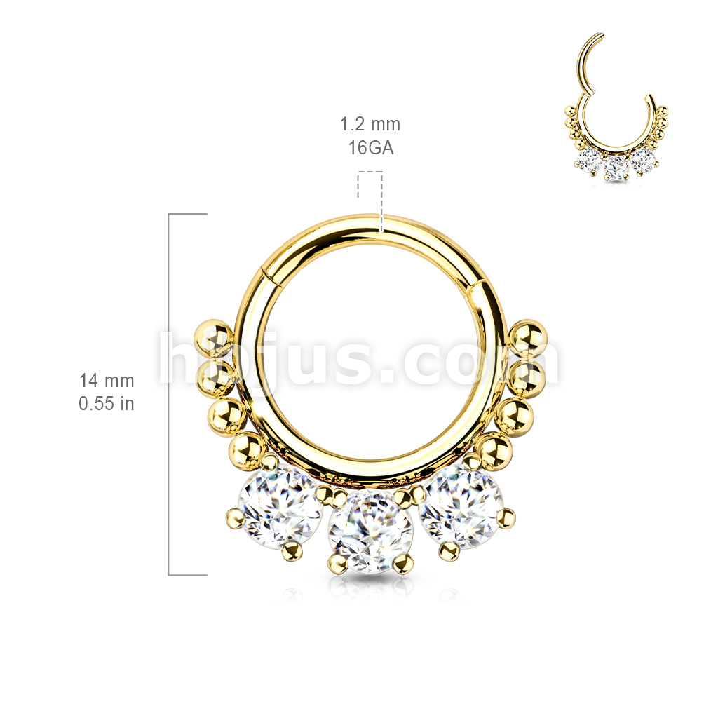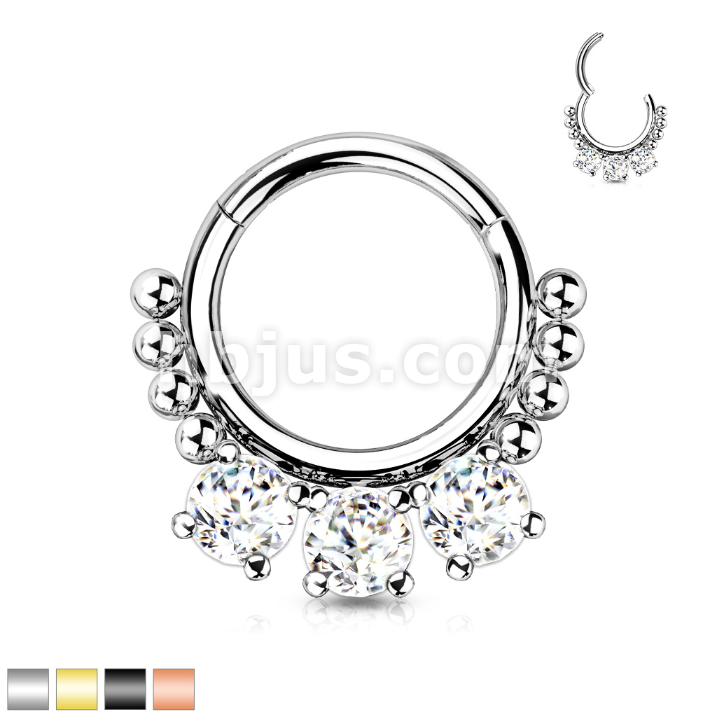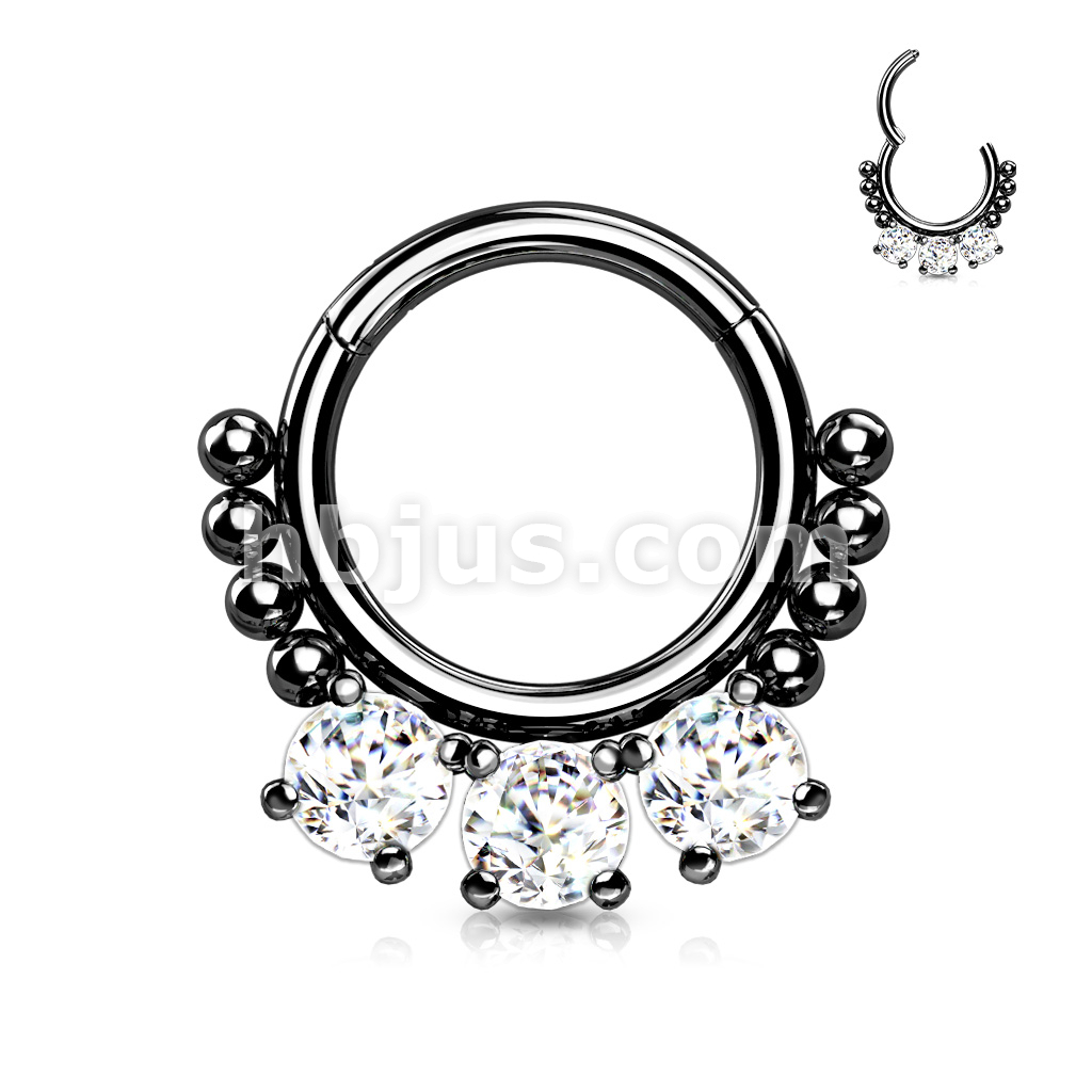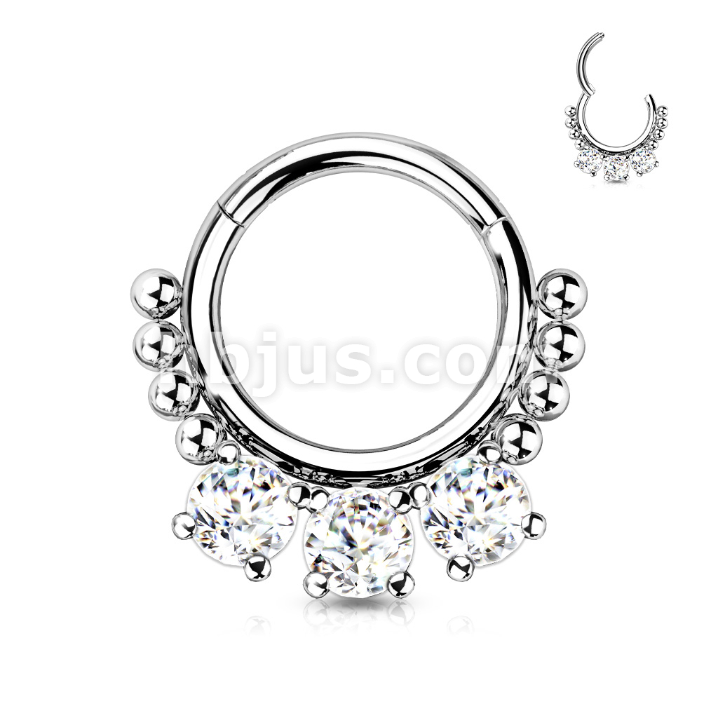 High Quality Precision All 316L Surgical Steel Hinged Segment Hoop Ring with 3 Prong Set Round CZ and beads