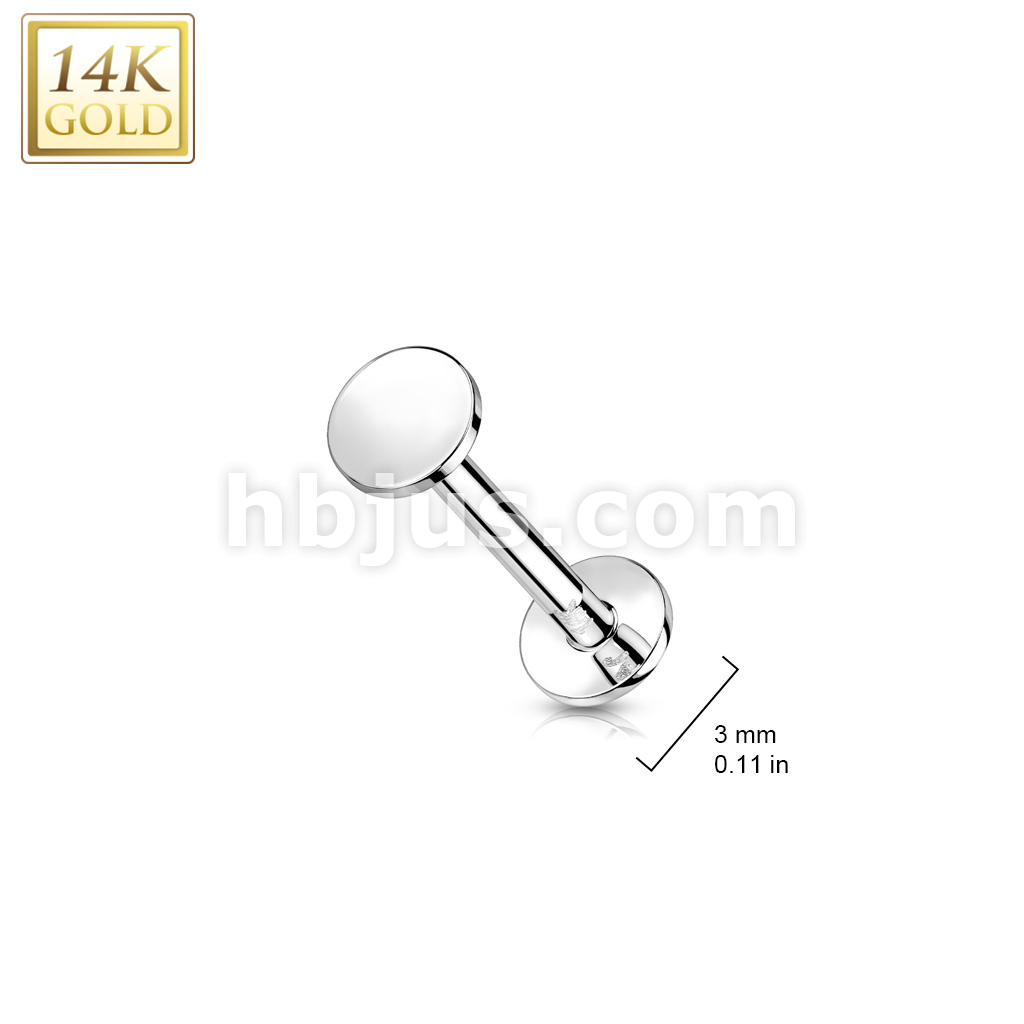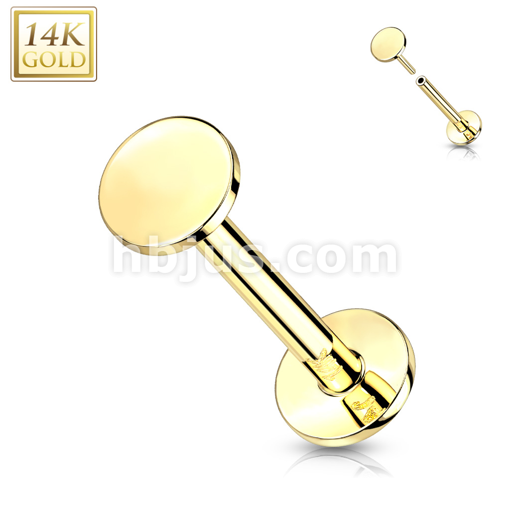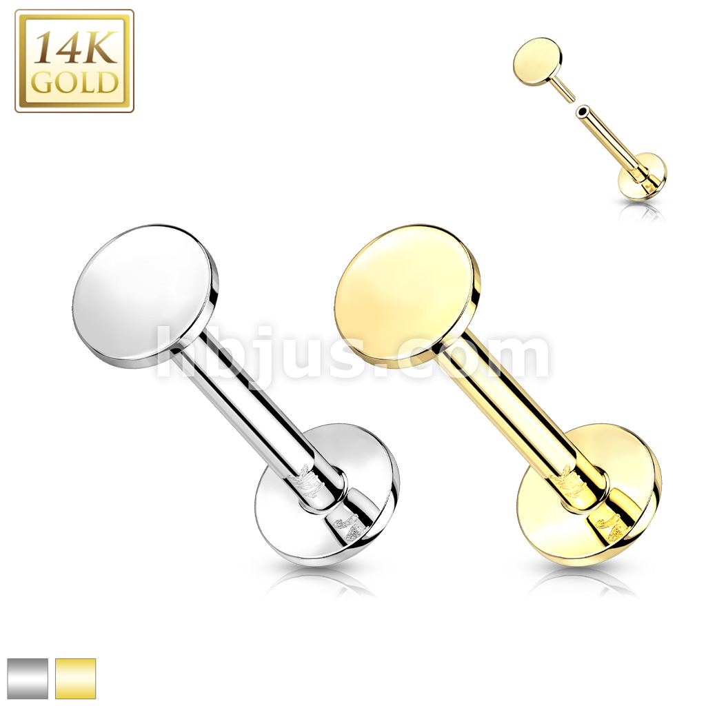 14K Gold Threadless Push-In Labret With Flat Round Top