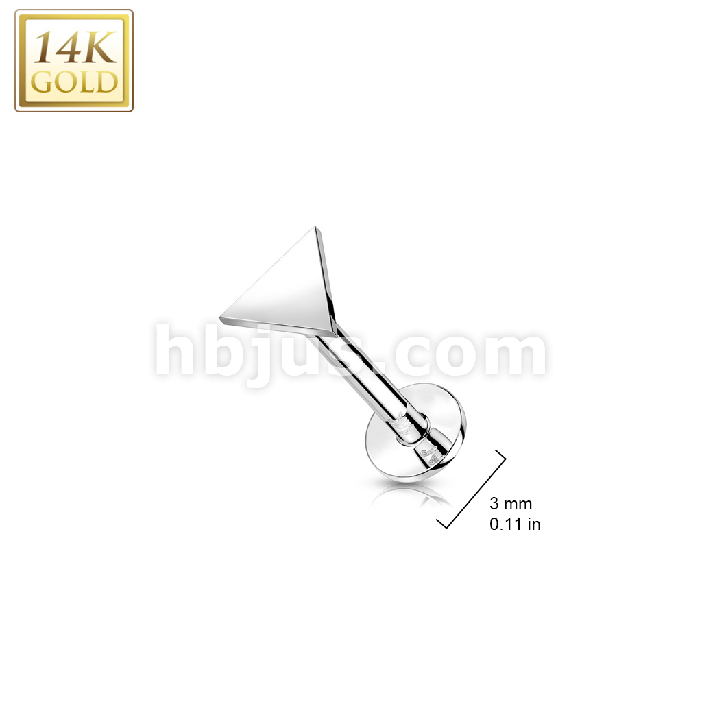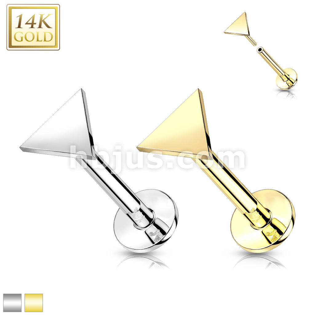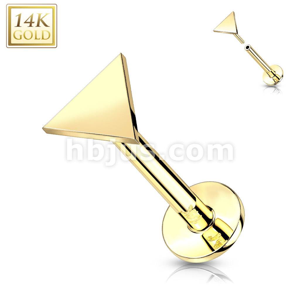 14K Gold Threadless Push-In Labret With Flat Triangle Top