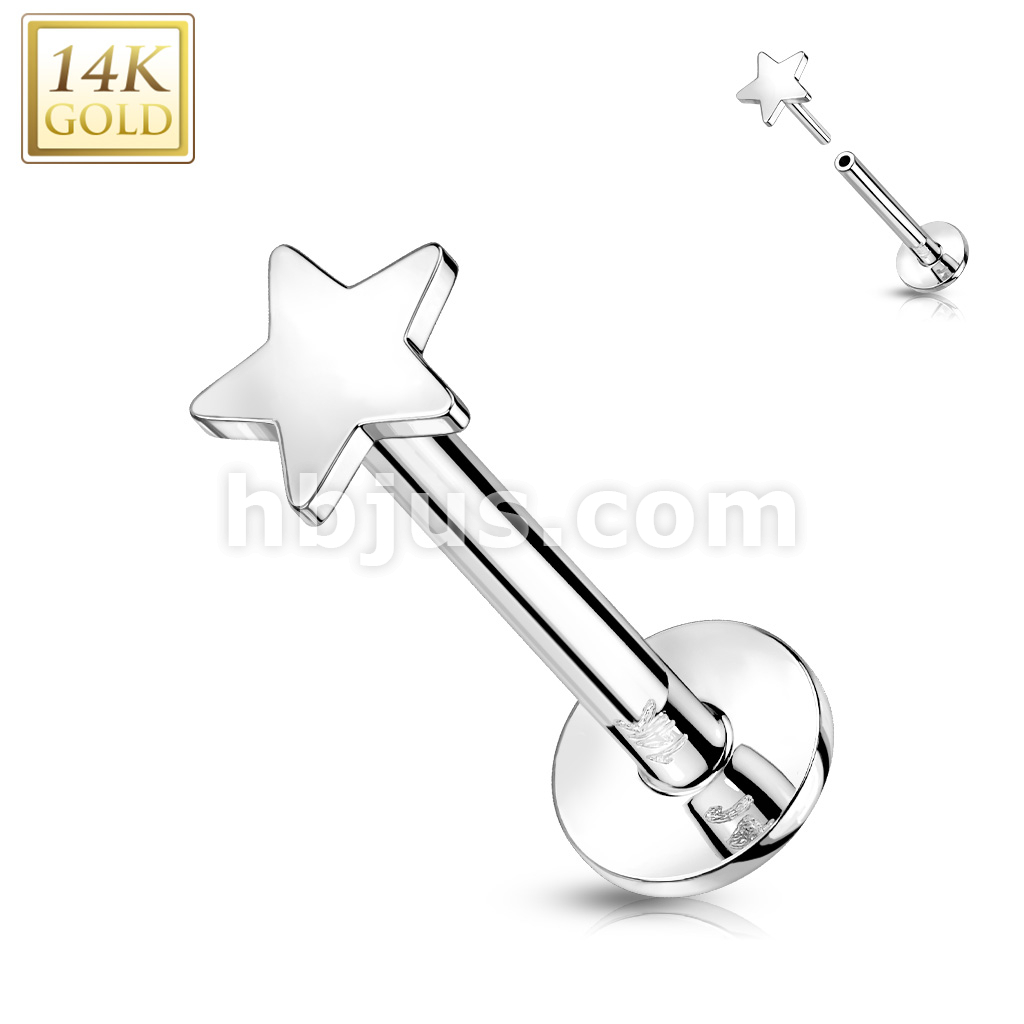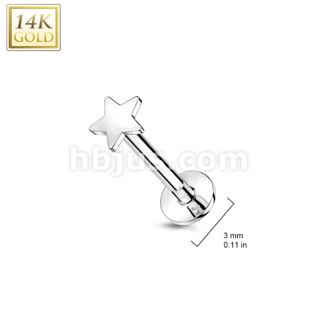 14K Gold Threadless Push-In Labret With Flat Star Top