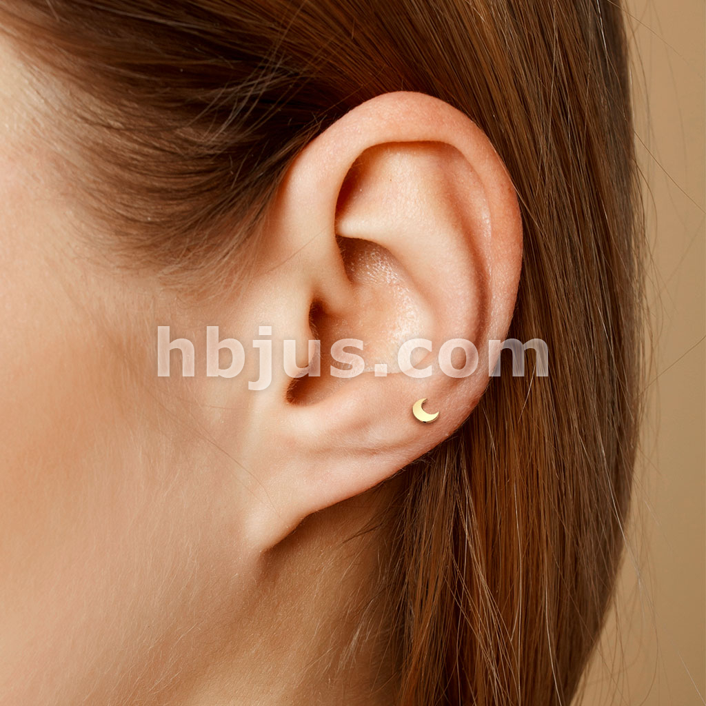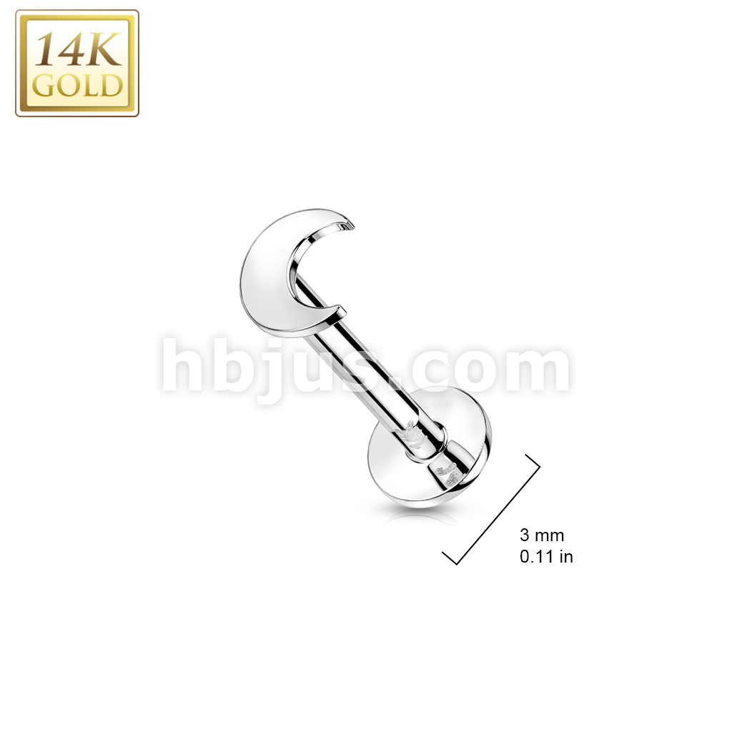 14K Gold Threadless Push-In Labret With Flat Crescent Moon Top