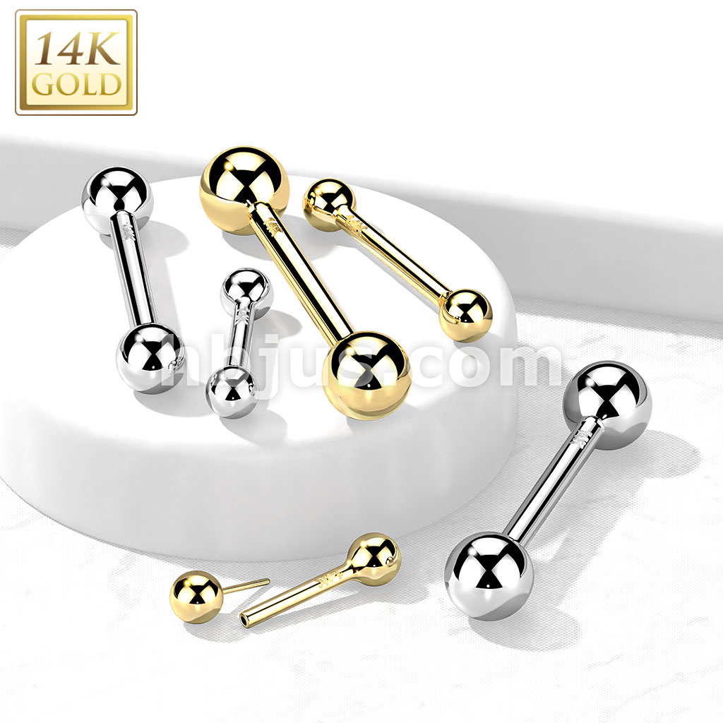 14K Gold Threadless Push-In Barbells For Cartilage, Tongue, Nipple and More