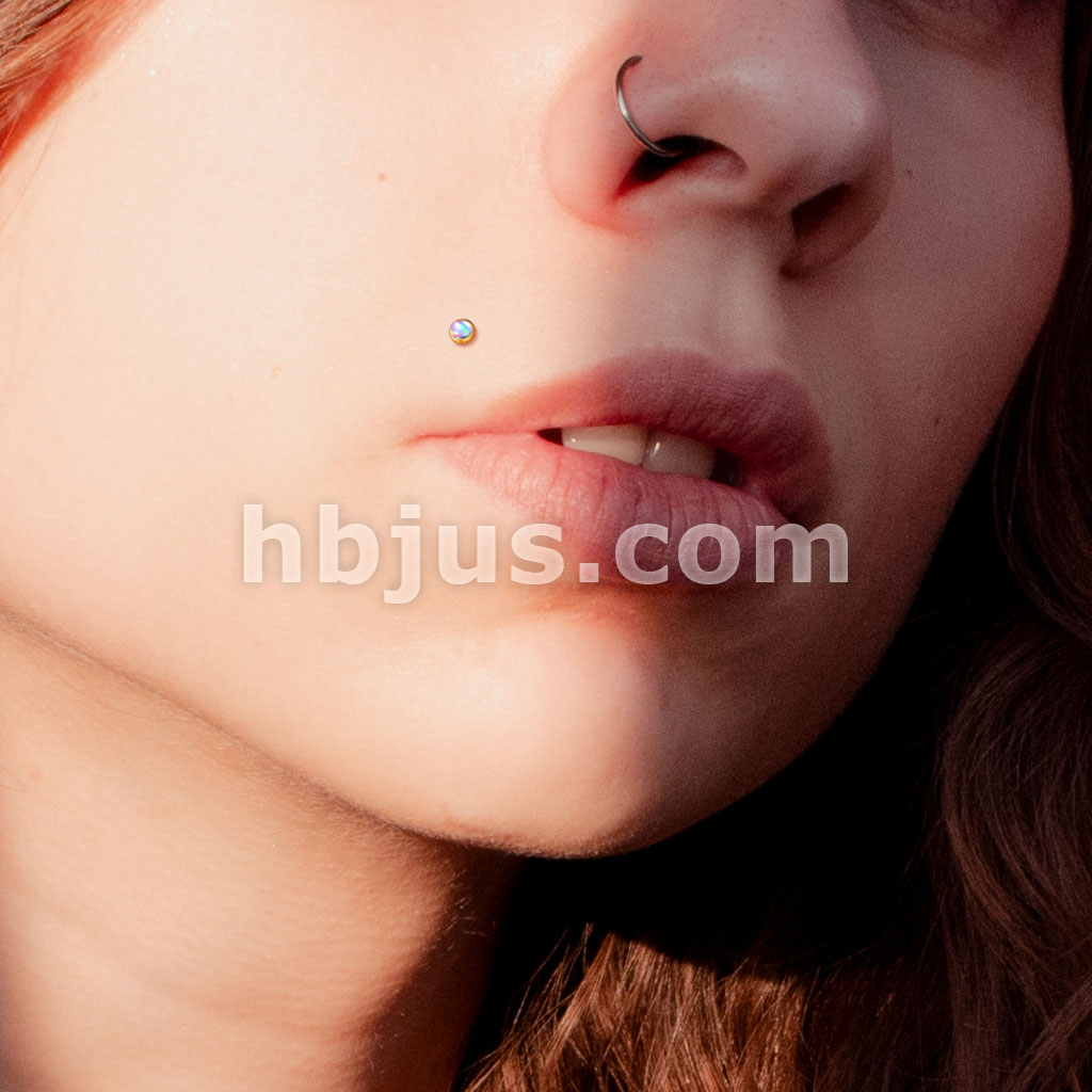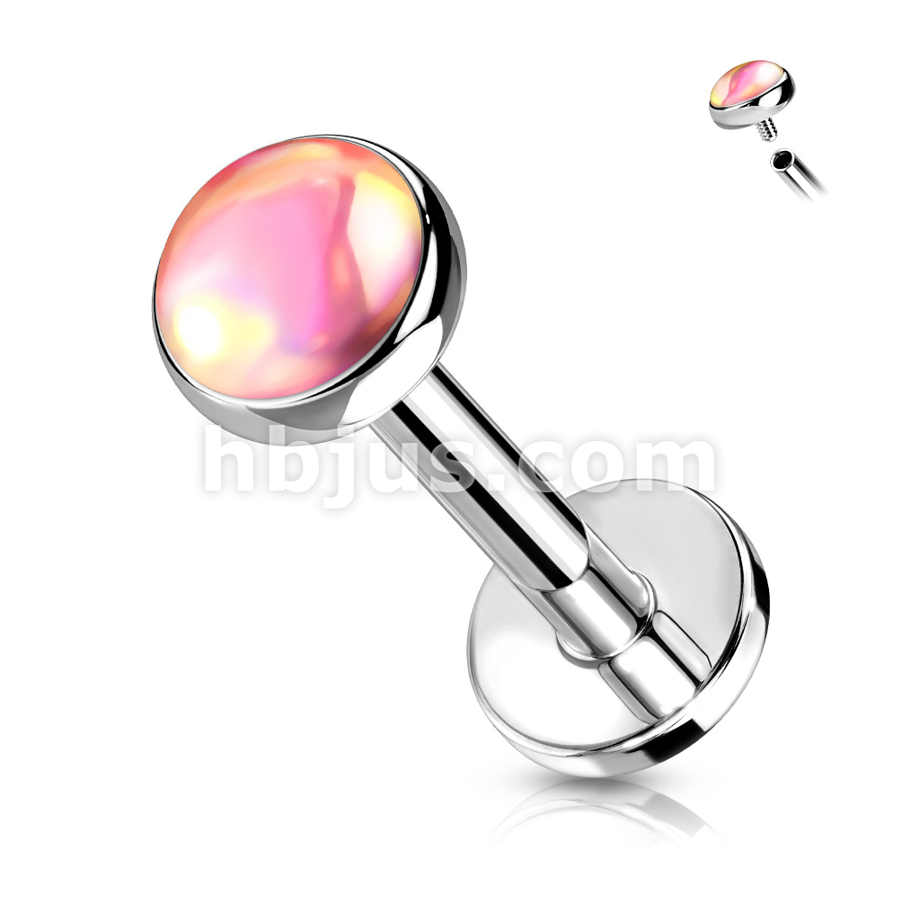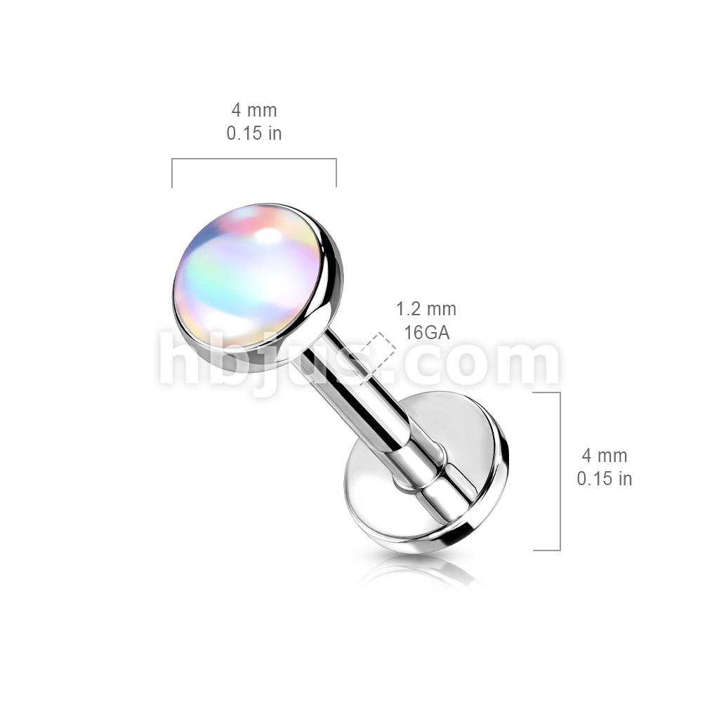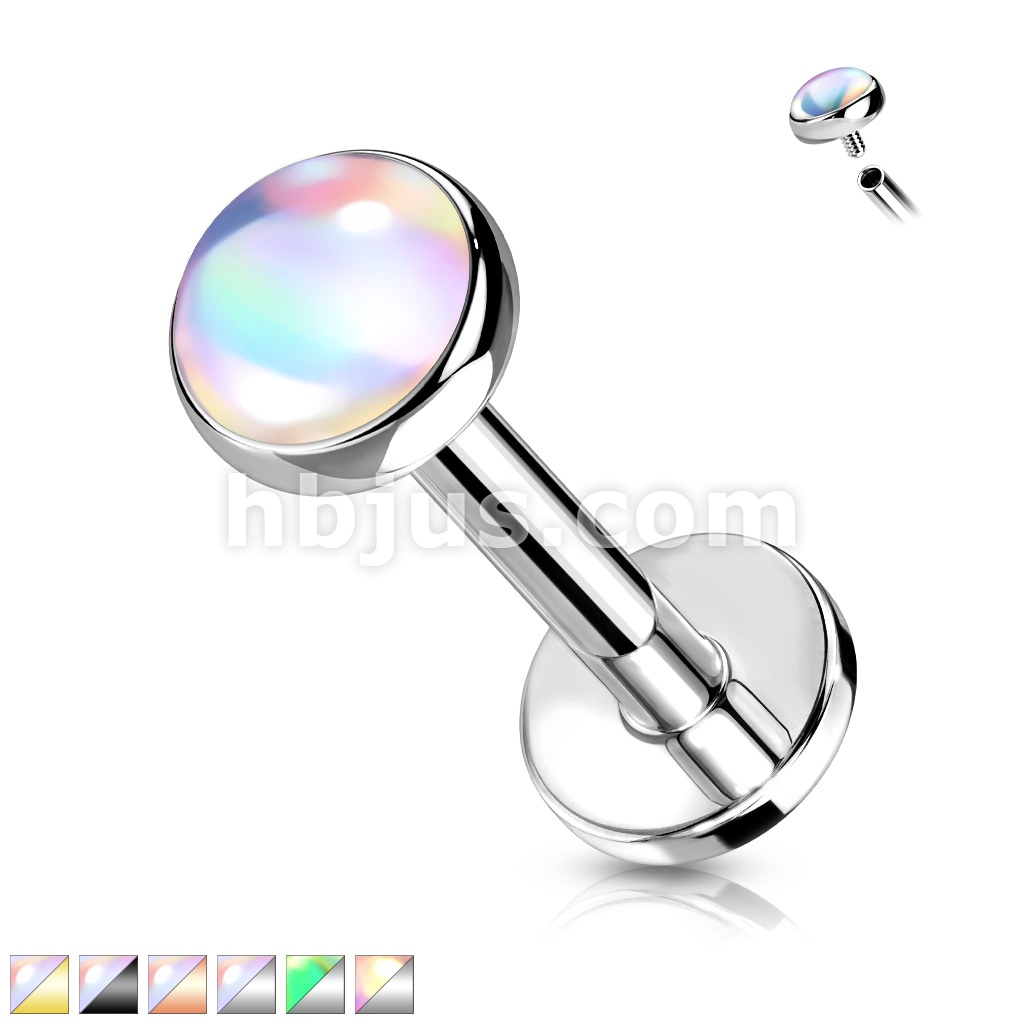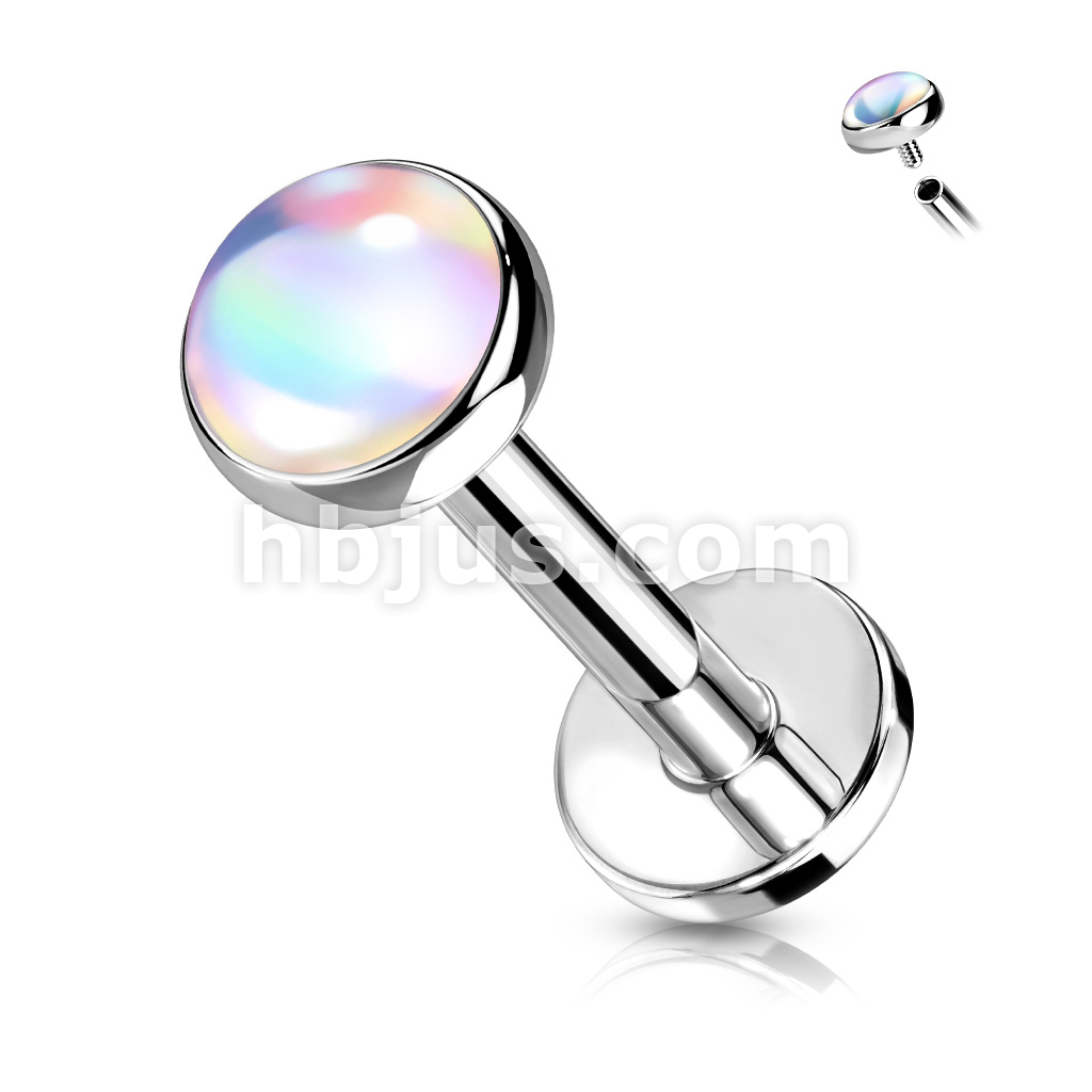 Iridescent Stone Top on Internally Threaded 316L Surgical Steel Flat Back Studs for Labret, Monroe, Cartilage and More