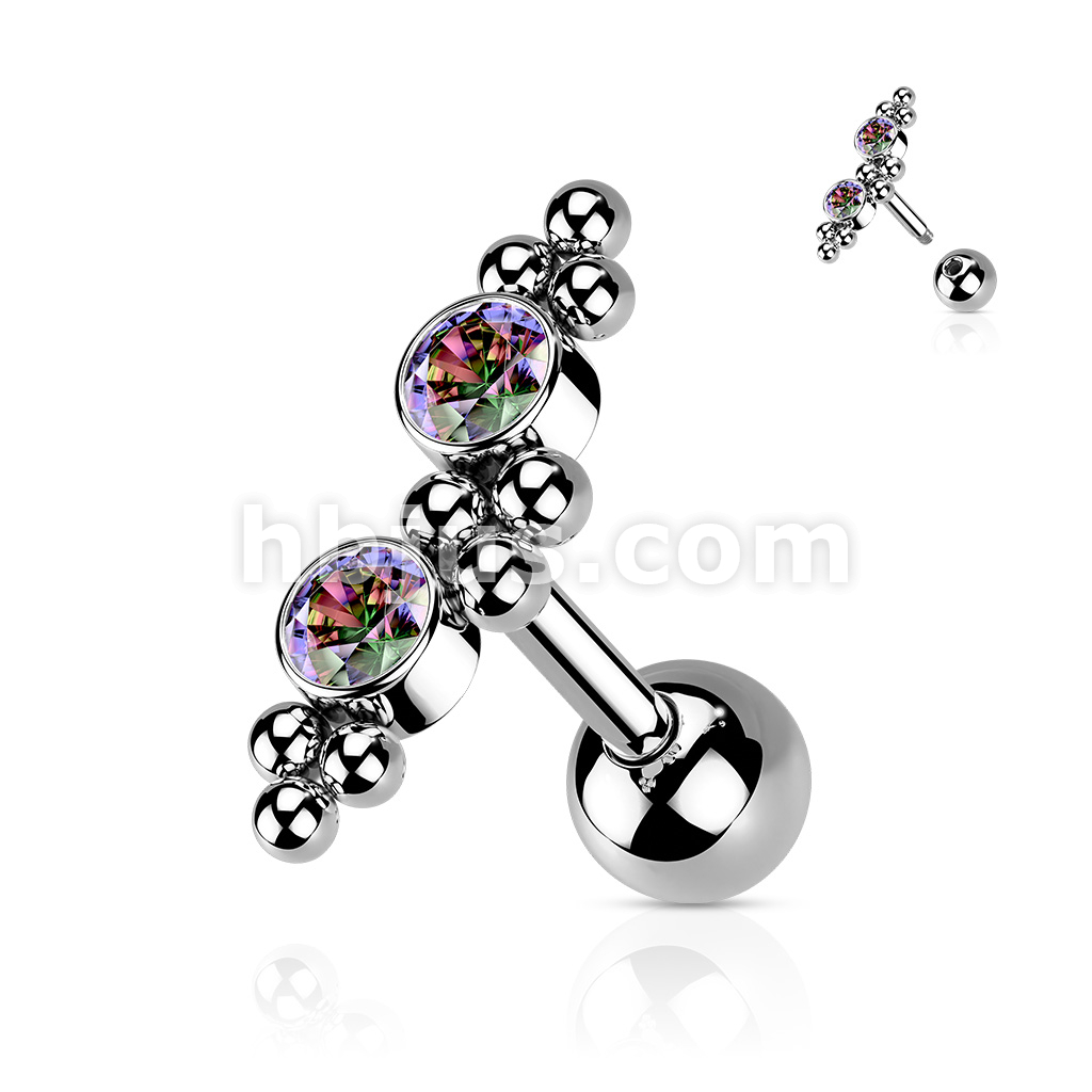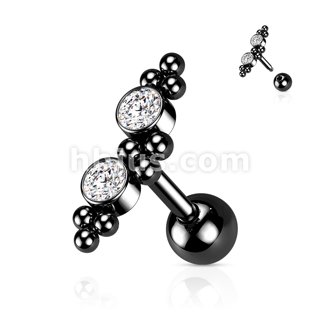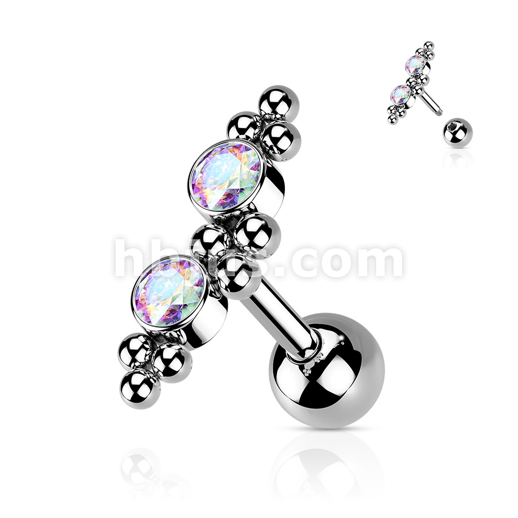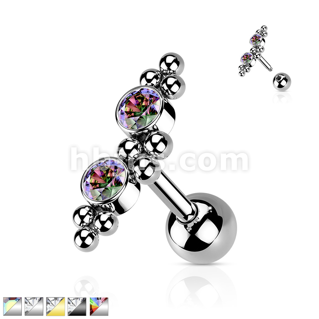 316L Surgical Steel Cartilage Barbell with 2 CZ and Ball Clusters