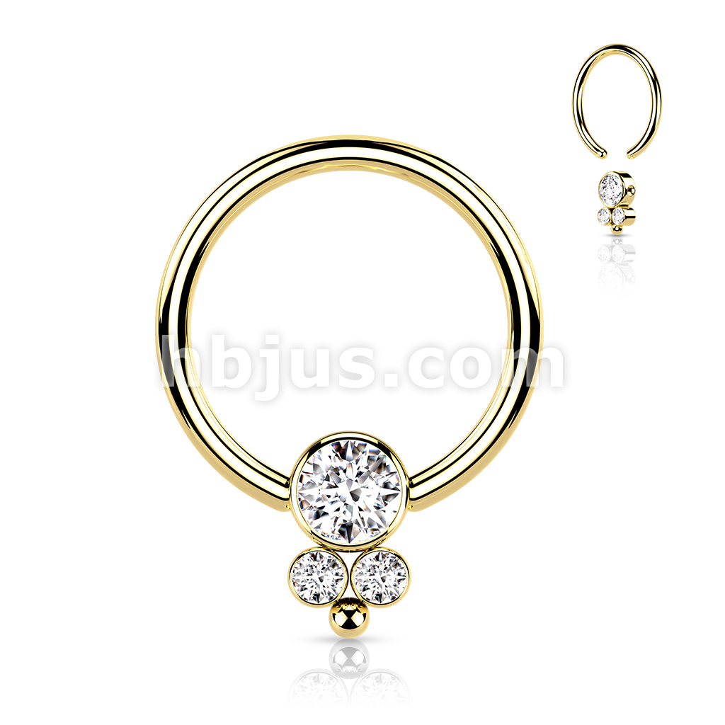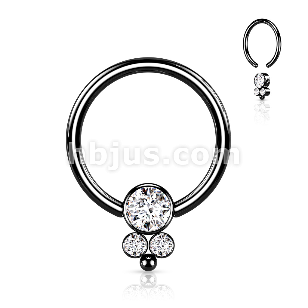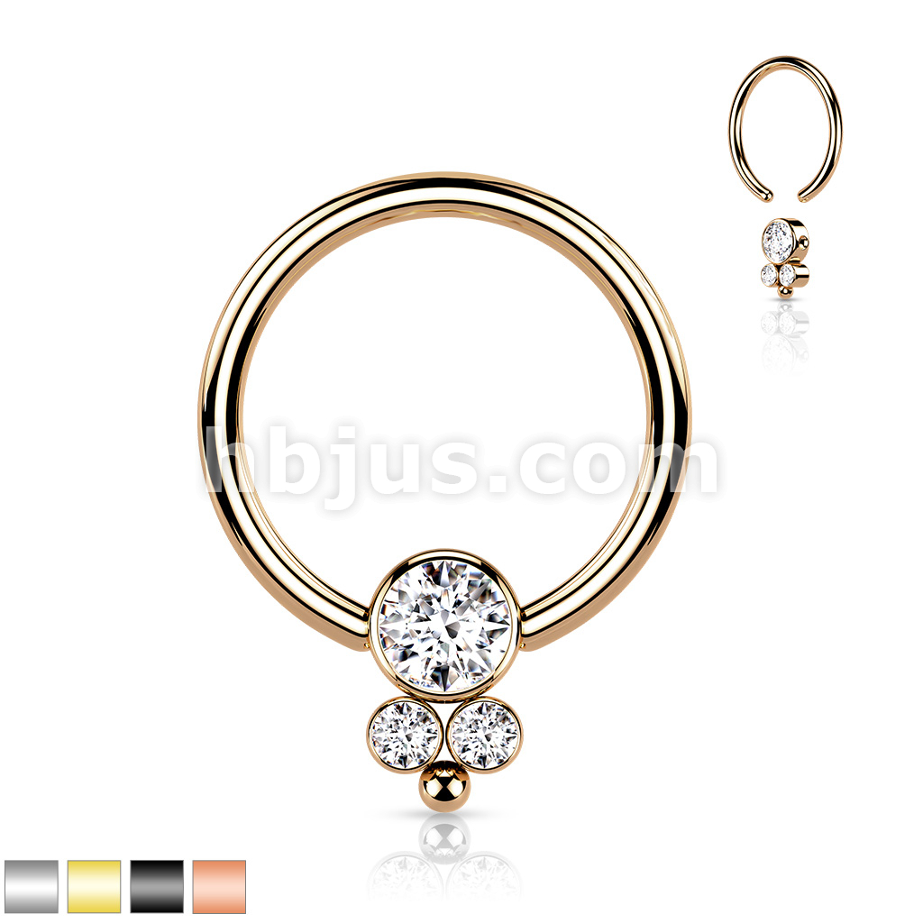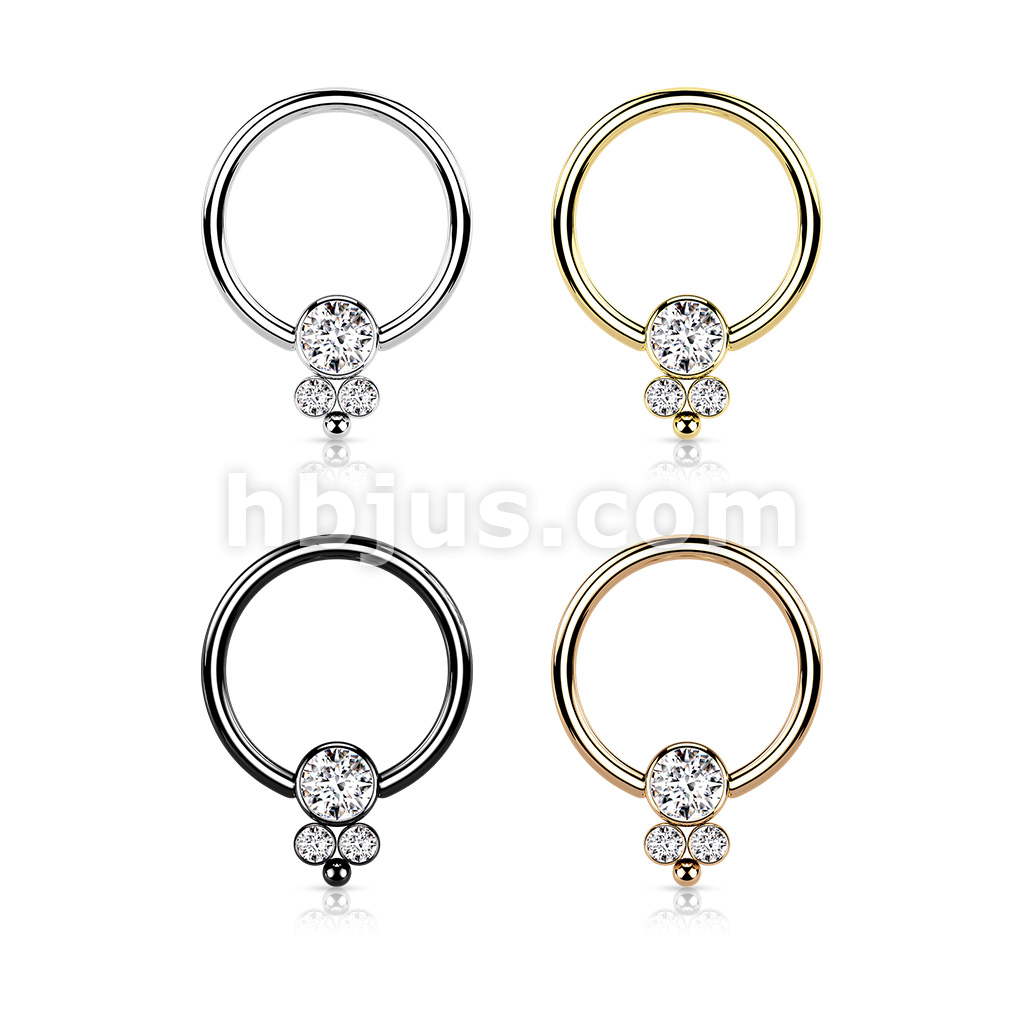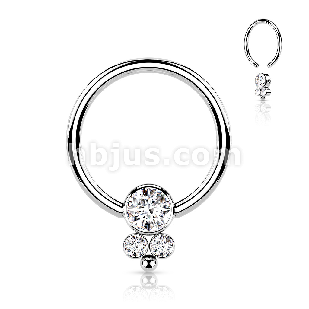 3 CZ Cluster Round Flat Ball 316L Surgical Steel Captive Bead Ring
