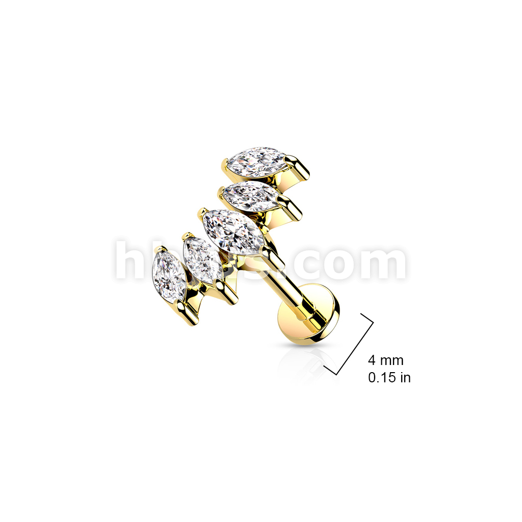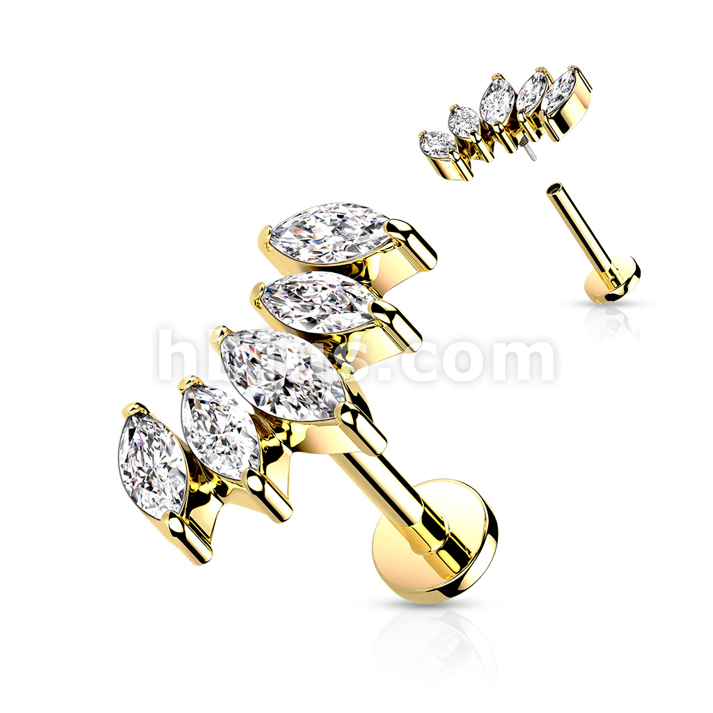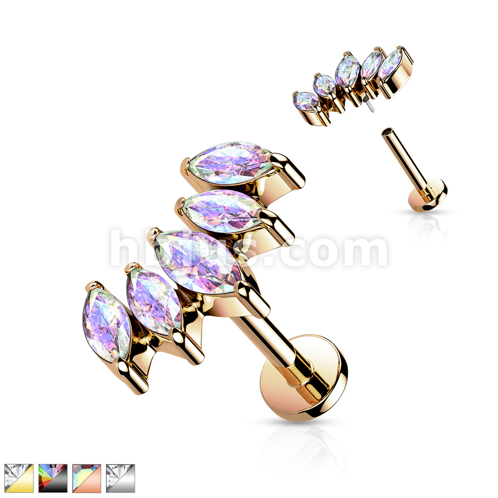 5 Marquise CZ Fan Set Curved Top With Internally Threaded All 316L Surgical Steel Flat Back Studs With Extended Threading for Labret, Monroe, Cartilage and More