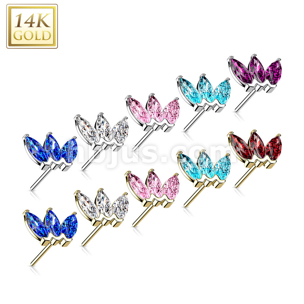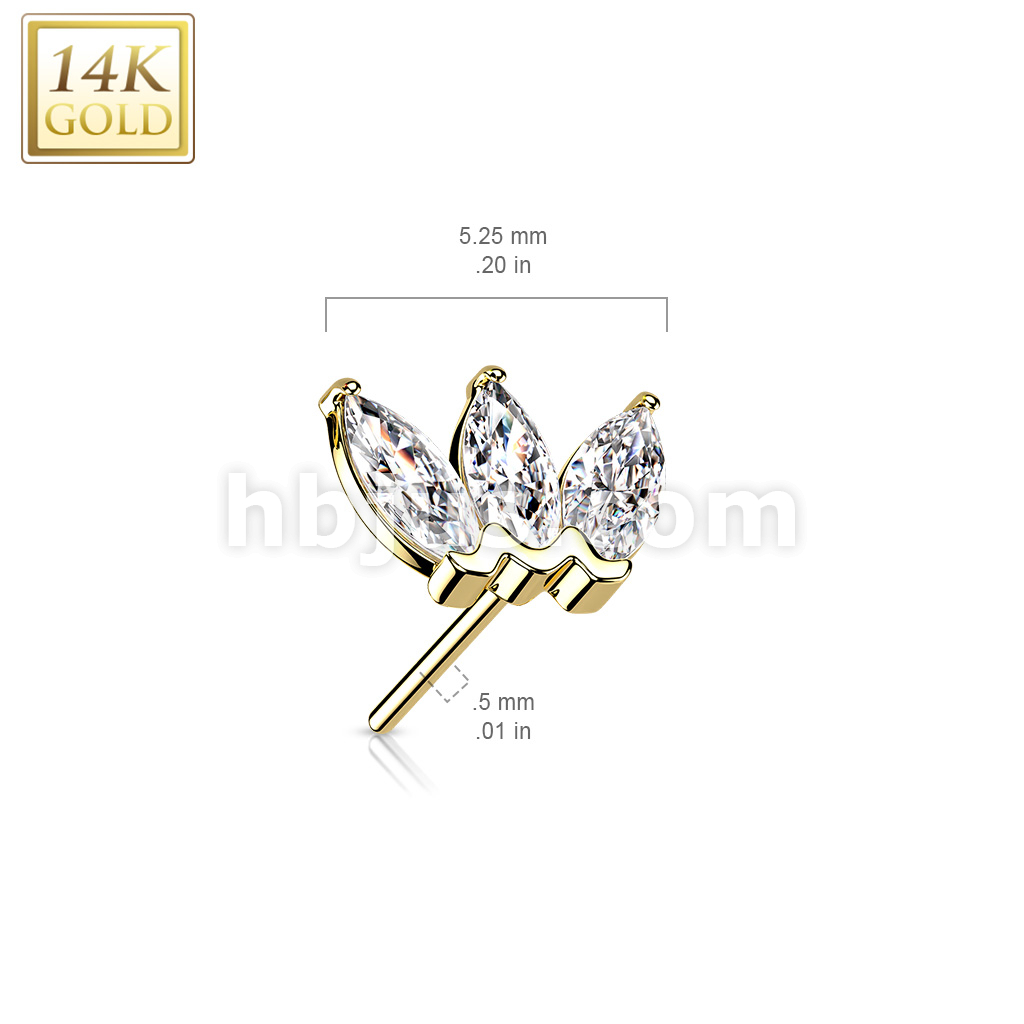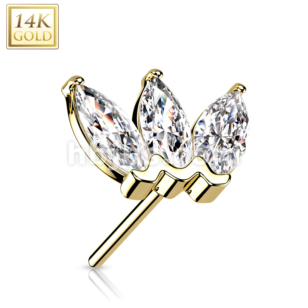 14K Gold Threadless Push In Triple Marquise CZ Top