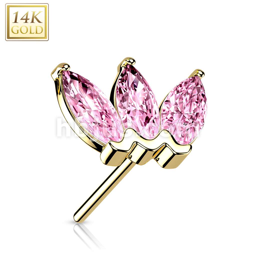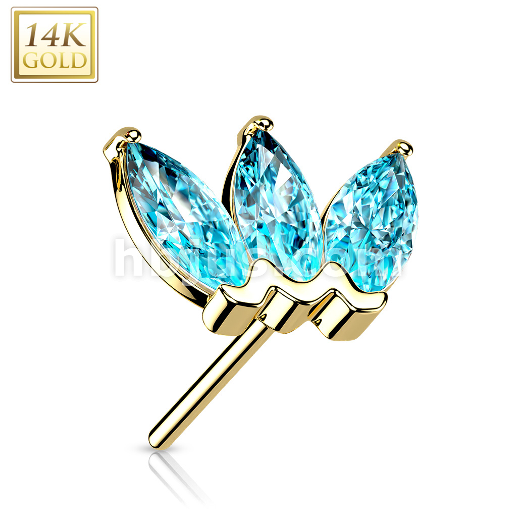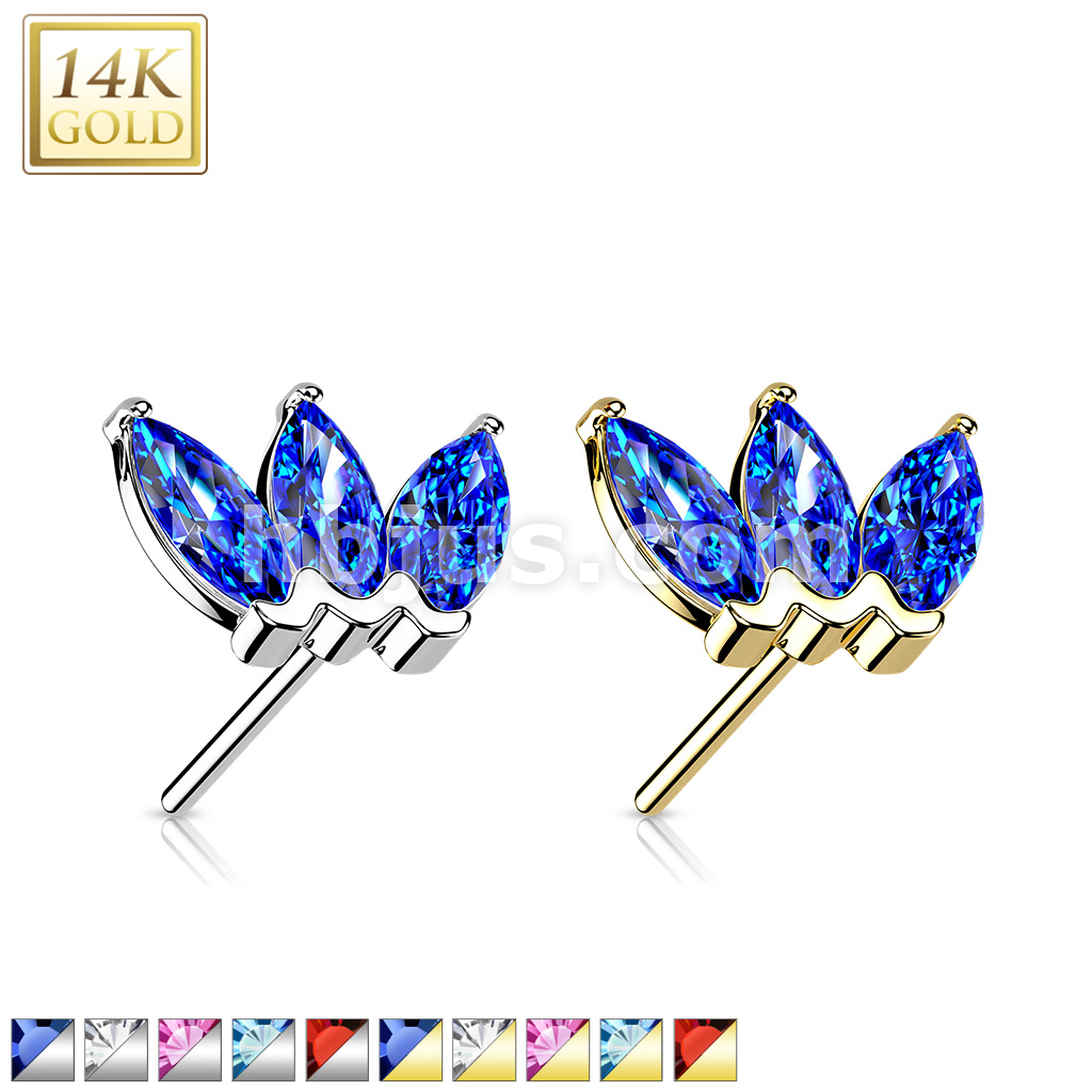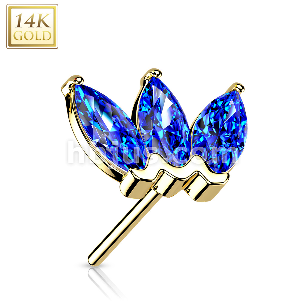 14K Gold Threadless Push In Triple Marquise CZ Top