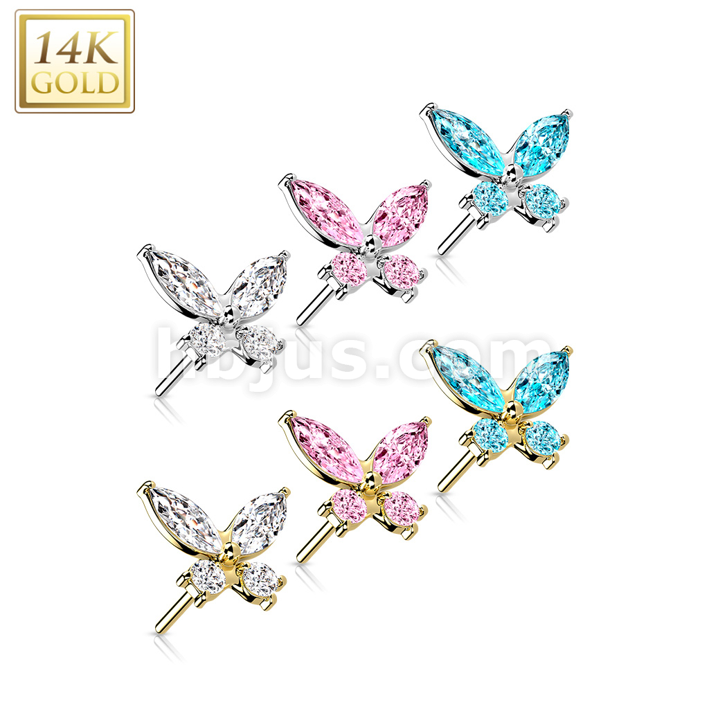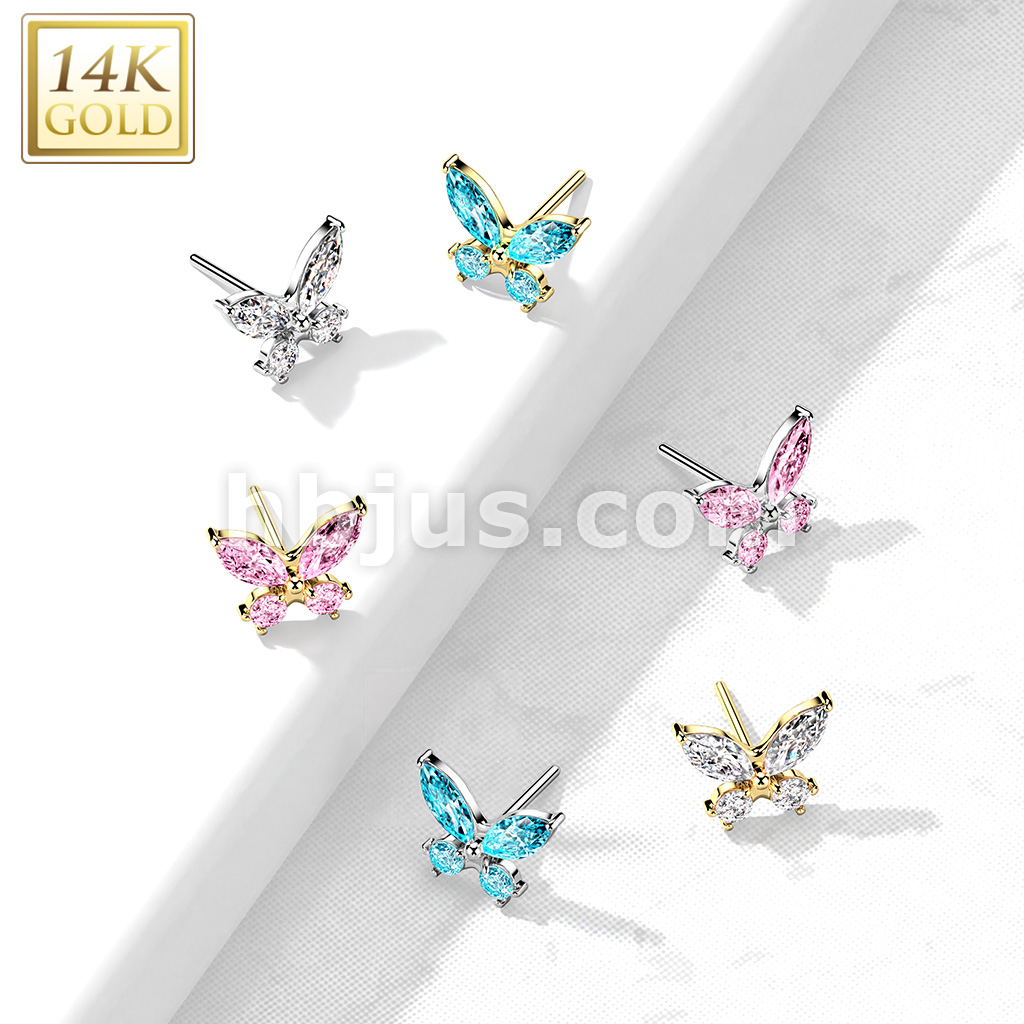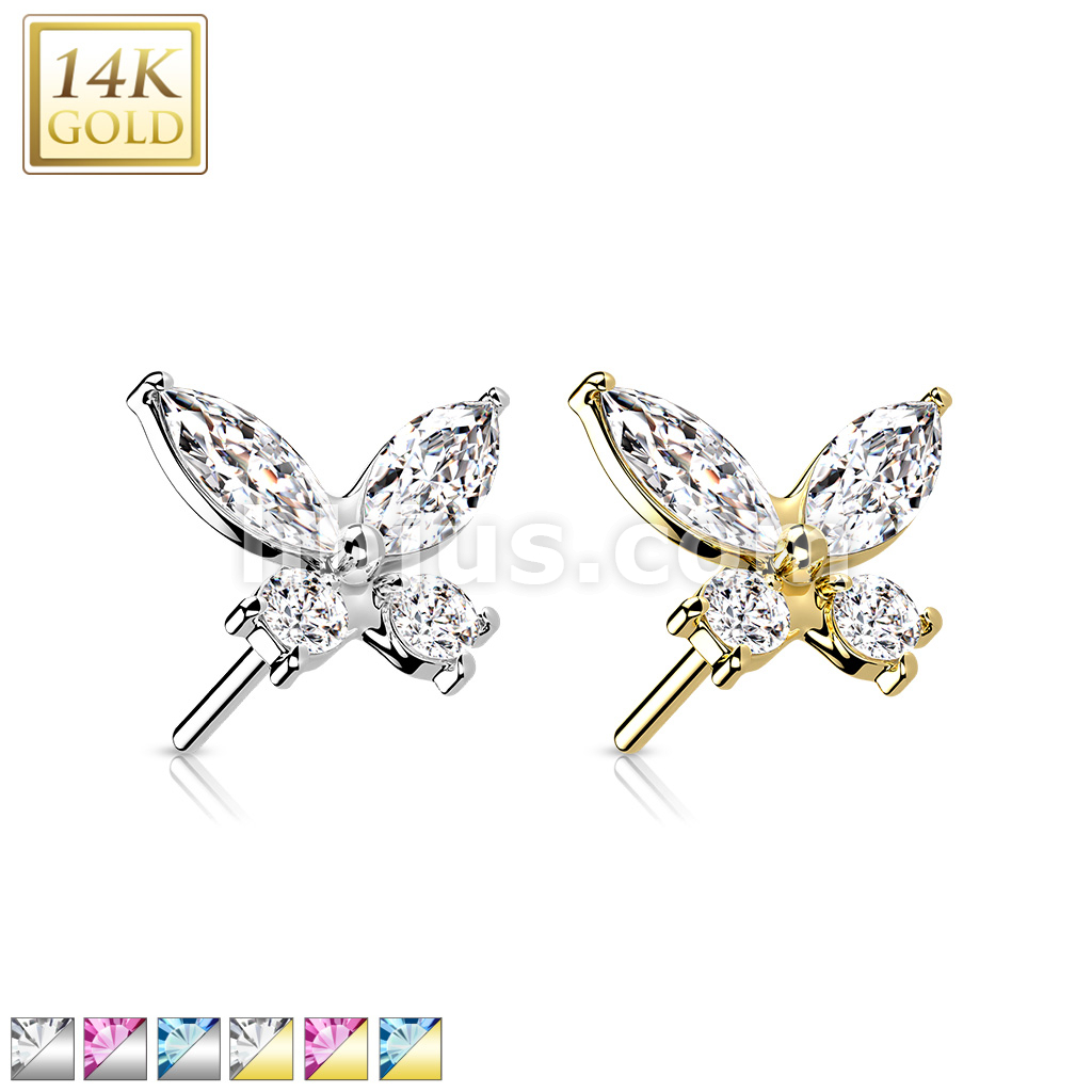 14K Gold Threadless Push In CZ Butterfly Top