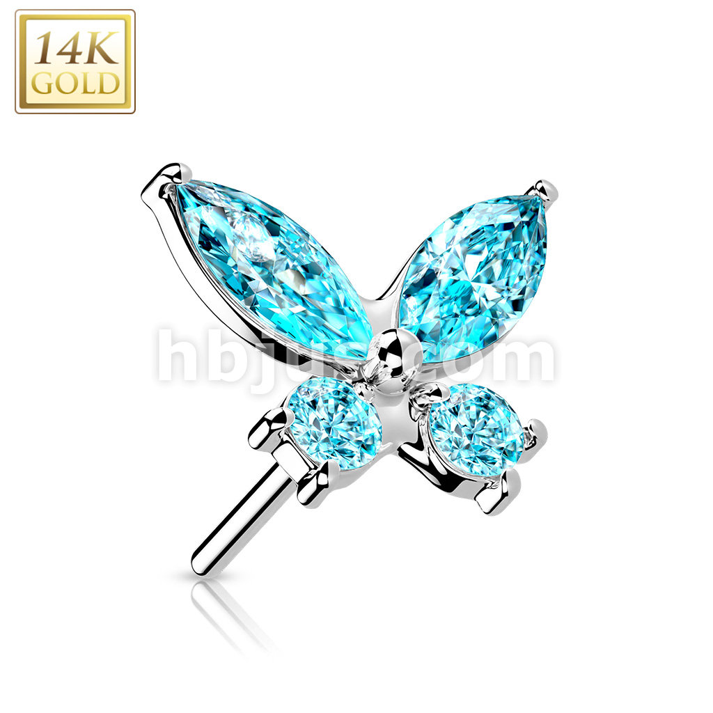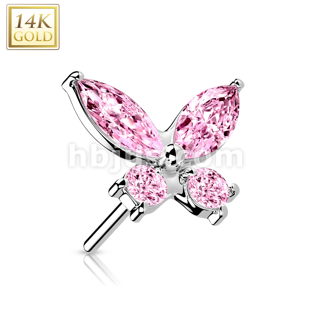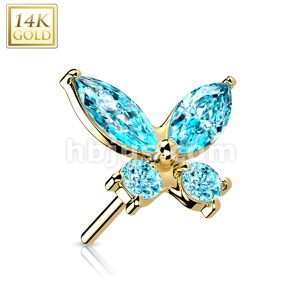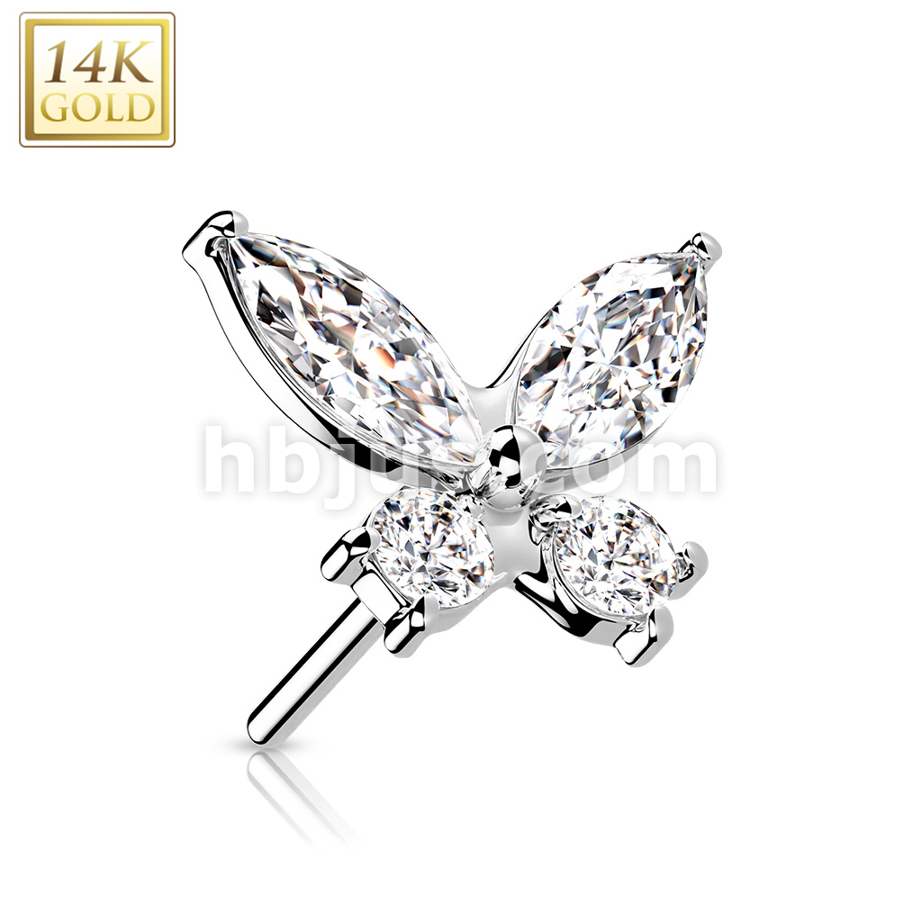 14K Gold Threadless Push In CZ Butterfly Top