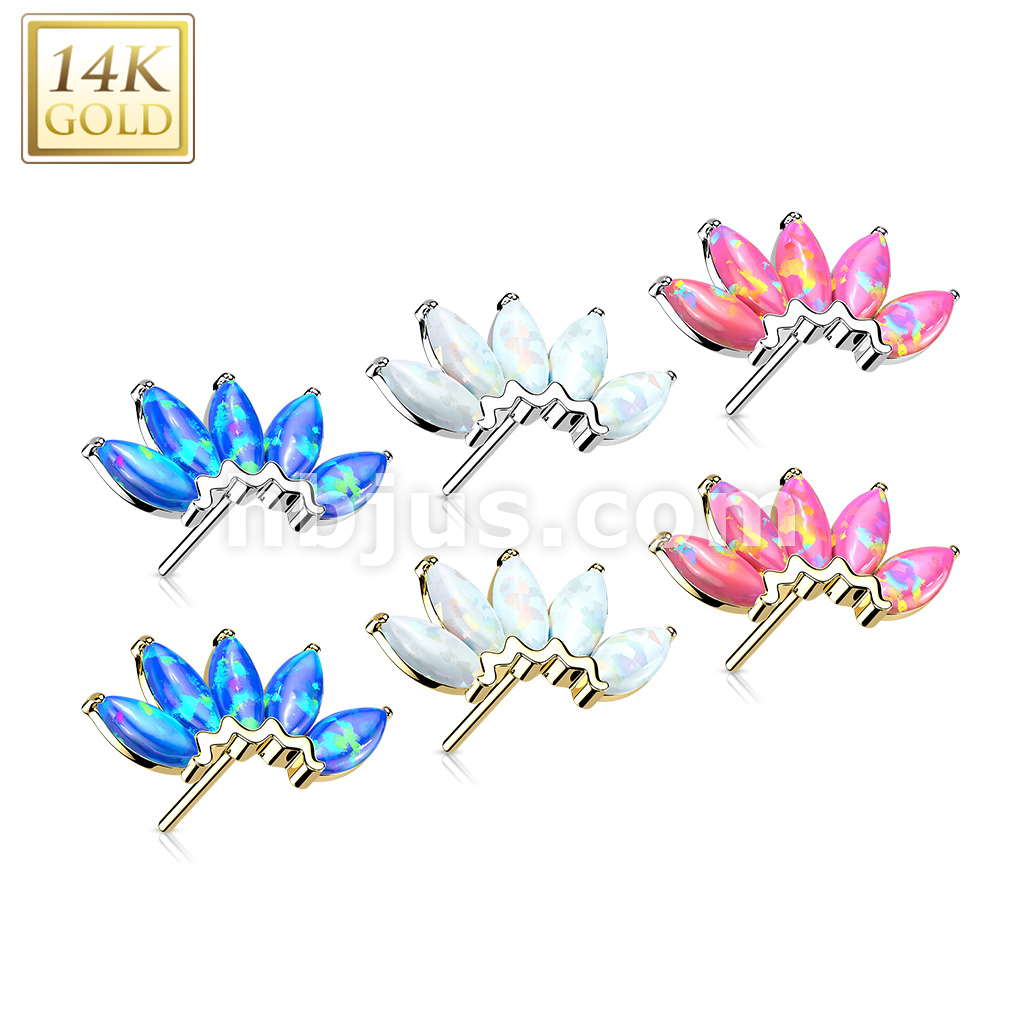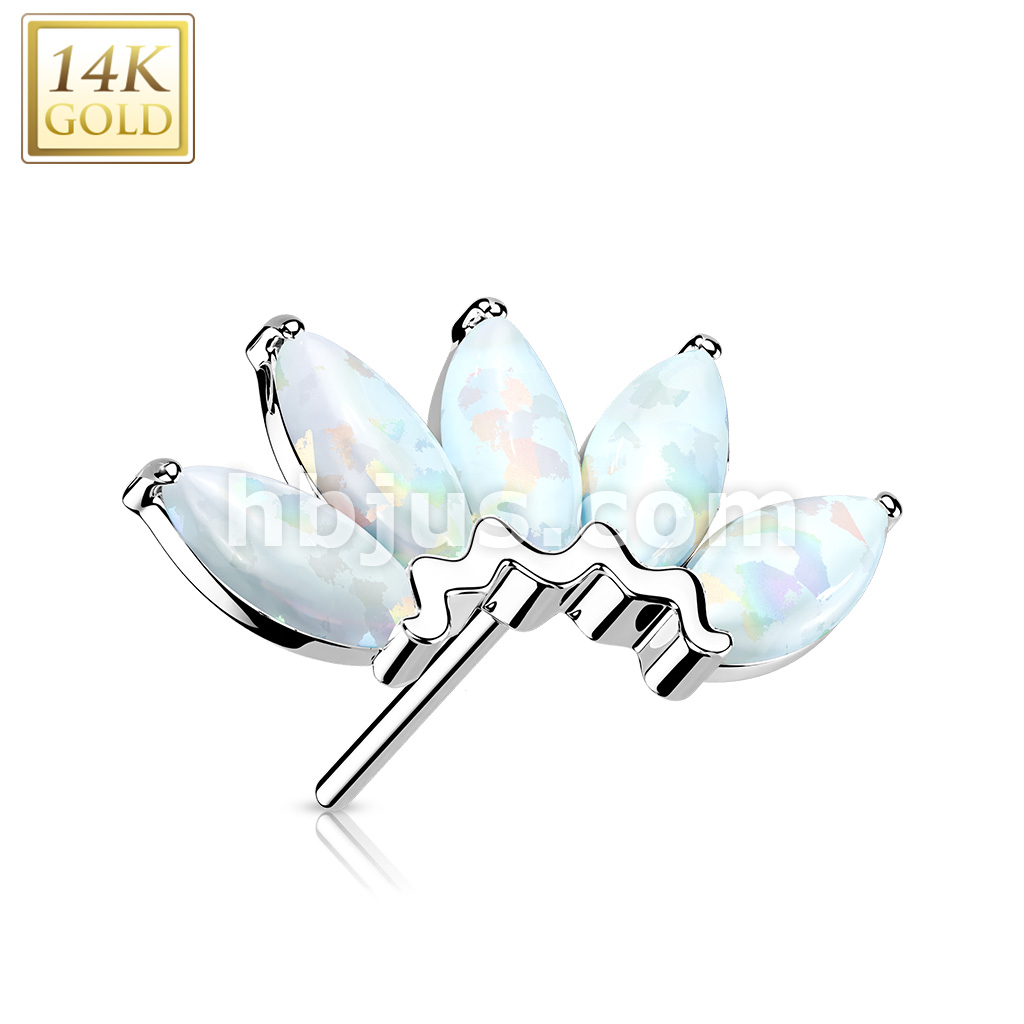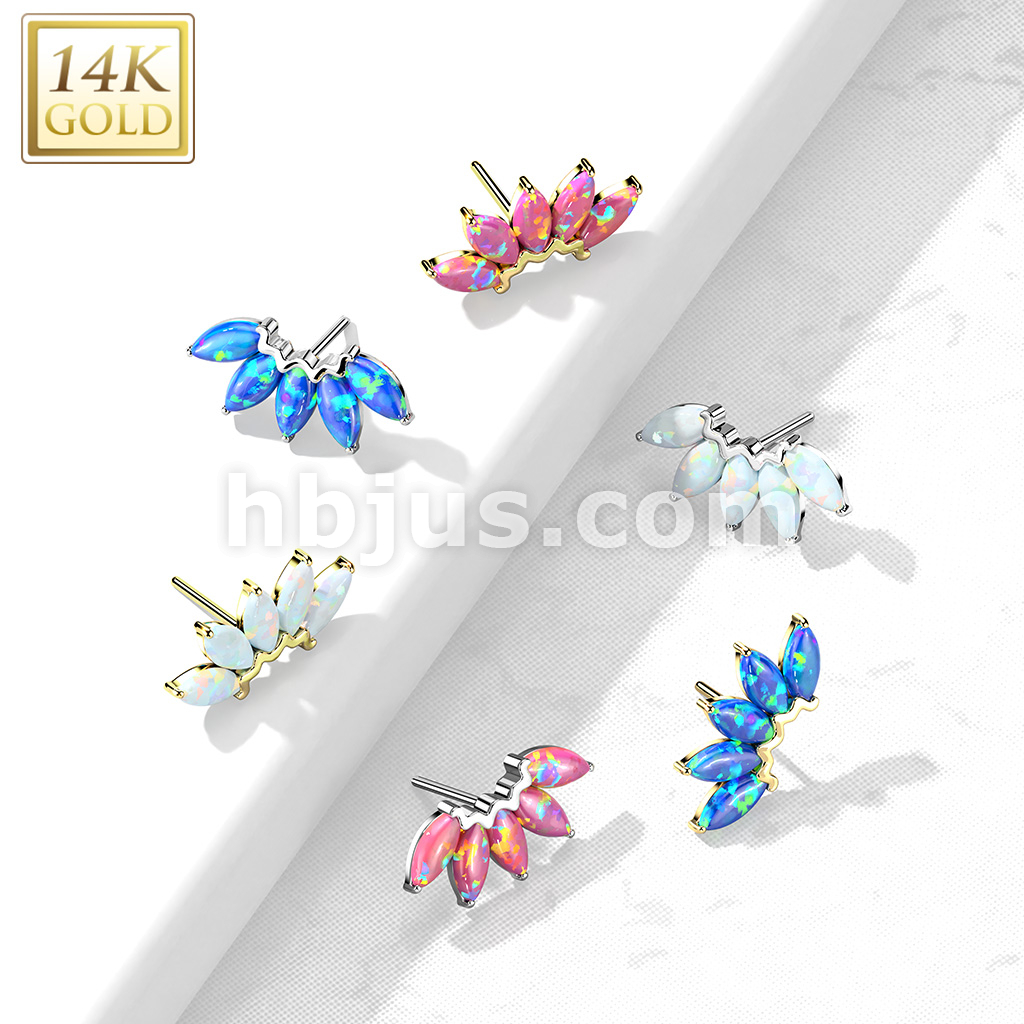 14K Gold Threadless Push In 5 Marquise Opal Fan Set Curved Top