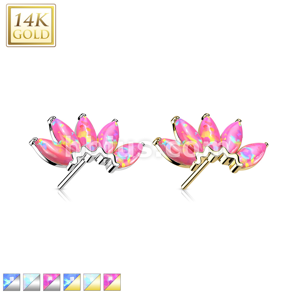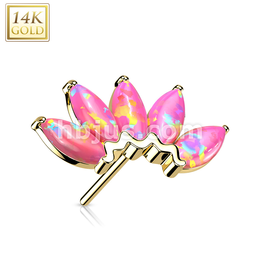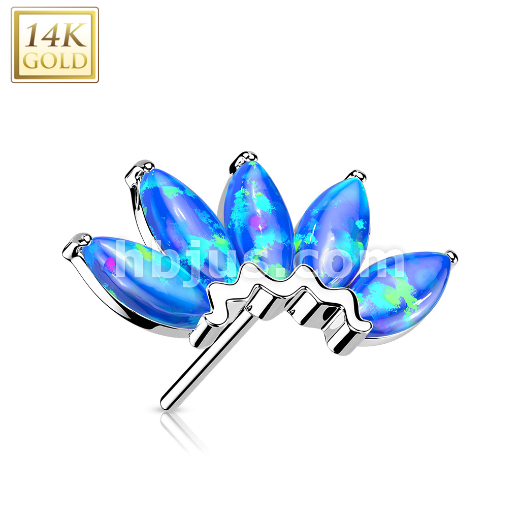 14K Gold Threadless Push In 5 Marquise Opal Fan Set Curved Top