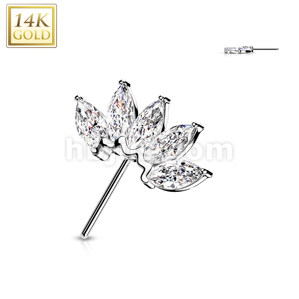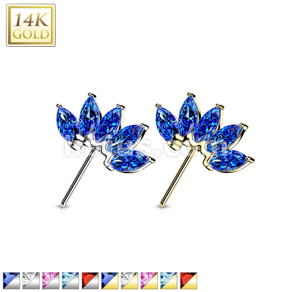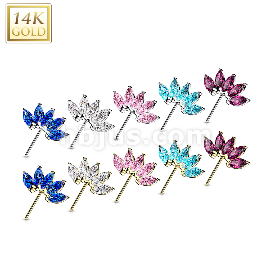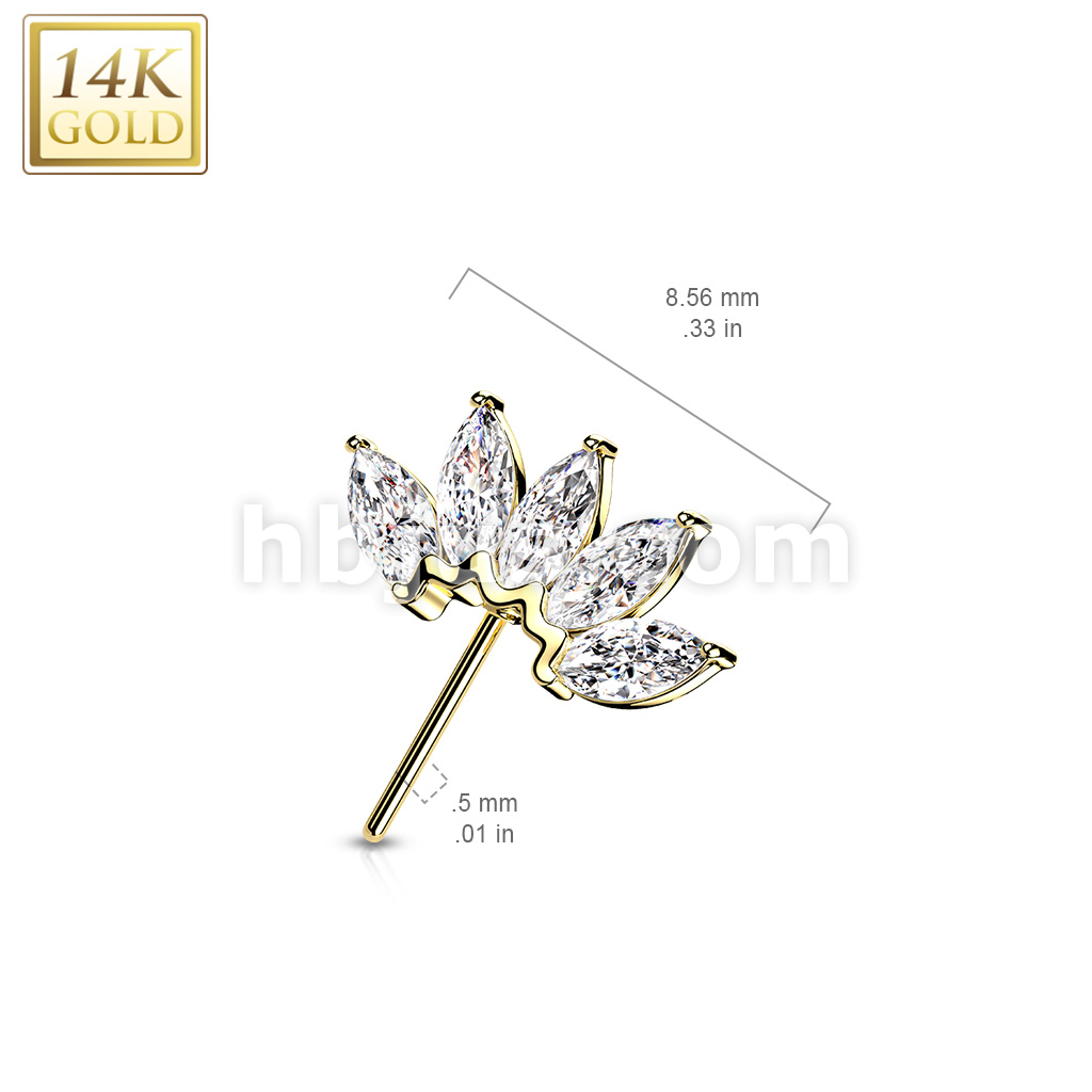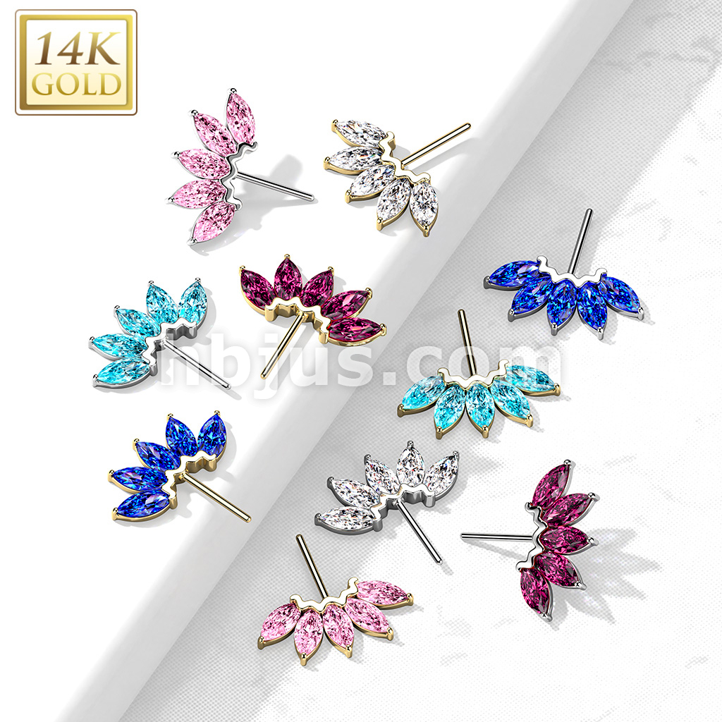14K Gold Threadless Push In Front Facing 5 Marquise CZ Fan Set Curved Tops