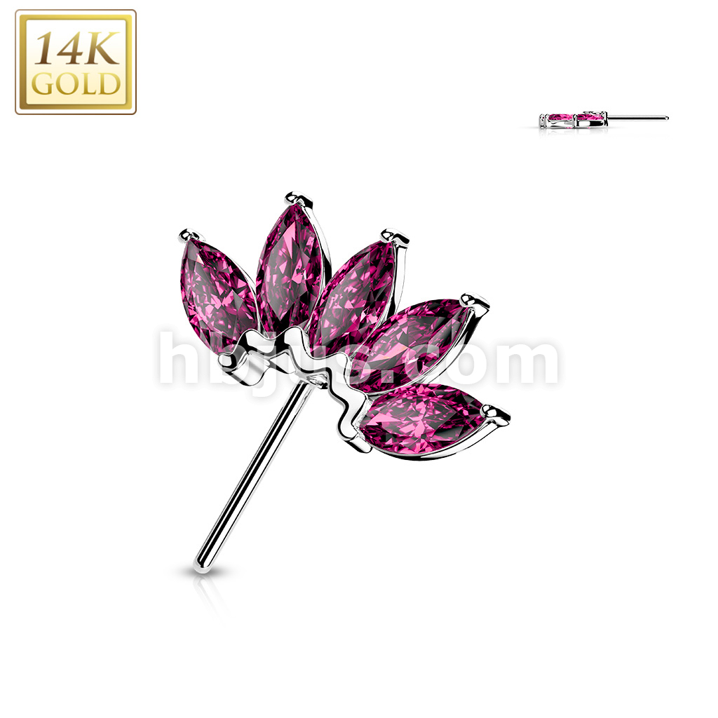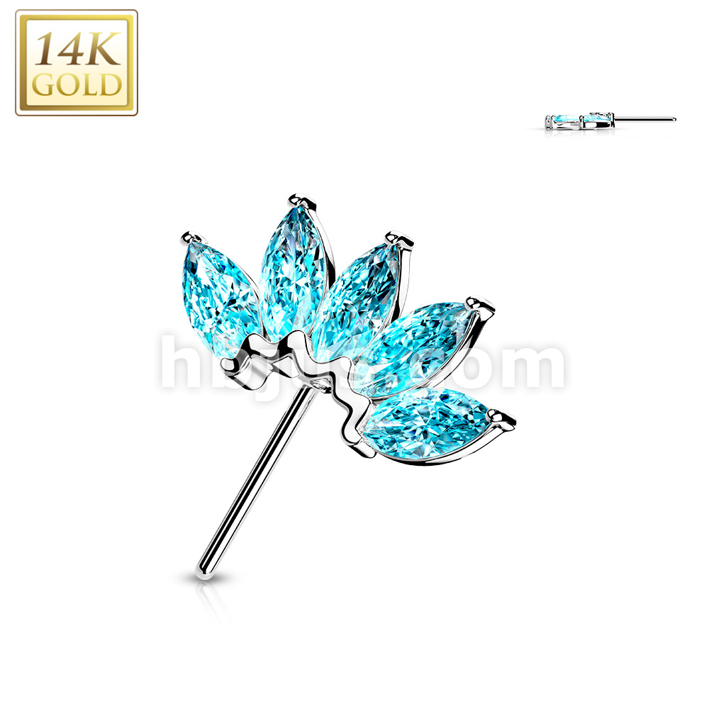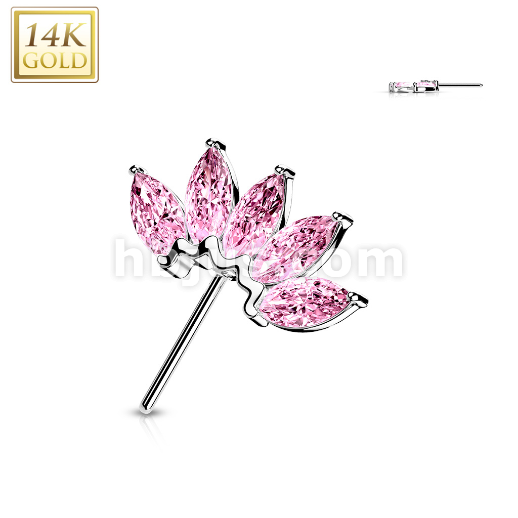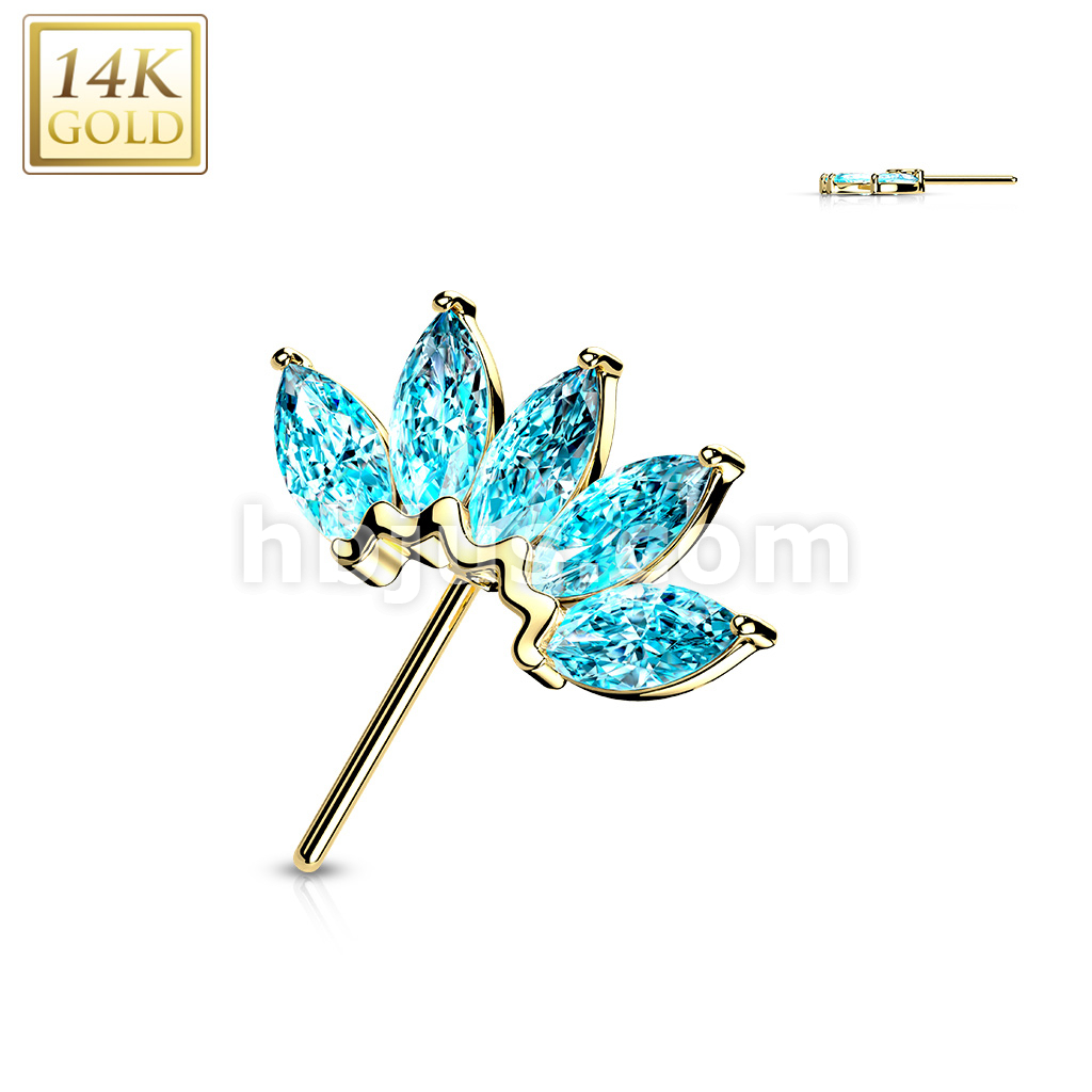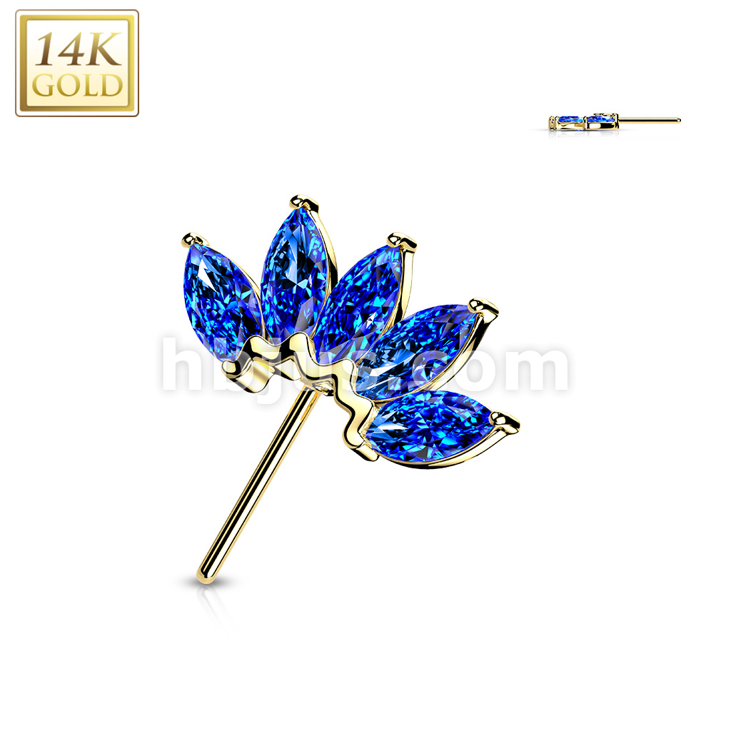 14K Gold Threadless Push In Front Facing 5 Marquise CZ Fan Set Curved Tops