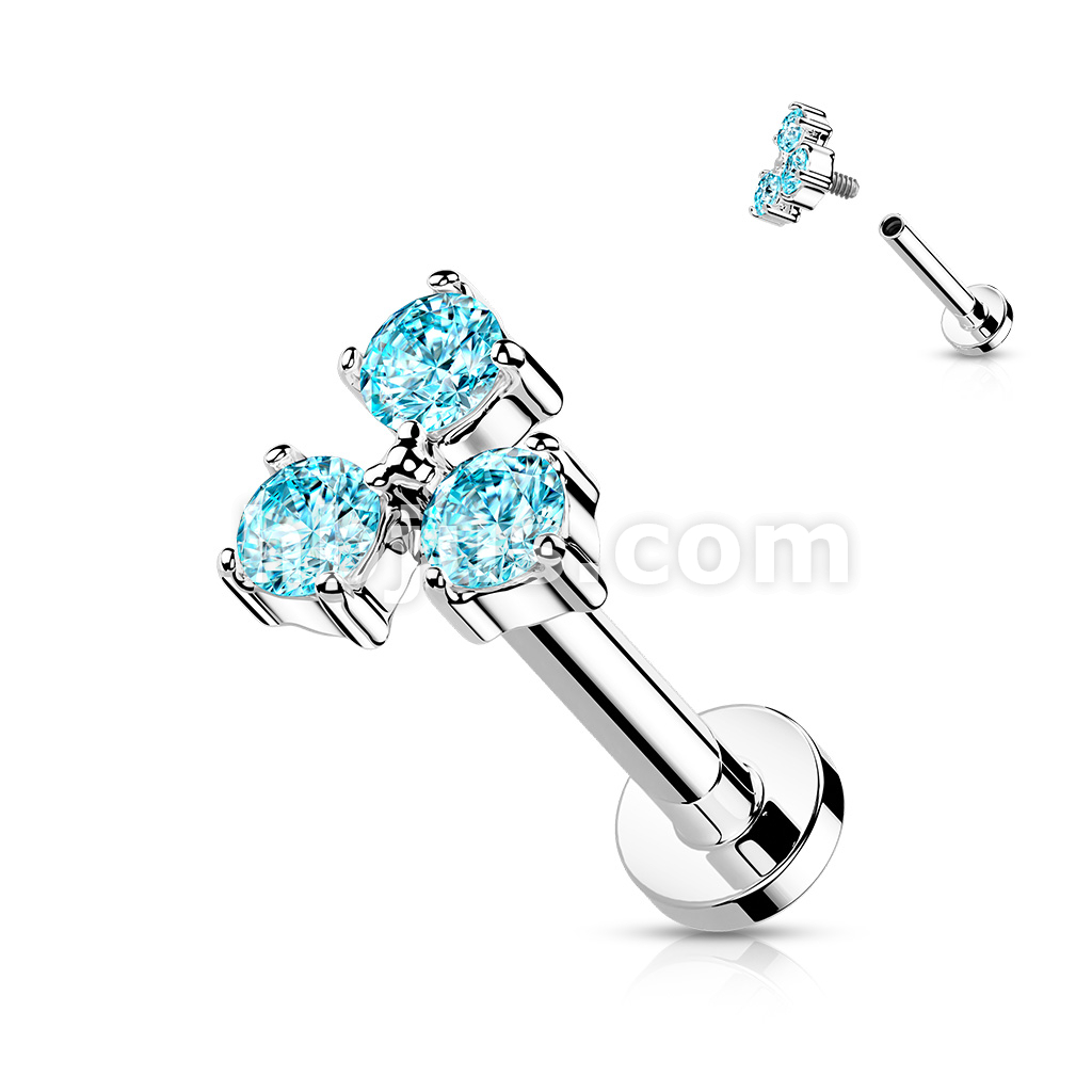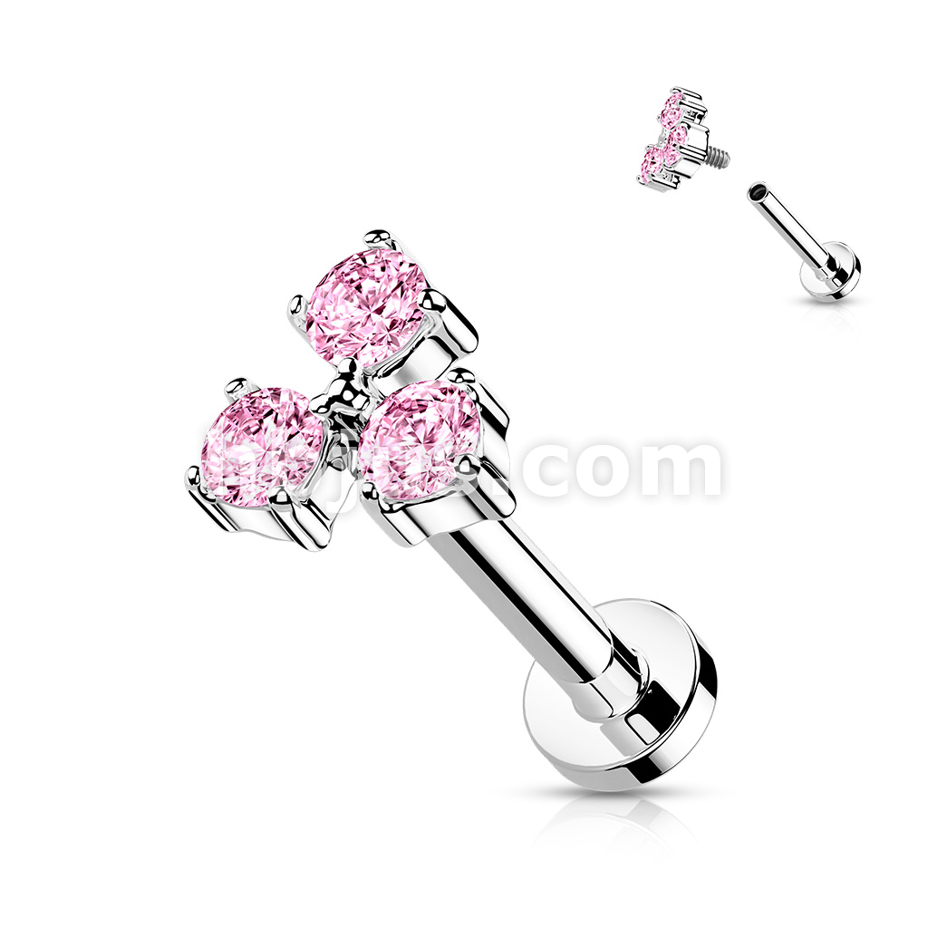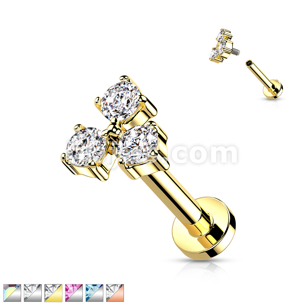 Triangle CZ Set Internally Threaded 316L Surgical Steel Flat Back Studs for Labret, Monroe, Cartilage and More