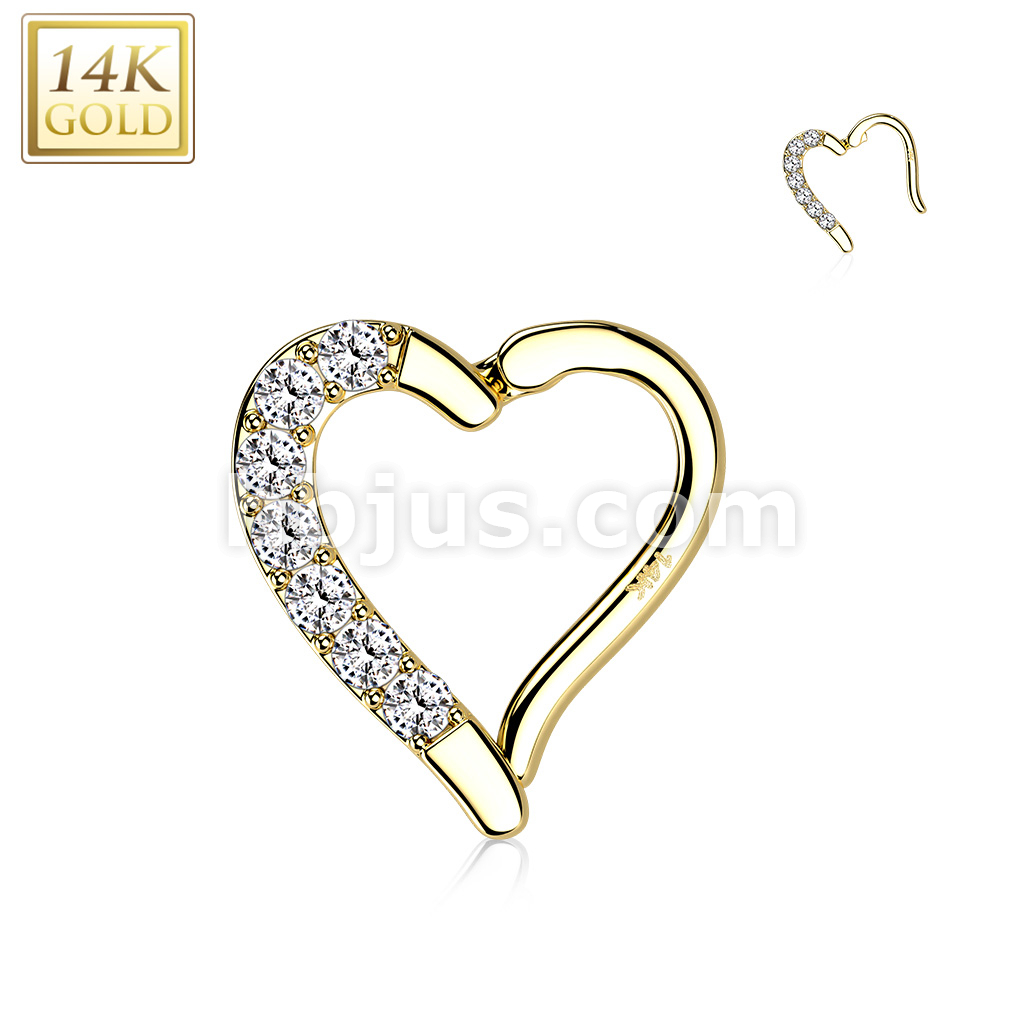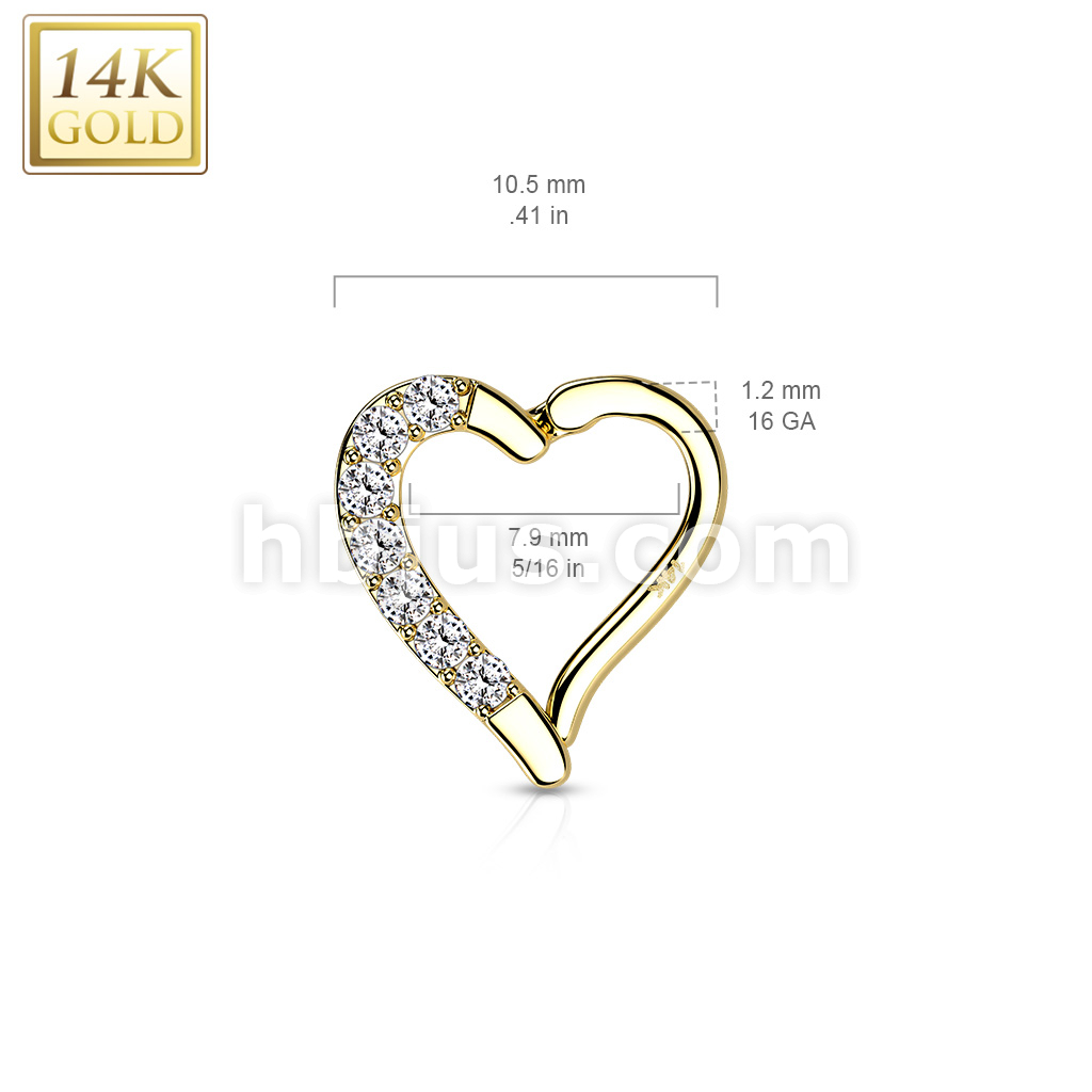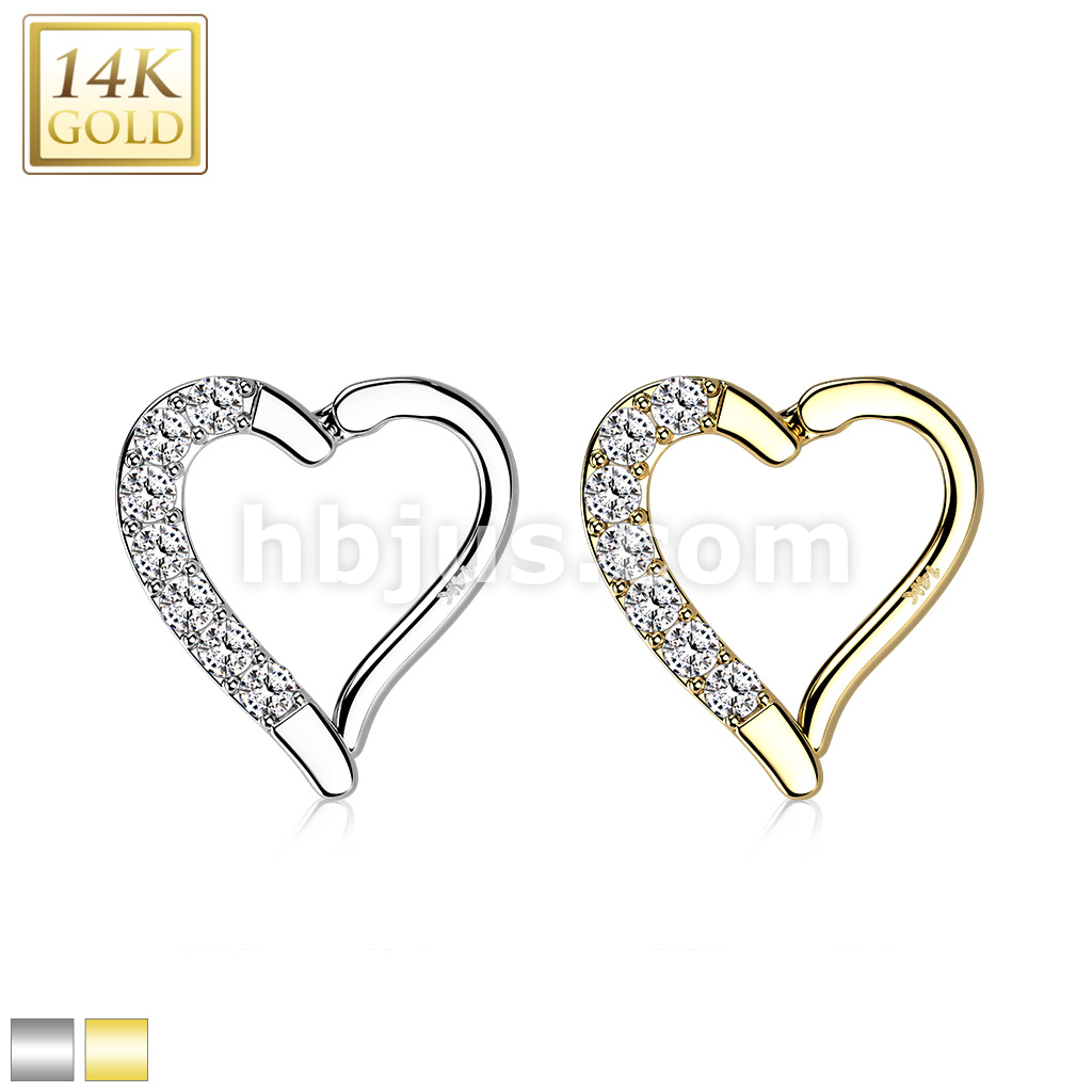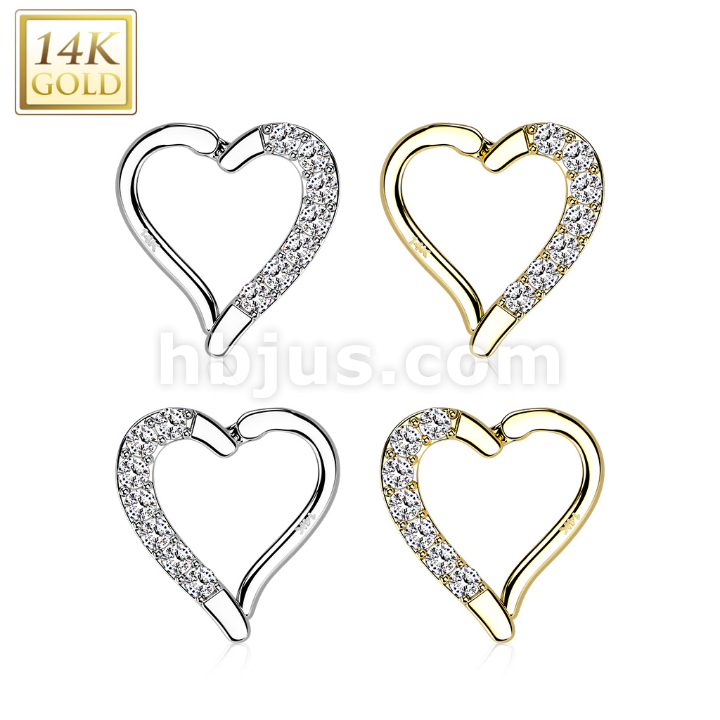 14K Gold CZ Paved Heart Hinge Hoops